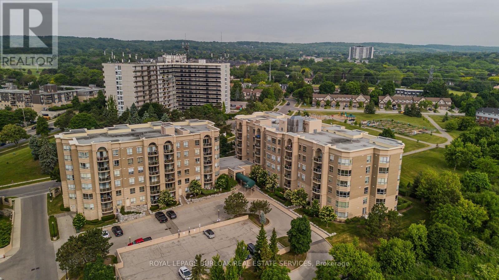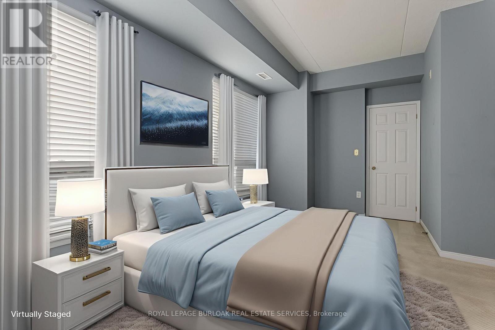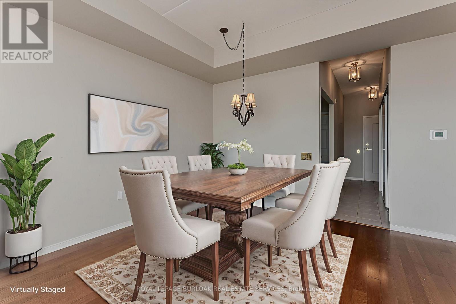 Experience the ease and comfort of low-maintenance living in this beautifully updated condo, perfectly tailored for those seeking a relaxed, community-oriented lifestyle without sacrificing modern conveniences. Nestled in Burlington's desirable Mountainside neighbourhood, this residence combines the tranquility of a mature, well-established community with proximity to everything you need - just minutes from picturesque parks, golf courses, shopping, dining, transit, and major highway access, making day-to-day life effortless. Step inside to discover a bright and inviting space filled with natural light and thoughtful details throughout. The open-concept living and dining areas flow seamlessly together, grounded by rich hardwood flooring and framed by large windows that create a warm, airy ambiance. The spacious living room extends to a private balcony - the perfect setting to enjoy your morning coffee, unwind with a book, or watch the sunset in peace. The kitchen features abundant cabinetry and counter space, offering both functionality and charm for those who love to cook or entertain. The expansive primary bedroom provides a peaceful retreat with a large 4-piece ensuite featuring a tiled bath/shower combination and an oversized vanity. Completing the home is convenient in-suite laundry, ample storage, and thoughtful design details throughout that make daily living effortless. Residents enjoy access to a wonderful range of amenities designed for connection and convenience - including a fitness room, party room with kitchenette, outdoor patio with gazebo, workshop, and car wash area. EV charging stations and an active social atmosphere add to the appeal of this sought-after building. Whether you're downsizing, simplifying, or simply seeking a vibrant and well-maintained community, this move-in-ready condo offers the perfect blend of comfort, style, and peace of mind. (id:64974)