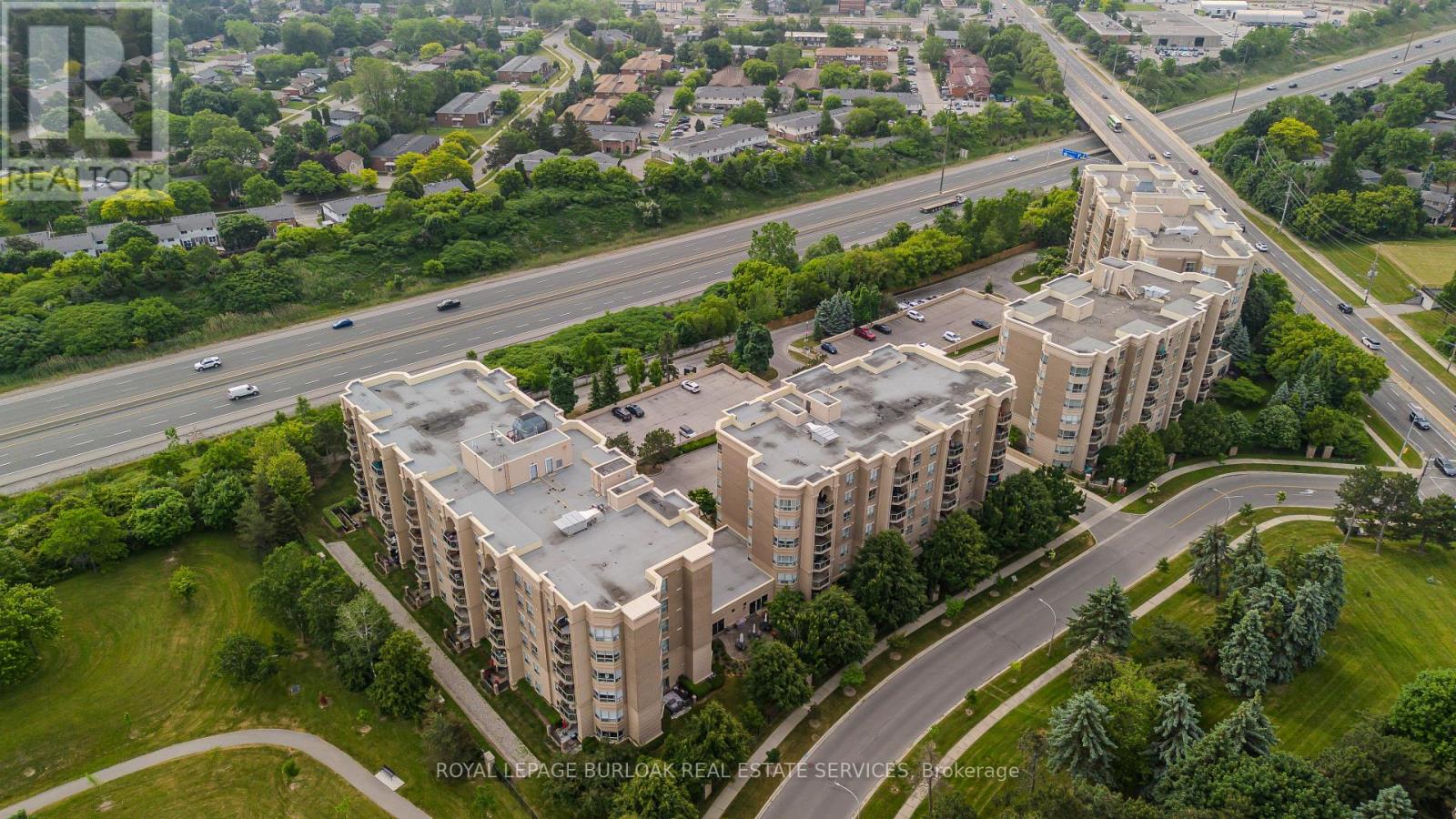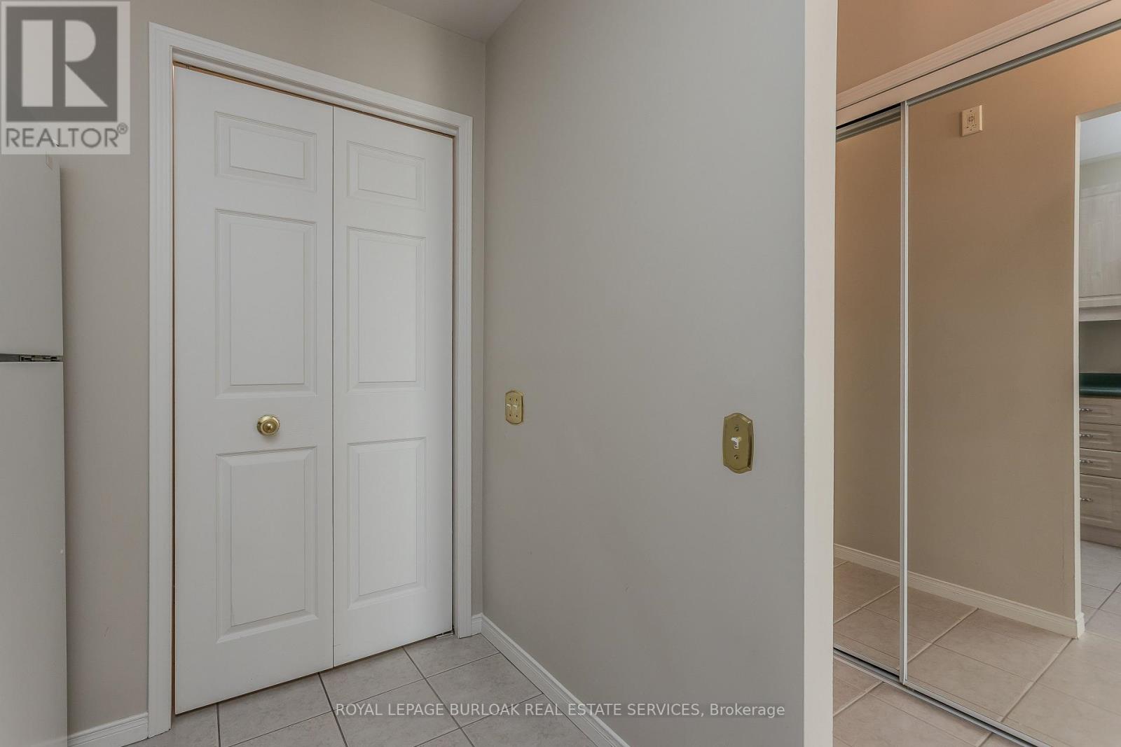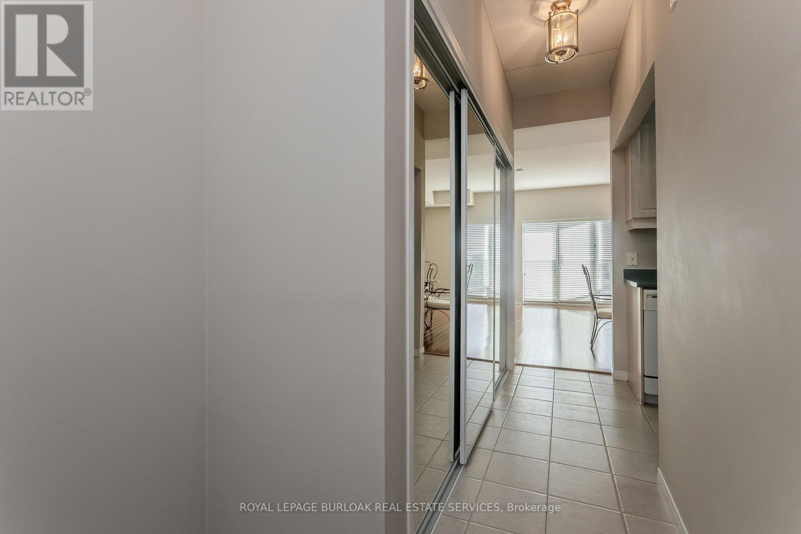 Experience the ease and comfort of low-maintenance living in this beautifully updated condo, perfectly tailored for those seeking a relaxed, community-oriented lifestyle without sacrificing modern conveniences. Nestled in Burlington's desirable Mountainside neighbourhood, this residence combines the tranquility of a mature, well-established community with proximity to everything you need - just minutes from picturesque parks, golf courses, shopping, dining, transit, and major highway access, making day-to-day life effortless. Step inside to discover a bright and inviting space filled with natural light and thoughtful details throughout. The open-concept living and dining areas flow seamlessly together, grounded by rich hardwood flooring and framed by large windows that create a warm, airy ambiance. The spacious living room extends to a private balcony - the perfect setting to enjoy your morning coffee, unwind with a book, or watch the sunset in peace. The kitchen features abundant cabinetry and counter space, offering both functionality and charm for those who love to cook or entertain. The expansive primary bedroom provides a peaceful retreat with a large 4-piece ensuite featuring a tiled bath/shower combination and an oversized vanity. Completing the home is convenient in-suite laundry, ample storage, and thoughtful design details throughout that make daily living effortless. Residents enjoy access to a wonderful range of amenities designed for connection and convenience - including a fitness room, party room with kitchenette, outdoor patio with gazebo, workshop, and car wash area. EV charging stations and an active social atmosphere add to the appeal of this sought-after building. Whether you're downsizing, simplifying, or simply seeking a vibrant and well-maintained community, this move-in-ready condo offers the perfect blend of comfort, style, and peace of mind. (id:64974)