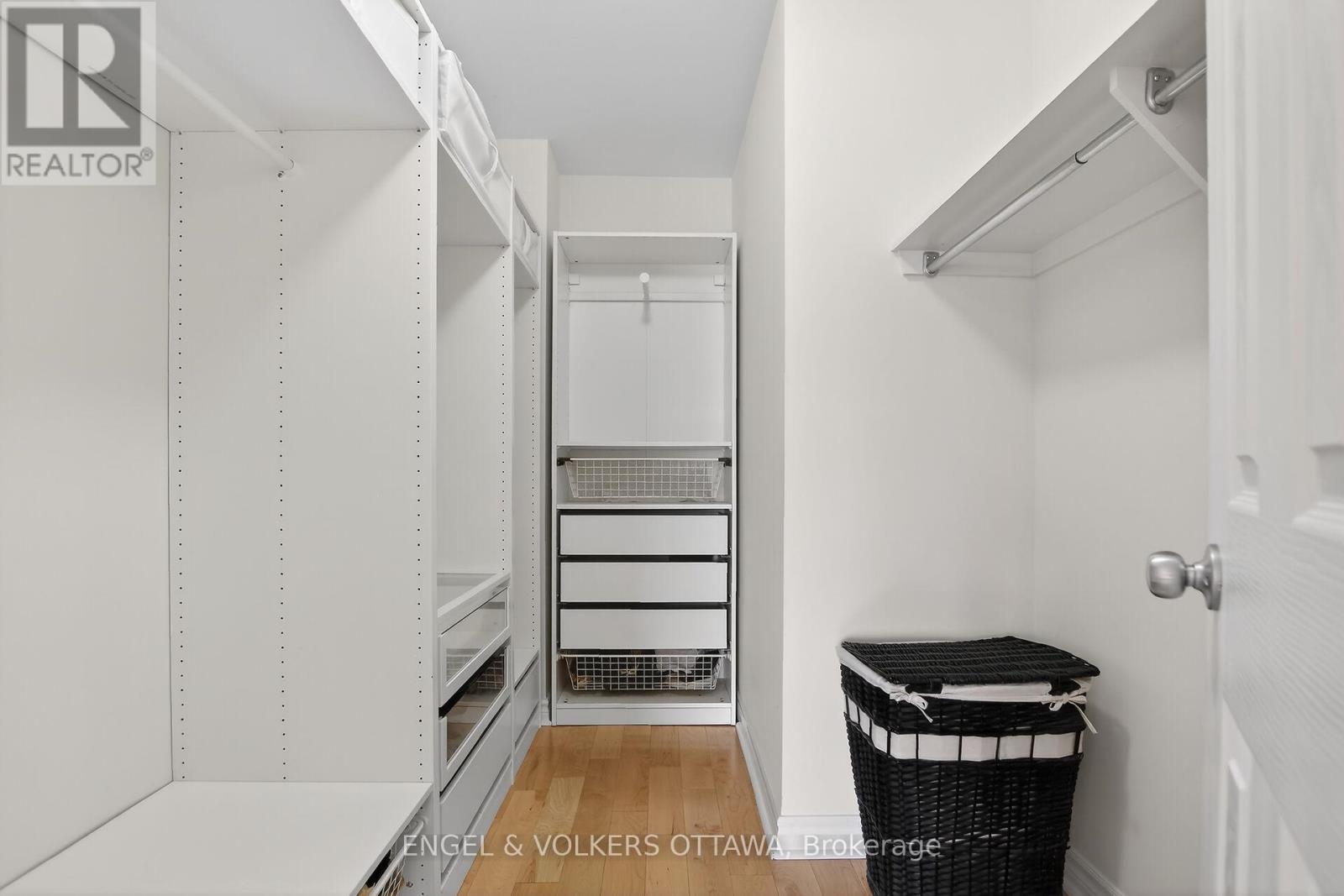 Luxury condo living in a great location, just steps from shopping, restaurants, transit, a movie theatre and more. At almost 1800 square feet, this bright and spacious corner unit penthouse in Barrhaven overlooks a park and features a huge open-concept living/dining/kitchen. A rare find, always in demand and available for resale for the very first time. The size and privacy of this unit offers the feeling of a single family dwelling with a large terrace, providing abundant outdoor space facing the park. A hallway separates the bedrooms from the main living space. The primary bedroom with walk-in closet and five piece ensuite provides a tranquil retreat. A bight second bedroom features abundant storage and a windowed third room could serve as a guest room, den or home office. Laundry in-suite and a a second full bathroom. Hardwood floors and motorized blinds throughout. New washer and dryer, gas fireplace in Living Room and ground-floor garage with locker. Elevator-accessible building. Whether you're an empty nester not willing to compromise on space, or a professional interested in hassle-free living, this unique condo offers the comforts of home with the lifestyle you're looking for. Measurements approximate. (id:64974)