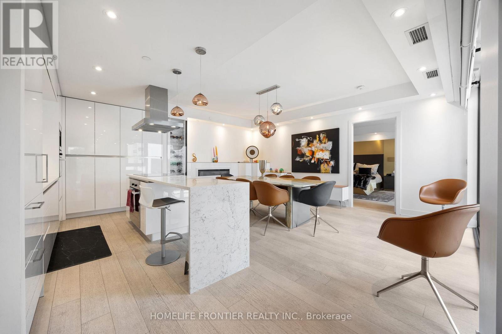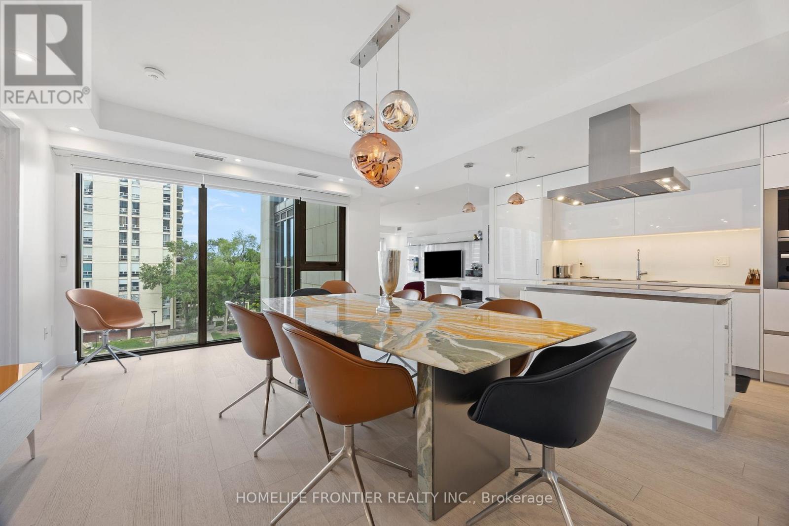Experience refined luxury in this exceptional two-bedroom, three-bathroom residence in one of Midtown's most prestigious buildings. Thoughtfully designed for both elegance and comfort, this rare layout includes soaring 9-foot ceilings and a spacious family room in addition to open living and dining areas-ideal for entertaining or everyday living. The primary suite offers the feel of a private retreat, complete with two custom walk-in closets and a spa-inspired ensuite featuring upgraded tile and vanities, heated floors, dual sinks, a large walk-in shower, a soaker tub, and a private water closet. The split-bedroom plan ensures privacy, with the second bedroom featuring its own ensuite. A discreet powder room with designer hand-painted walls and elegant ceiling lighting adds a sophisticated touch. Throughout the suite, upgraded wide-plank hardwood floors, recessed pot lighting, and remote-control curtains create a seamless and elevated ambiance. The kitchen is fully customized with upgraded cabinetry, designer lighting over the island and dining area, and top-of-the-line Miele appliances, including a built-in coffee machine and microwave. The family room is enhanced with a bespoke TV wall unit, while a mirrored entrance wall provides a dramatic, welcoming impression. Two private balconies extend the living space outdoors. The residence also includes valet parking and professional valet services, adding everyday ease and convenience. Residents enjoy a full-service concierge and world-class amenities, including a state-of-the-art fitness centre, stylish party room, and a beautifully landscaped rooftop terrace. Located just steps from the shops, dining, and conveniences of Yonge & St. Clair, this home offers the ultimate in urban luxury living. (id:64974)
