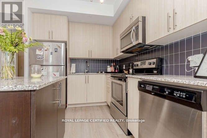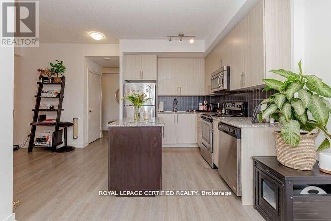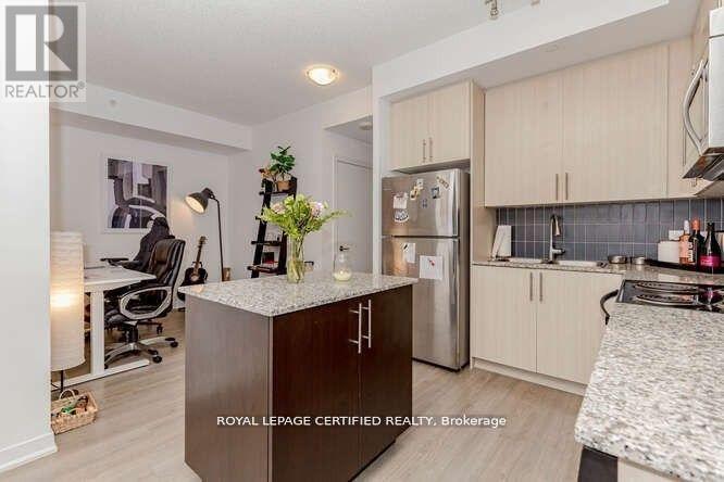 Discover the epitome of urban living with this spacious open concept 1-bedroom plus den condo in the vibrant heart of downtown Kitchener with the LRT at your Door Step. The carpet free condo offers a spacious layout, providing ample room for living, working, and entertaining, while providing lots of natural light throughout. The modern kitchen is equipped with a spacious island and stainless steel appliances, ensuring both style and functionality. The spacious primary bedroom, with a good size closet offers lots of natural light with floor to ceiling windows. Step outside onto your large balcony directly from the living room, offering a perfect retreat to relax and enjoy city views. Convenience at its best with in-suite Laundry. Furthermore, residents can enjoy access to amenities available in the nearby building at 55 Duke St W. Comes With 1 Parking & Locker. Lots of natural light and unobstructed views. This City Center Condo is In A Great Building - Prime Location Within Proximity To Restaurants, Shops, Markets, Parks, Schools, City Hall & Transit. 24 Hr Concierge And Amenities Include Party Room With Kitchen, Media Room, Rooftop Terrace With Bbq (id:64974)