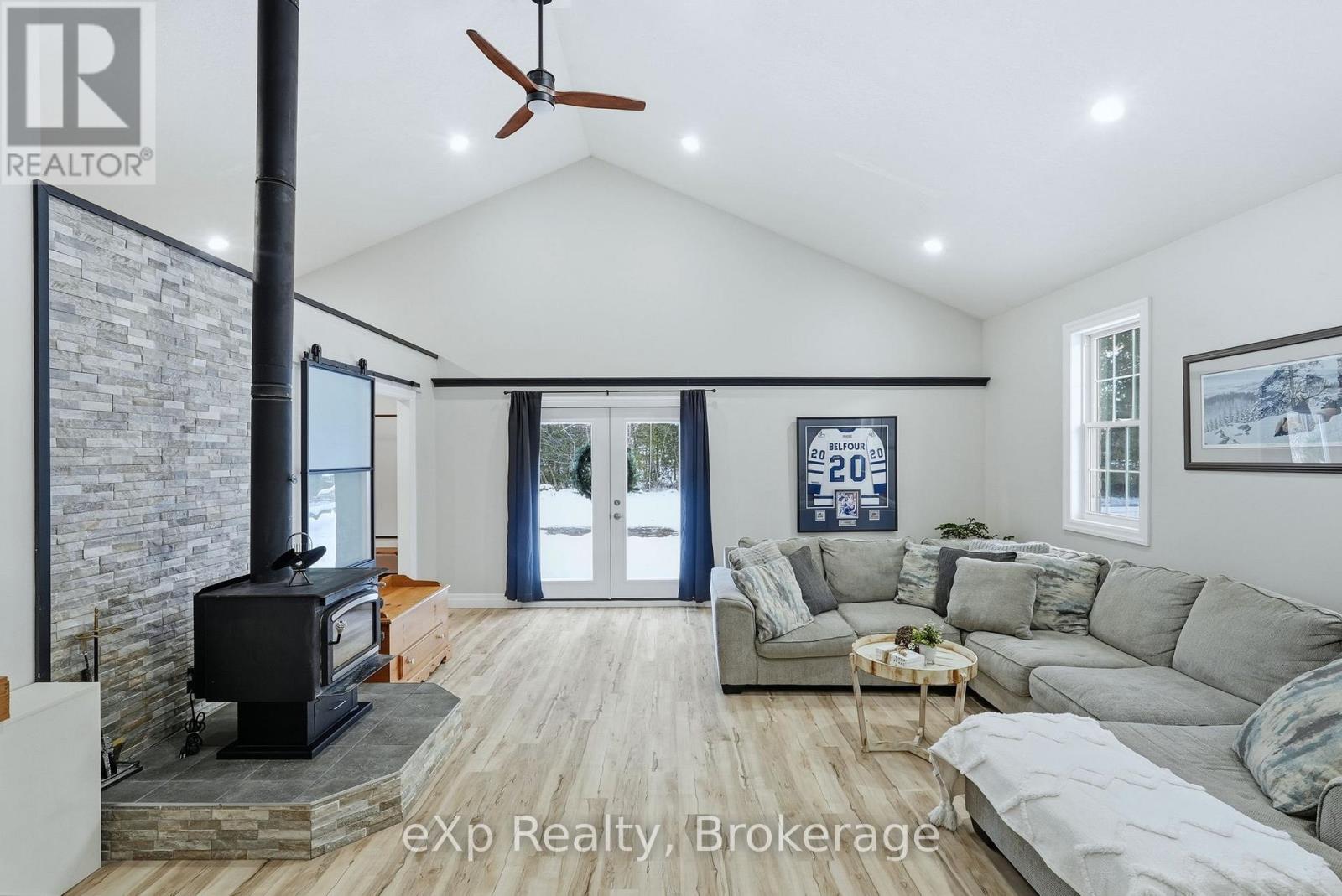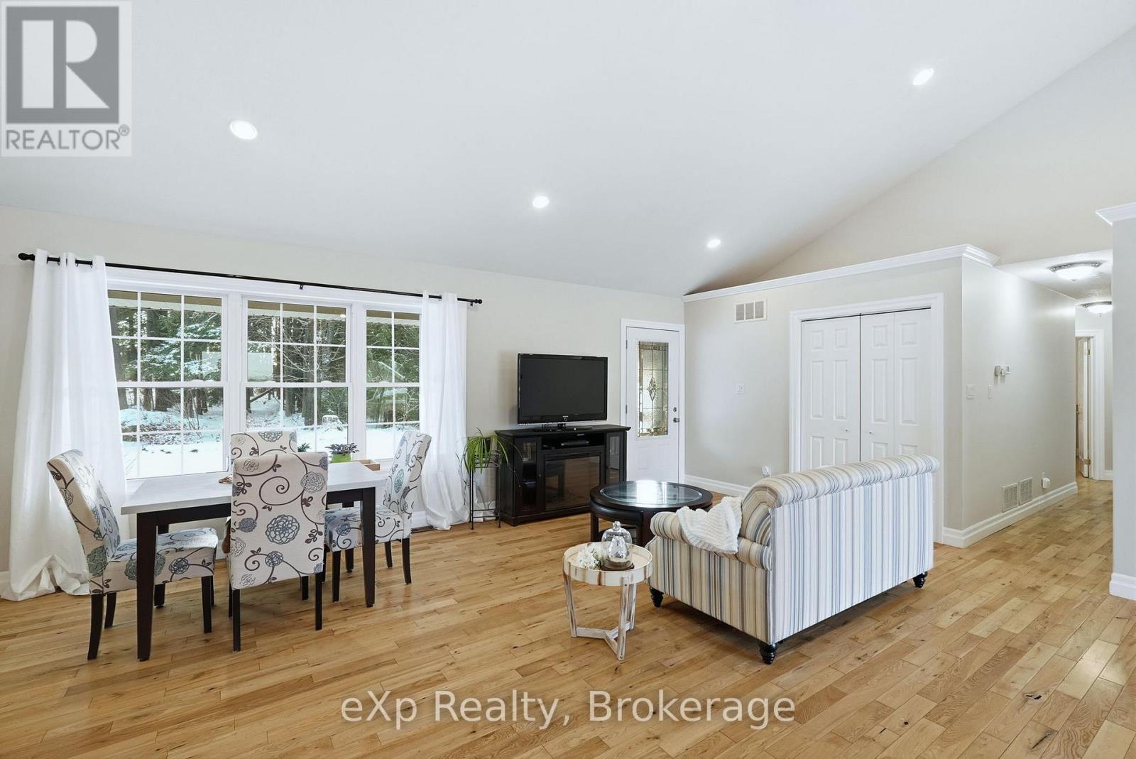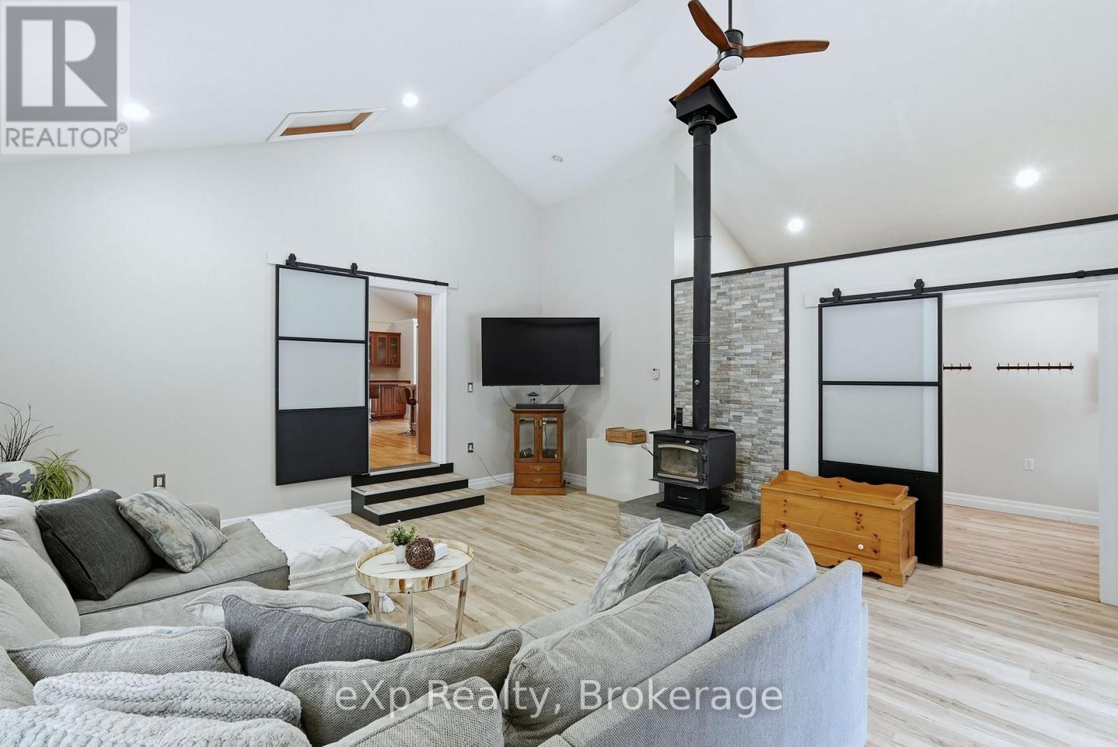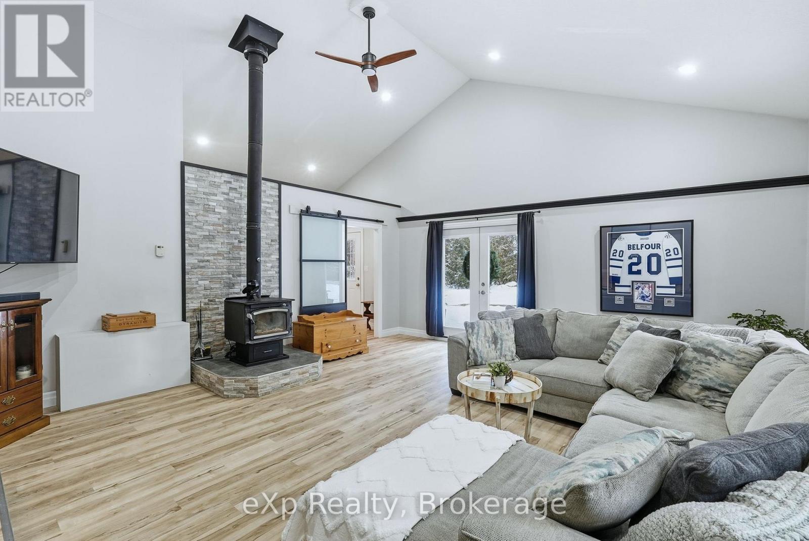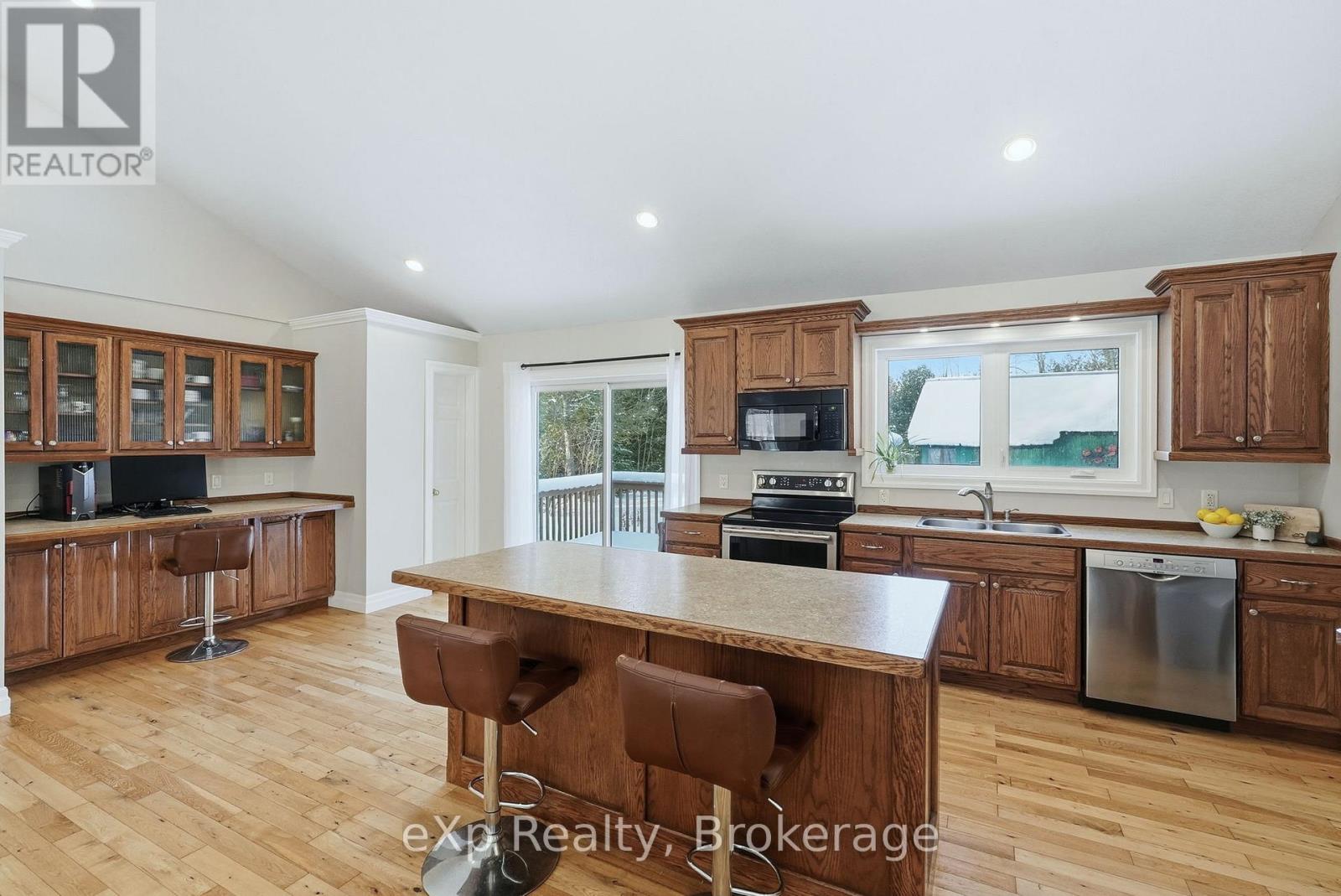 Charming 3-Bedroom, 2-Bathroom Bungalow on 1.5 Acres - Just 5 Minutes from Wiarton, this beautifully maintained bungalow offers the perfect blend of privacy, comfort, and modern upgrades. Nestled on 1.5 acres, this home provides peaceful country living while still being only minutes from all the amenities of Wiarton. Inside, you'll find a bright, open-concept layout with large windows that fill the home with natural light. The spacious family room-renovated in 2021-features in-floor heating, creating a warm and inviting space for gatherings. The main-floor living design adds convenience, while the generous mudroom provides ample space for coats, boots, and everyday storage. A new heat pump system ensures efficient year-round comfort. Outside, the property continues to impress. The oversized backyard is ideal for campfires, entertaining, and enjoying the outdoors. A large 40' x 30' detached garage offers exceptional storage or workshop potential. The 16' x 16' bunkie provides extra space and flexibility-perfect for a home office, yoga studio, or guest accommodation. If you're seeking privacy, modern comforts, and a move-in-ready home close to town, this property is a must-see. (id:64974)