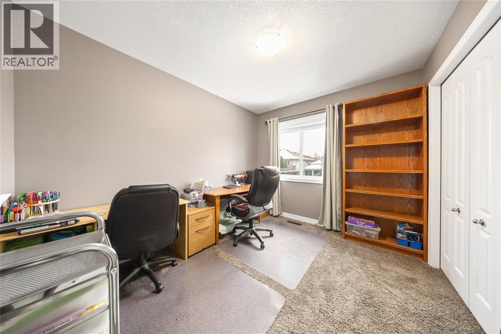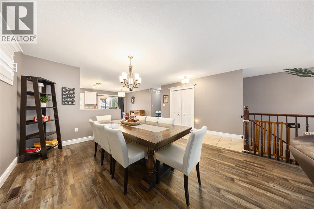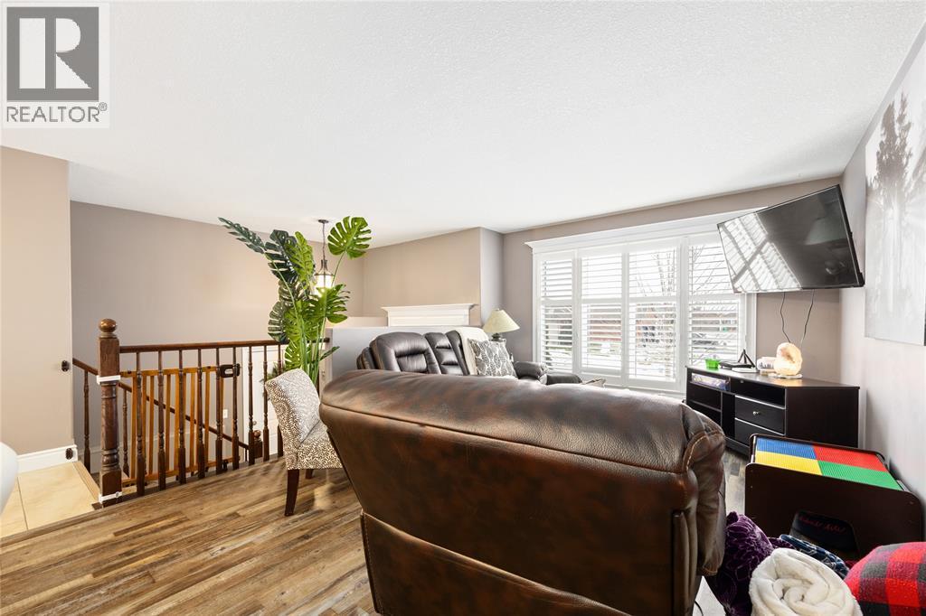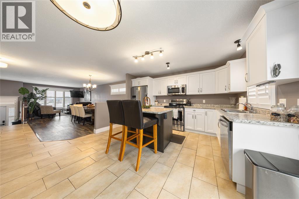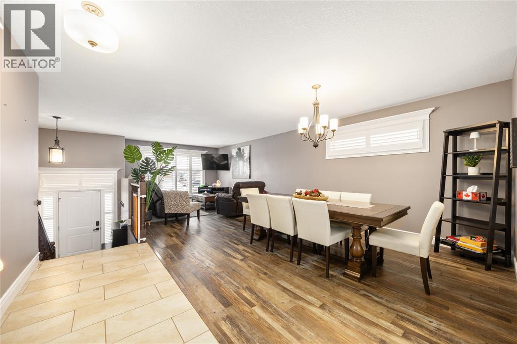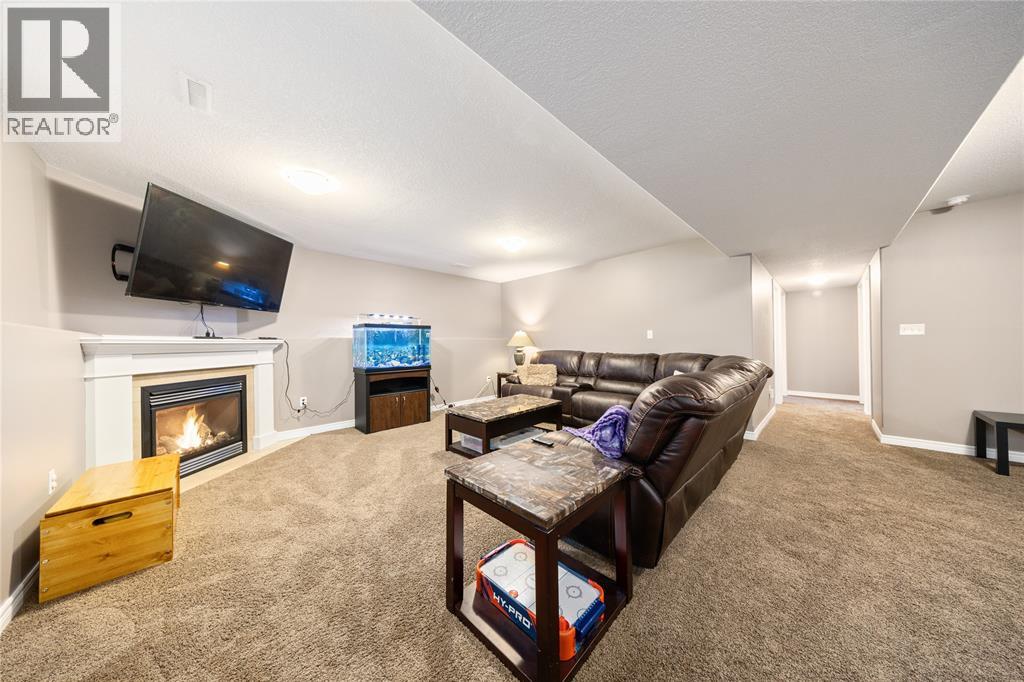 Designed with quality in mind, this 5-bedroom, 2-bath home blends comfort and style with a bright, open layout. Hardwood floors flow through spacious living and dining rooms into a well-equipped kitchen with centre island. Tile floors, elegant trim, and modern lighting add polish. The oversized rec room with cozy gas fireplace is perfect for entertaining, plus a quiet office, 2 lower bedrooms, full 3pc bath, and large laundry. Ideal for families, guests, or work-from-home living. (id:64974)