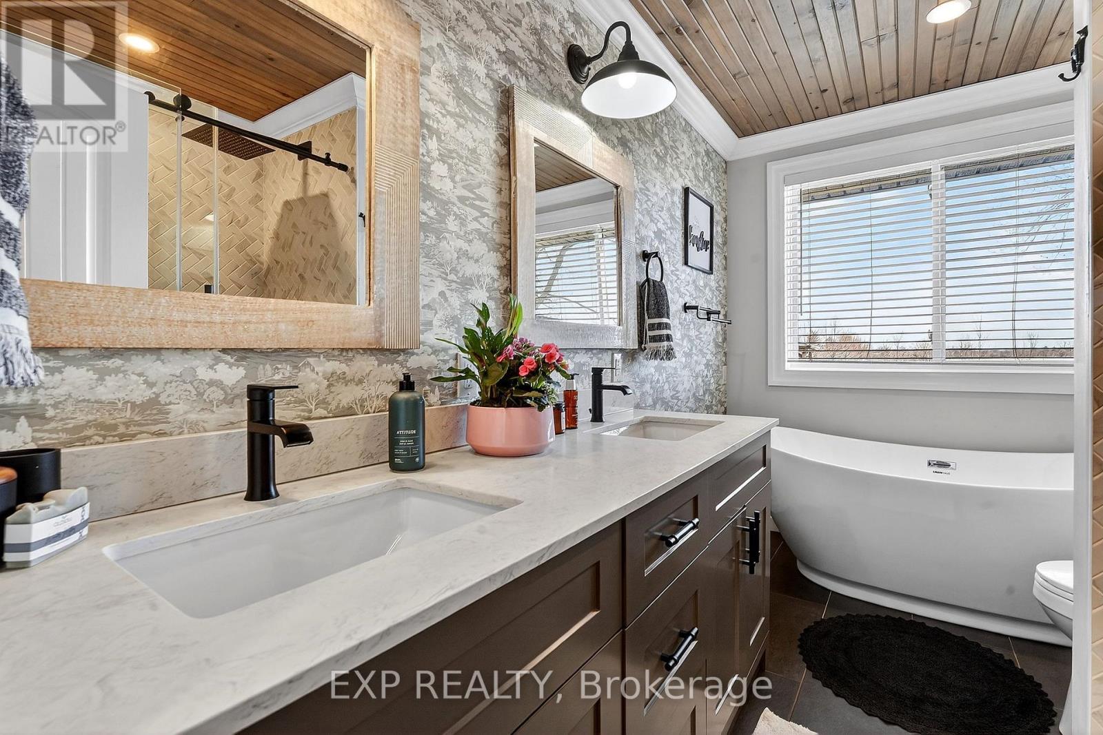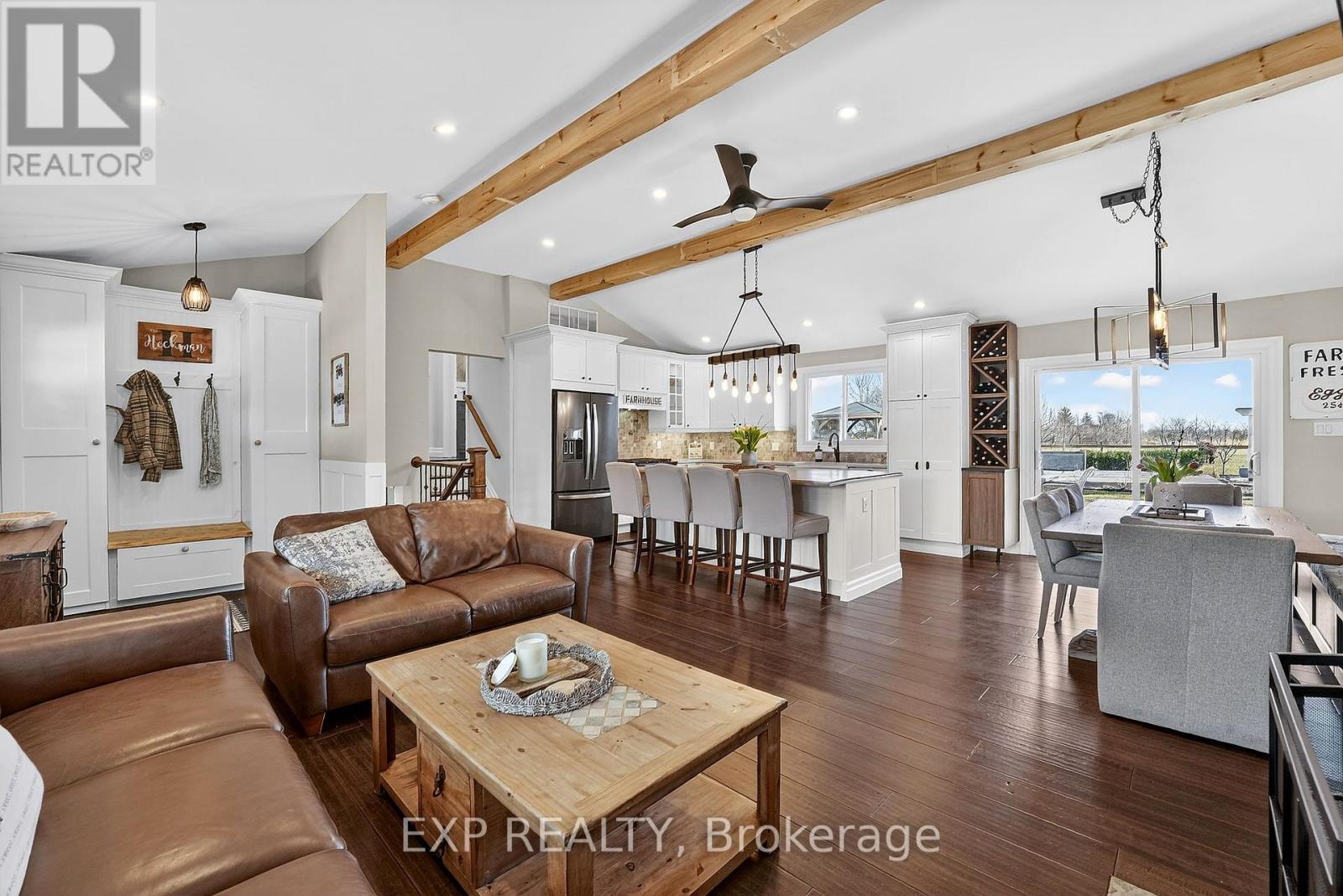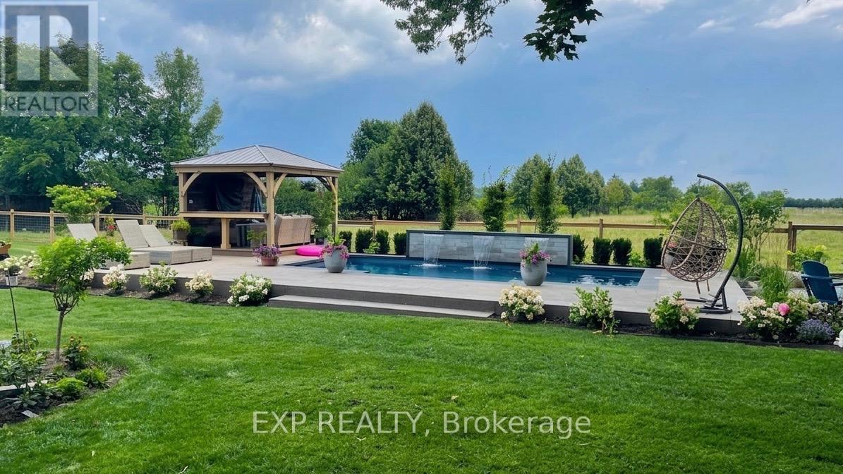 Extensively Renovated Wine Country Home with Resort Style Backyard. Set on a rare 0.378 acre rural property in the heart of Jordan Station wine country, this extensively reimagined home offers modern design, turnkey living, and exceptional outdoor entertaining. Over $600,000 has been invested in a complete top to bottom transformation, professionally redesigned by the renowned local architectural design firm Jordan Station Design Co. The main floor was fully rebuilt to create a bright open concept layout with vaulted 13 foot ceilings and a stunning custom kitchen featuring quartz countertops, high end appliances, and an oversized island with butcher block countertop. A new mudroom addition with heated floors and powder room adds everyday functionality. Nearly every major system has been upgraded including new plumbing, spray foam insulation, forced air HVAC with air conditioning, updated electrical with new panels, and a replacement septic system. A striking Isokern wood burning fireplace anchors the living space while refined millwork and decorative beams add warmth and character. The professionally landscaped backyard, designed by a landscape architect, creates a private resort style setting with a heated saltwater pool with waterfall, hot tub, cedar gazebo, firepit area, and multiple composite decks. With a fully updated exterior completed in 2024 including new siding, roof, and insulation, this turnkey property offers the charm of a mature rural setting with the peace of mind of a fully modernized home. (id:64974)