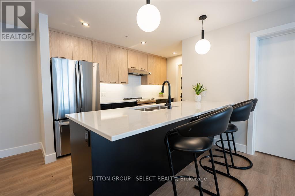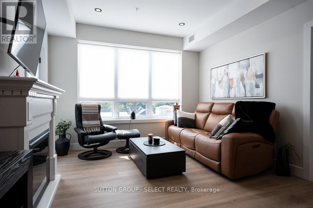 At James Street Commons, luxury feels effortless and comfort feels like home.Ideally located just a short stroll from the energy of Main Street in Exeter, this thoughtfully designed, barrier-free 2 bedroom suite places you within easy walking distance of local restaurants, shops, schools, and the hospital, while still offering the quiet comfort of a residential setting. The suite offers a sense of understated sophistication: warm finishes and natural light create an atmosphere that feels calm, polished, and welcoming. The kitchen is crafted with contrasting cabinetry, sleek quartz surfaces, stainless steel appliances, and a generous island that comfortably seats four people and invites conversation, casual meals, and connection. An in-suite laundry room provides convenience and additional storage, and the bathroom features a walk-in shower. The primary bedroom is spacious, complete with a walk-in closet, and a versatile second bedroom/home office provide flexibility for guests, work from home needs, or additional living space. Outdoors, your 90 square foot private patio is perfect for quiet mornings or unwinding at the end of the day. With secure, controlled entry and an easy 35-minute drive to both London and Stratford, this suite appeals to those who appreciate quality, comfort, and a more relaxed pace of living. James Street Commons is modern, comfortable, and distinctly yours. PROMO: One month free rent if the lease commences by May 1, 2026. (id:64974)