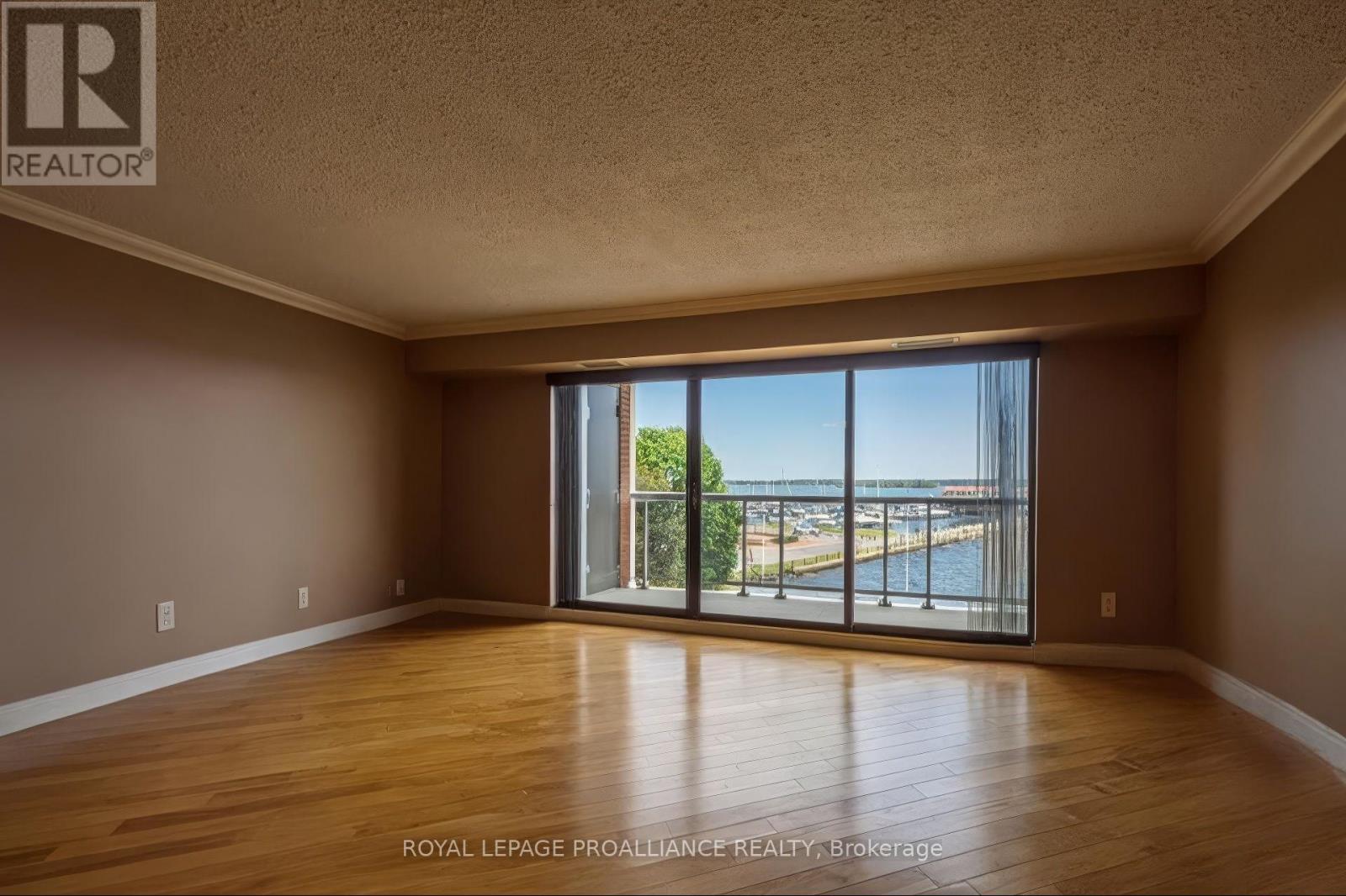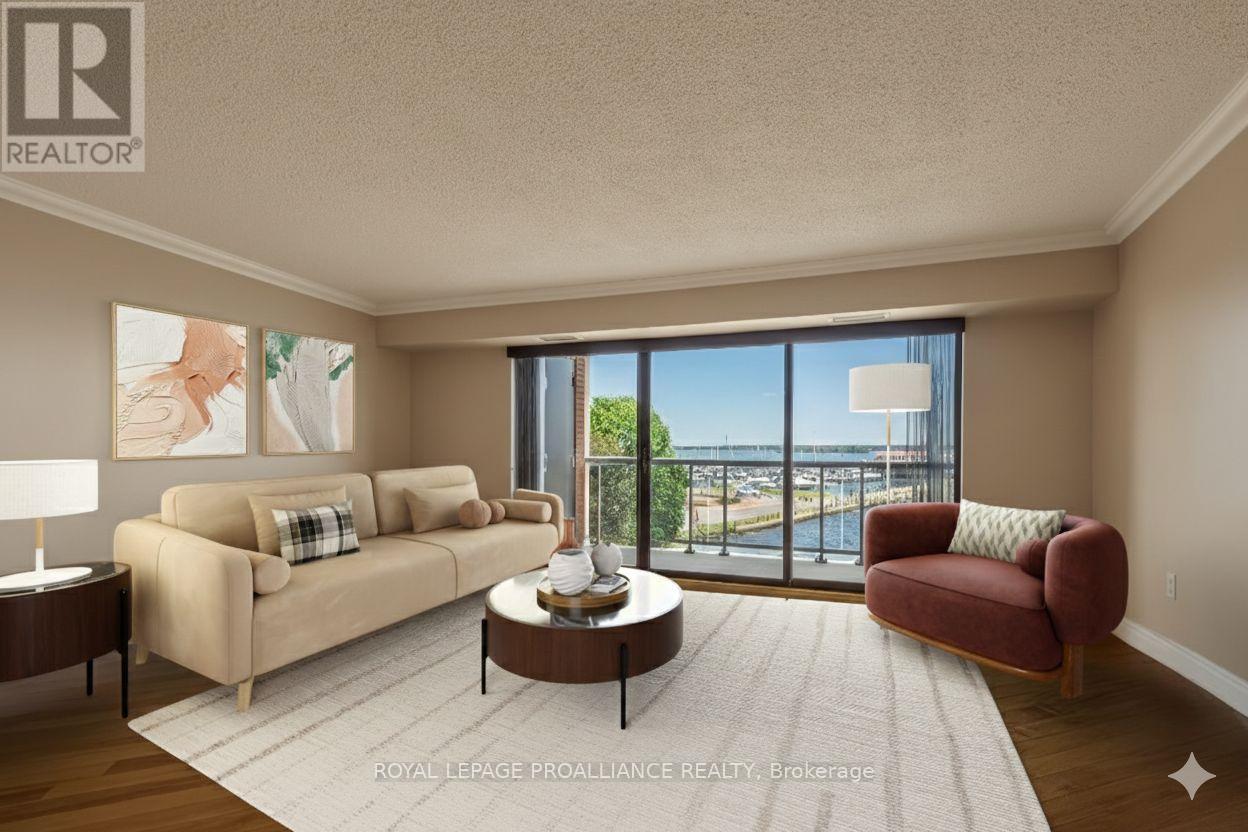 Located in Belleville's primary waterfront community on the Bay of Quinte. This 2 bedroom, 2 bathroom 1,232 sq. ft. condominium has been freshly painted and overlooks the Bay Bridge, Meyers Pier, and the marina. The open-concept design with 40-foot balcony that spans the entire condo, with access from both the living room and primary suite. The kitchen features custom cabinetry, granite countertops, and a seamless flow into the spacious living and dining areas with gleaming hardwood floors throughout. The primary suite includes balcony access, a walk-in closet, and 3 piece ensuite bath. The second bedroom or office offers flexibility for guests or working from home. Features concierge and security, a heated saltwater pool, sauna, fitness area, party and meeting rooms, a library/games room, tennis court, and convenient storage. Steps from downtown Belleville's restaurants, boutiques, and theatres, the hospital, and waterfront trails. Whether you're entertaining, working from home, or enjoying the sunset from your private balcony, Unit 402 at 2 South Front Street redefines the art of waterfront living. (id:64974)