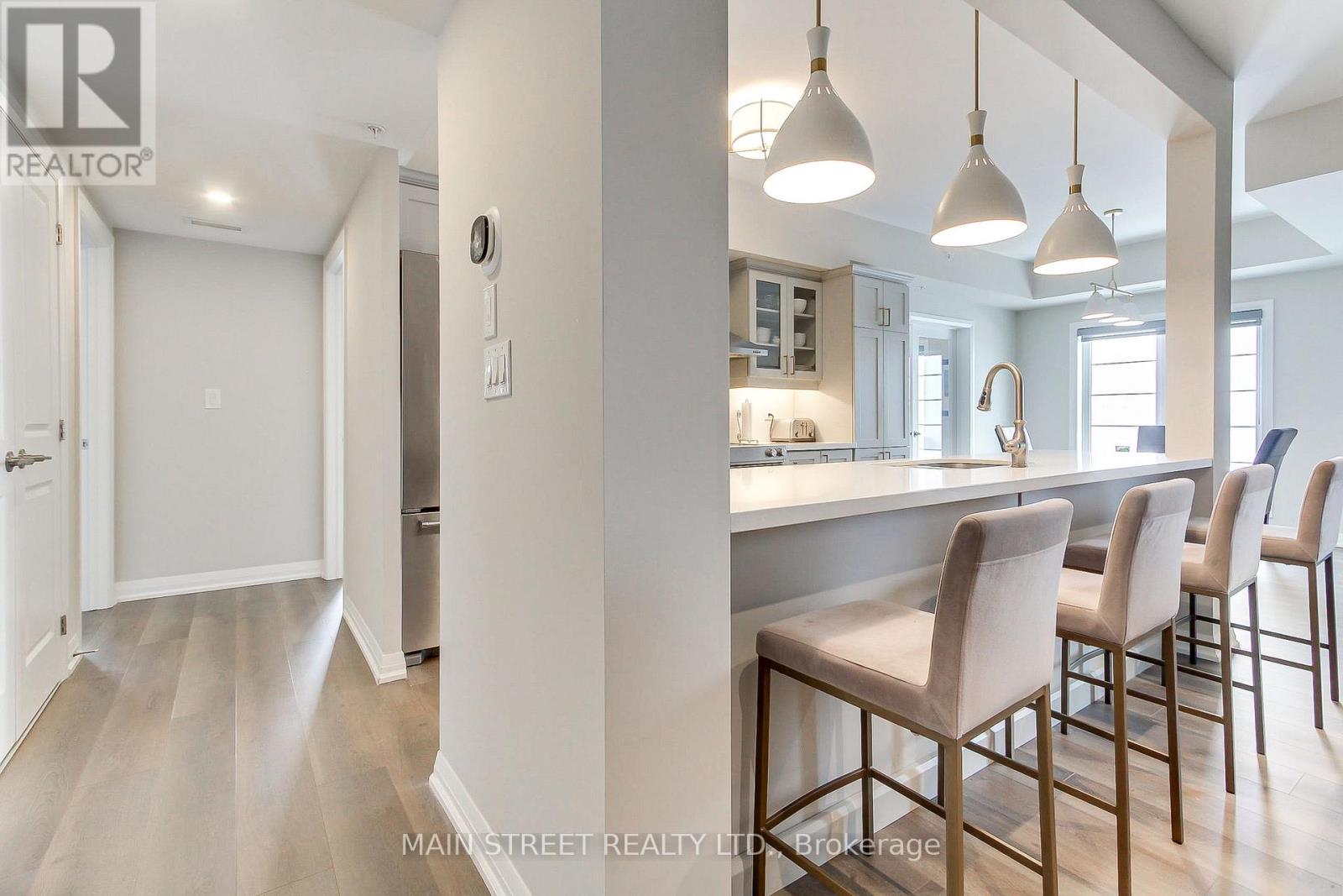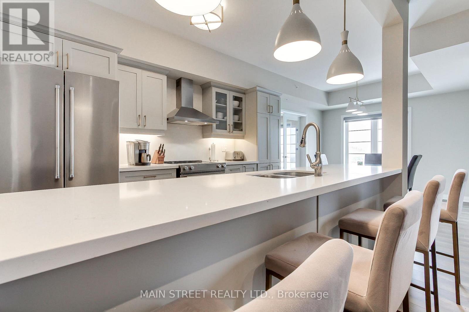 Welcome to 20 Koda Street, Unit 402, a stunning top-floor condo in the heart of Barrie offering 1,464 sq. ft. of beautifully upgraded living space. This spacious corner unit boasts an open-concept layout with abundant natural light, featuring modern finishes and thoughtful upgrades throughout. The upgraded kitchen showcases quartz countertops, stainless steel appliances, a stylish backsplash, and extended cabinetry-perfect for cooking and entertaining. The living area flows seamlessly to a private balcony with serene views, ideal for relaxing outdoors. With three generous bedrooms with bedroom 3 currently used as an office, upgraded flooring, custom lighting, and two full bathrooms including a luxurious ensuite, this condo combines elegance and comfort. Conveniently located near parks, shopping, schools, and Highway 400, this move-in-ready home is perfect for those seeking upscale condo living in one of Barrie's most desirable communities. (id:64974)