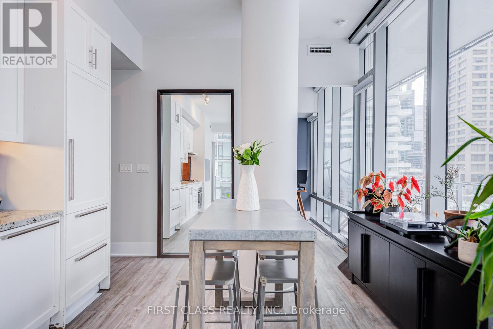 Welcome to Prestigious Waterfront Living At Pier 27. This Bright Functional Split 2Bedroom 2Bath Corner Suite! Smooth 10' Ceilings, Floor To Ceiling Windows. Features Designer Kitchen Cabinetry with Stainless Steel Appliances, Gas Stove, Granite Counters Tops, An Under mount Sink & A Breakfast Bar. Full-Height Doors, New Vinyl Floor (2024), Professionally Painted and Composite Balcony Flooring On 2 Balconies. Resort-Like Amenities: Indoor/Pool, Sauna, Gym, Car Wash, Guest Suite Theatre Rm, Billiard Rm! Steps To The Harbor front, Financial District, Union Station & St. Lawrence market. 1 Parking & 1 Locker Included! (id:64974)
