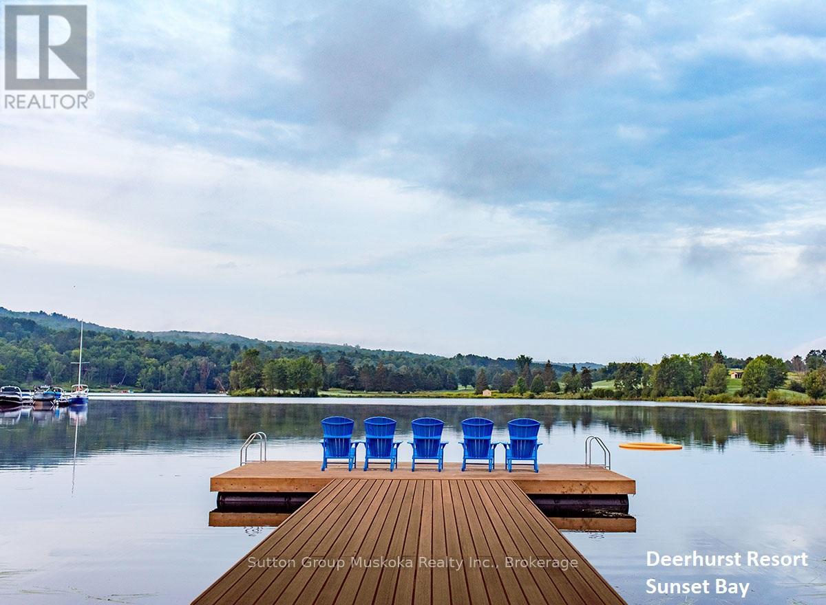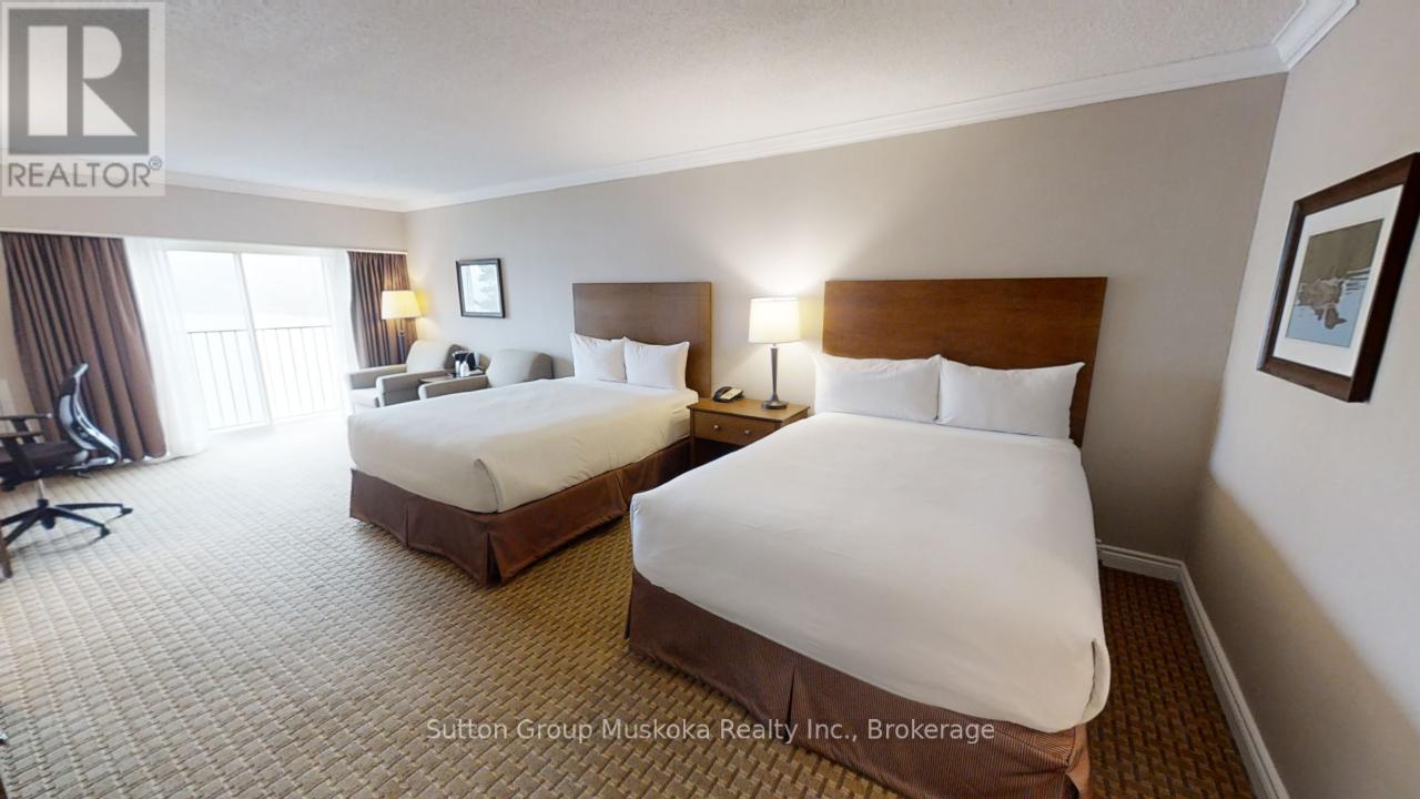 DEERHURST RESORT - BAYSHORE COMPLEX LOOKING OVER PENINSULA LAKE - Top floor waterfront condominium located in the Bayshore complex at Muskoka's premier resort - Deerhurst Resort. This waterfront unit offers a great view over Peninsula Lake and is steps away from the beach. Inside the unit, you will find a large great room with two queen beds, a sitting area, a flat-screen TV, a bar fridge, and a full bathroom. The unit is on the rental program, with the resort providing revenue to the unit owner. For 2024, the owners' share of revenue was $14,360. Revenue for 2025 not including December 2025 was $15,661 (December 2025 revenue to follow).The monthly condo fee is $563.30 plus HST (HST should be recoverable), and the annual property tax of $1597. Enjoy the resort lifestyle - golf, beach, pools, tennis, trails, restaurants, and more. HST is applicable to the sale of this unit and is recoverable. The unit is a large hotel room; all Bayshore units must be kept on the rental program with the resort. Great unit - Great location and an amazing resort! Live, vacation and invest in Canada! (id:64974)