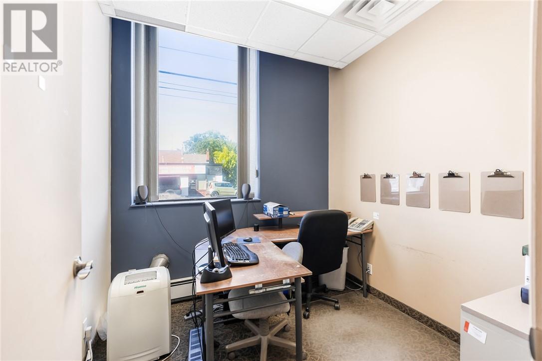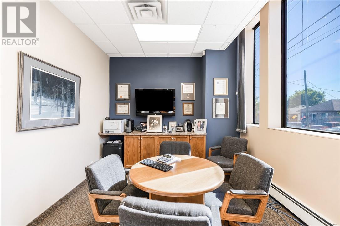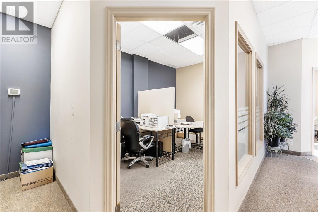 Excellent investment opportunity with this commercial/residential building in a prime location. The main floor offers a flexible office layout with 7 offices, currently rented for $2,000/month on a triple-net basis (tenant also pays taxes, utilities, and insurance for the entire building). There is opportunity to increase rent. All interior office walls are non-load-bearing, allowing for maximum customization to suit future needs. The upper level, with a separate entrance, features two apartments: a 2-bedroom unit renting for $1,650/month and a loft-style open-concept apartment renting for $850/month, both on month-to-month leases, utilities included. The building is a former TD Bank, exceptionally well-built. Current owner occupies the main level and is willing to stay as a tenant for at least three more years, or vacate if buyer wishes to occupy. Vendor is also willing to consider a VTB (Vendor Take-Back) for qualified buyers. (id:64974)