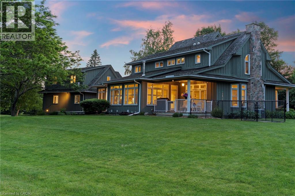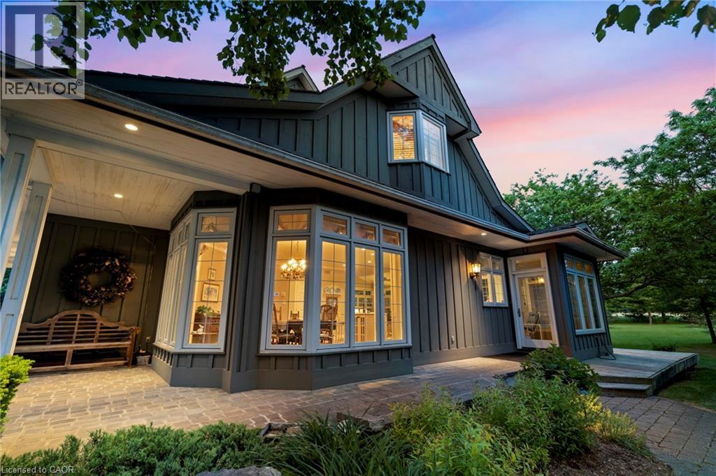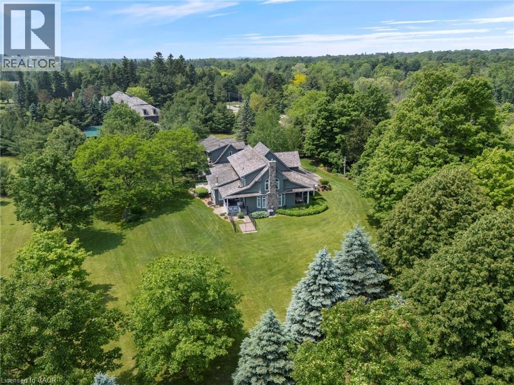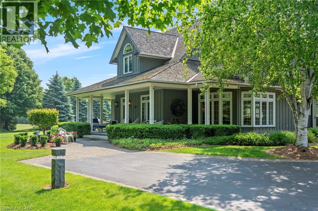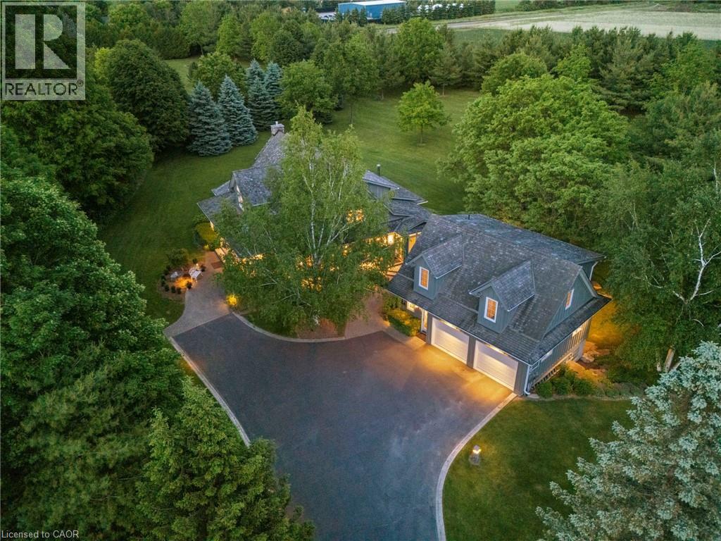 Welcome to your private country retreat on nearly 4 acres in the heart of Carlisle. From the moment you arrive, this property leaves a lasting impression with its winding driveway, lush natural surroundings, and timeless centre-hall design. Nestled on a quiet hill and surrounded by mature trees, this custom-built home offers an exceptional blend of craftsmanship, quality, and classic charm. The inviting front and covered side porches provide peaceful spaces to relax and take in the views. Inside, the home showcases maple hardwood flooring and a bright, open-concept layout designed for modern living. The kitchen is equipped with high-end stainless steel appliances, quartz countertops, and a large central island that flows seamlessly into the dining and living areas, perfect for both entertaining and everyday comfort. Just off the kitchen, a sunroom offers a serene spot to enjoy morning coffee while overlooking the greenery. The family room exudes warmth with its inviting fireplace and direct walkout to the backyard. Upstairs, the primary suite is a true retreat. Designed with spa-like comfort in mind, this space features a spacious layout, walk-in closets, and a luxurious en-suite bathroom complete with a glass shower, soaker tub, double vanity, and heated floors. The fully finished basement offers generous additional living space and ample storage, making it perfectly suited for a variety of needs. A standout feature of this property is the workshop, ideal for storage, projects, or equipment. Another highlight is the spacious, fully finished apartment above the double garage with a separate entrance, offering incredible potential for guests, in-laws, or rental income. This is a rare opportunity to own a truly versatile property in one of Carlisle’s most picturesque locations. With premium finishes, thoughtful design, and expansive indoor and outdoor living spaces, this home delivers a lifestyle that’s increasingly hard to come by. (id:64974)