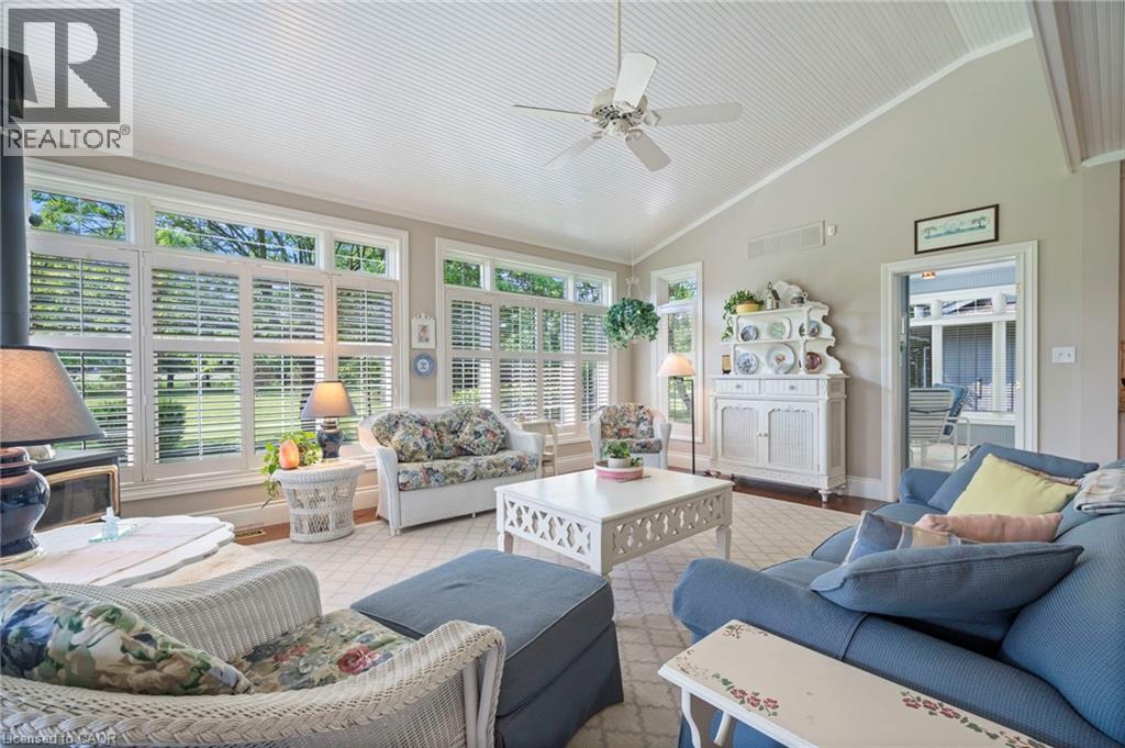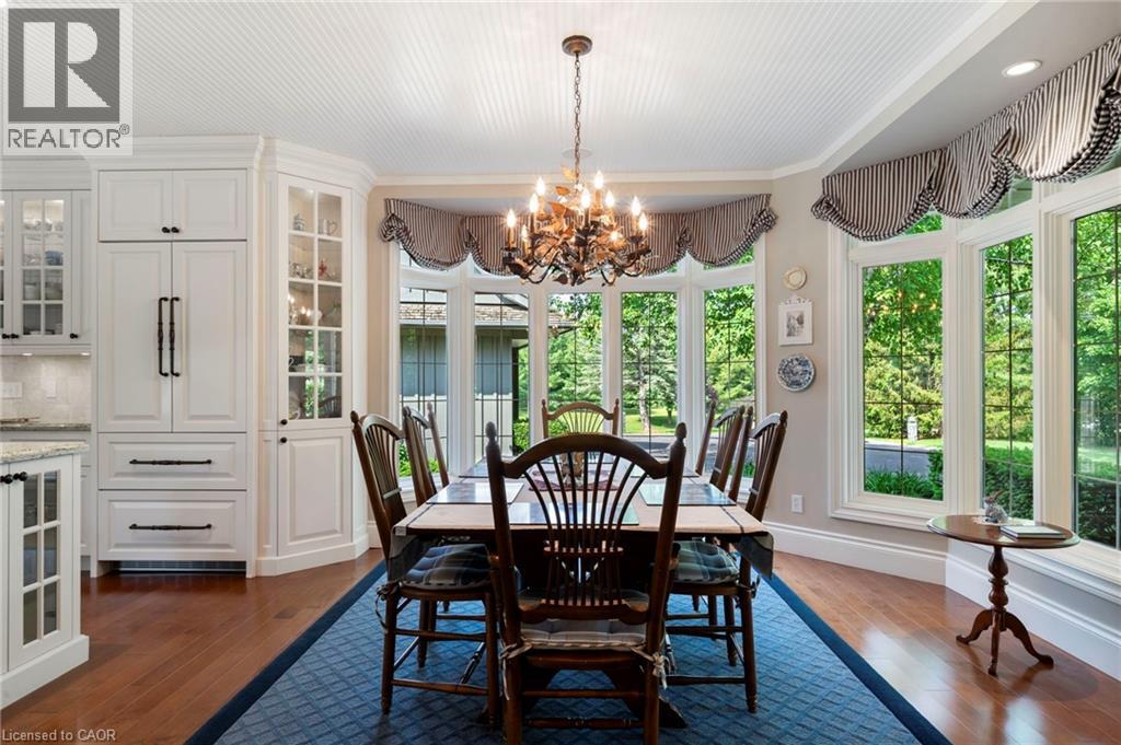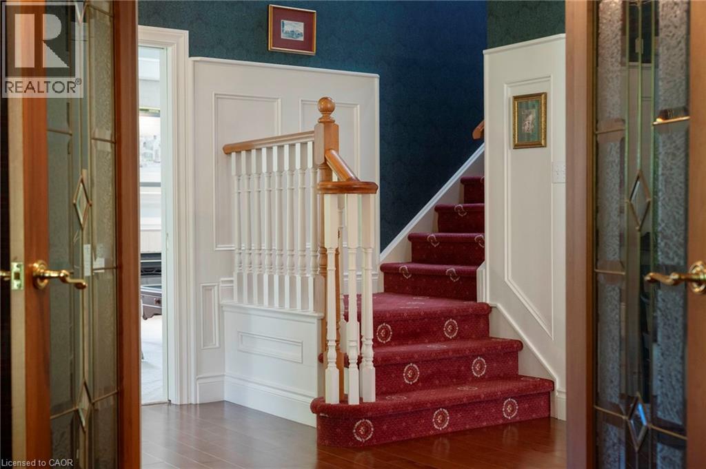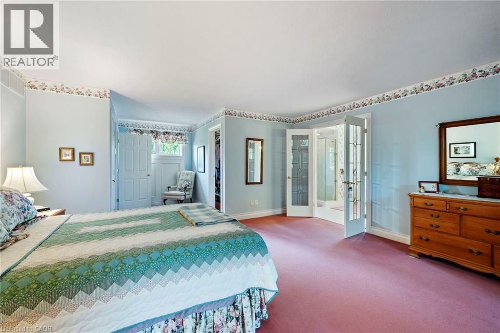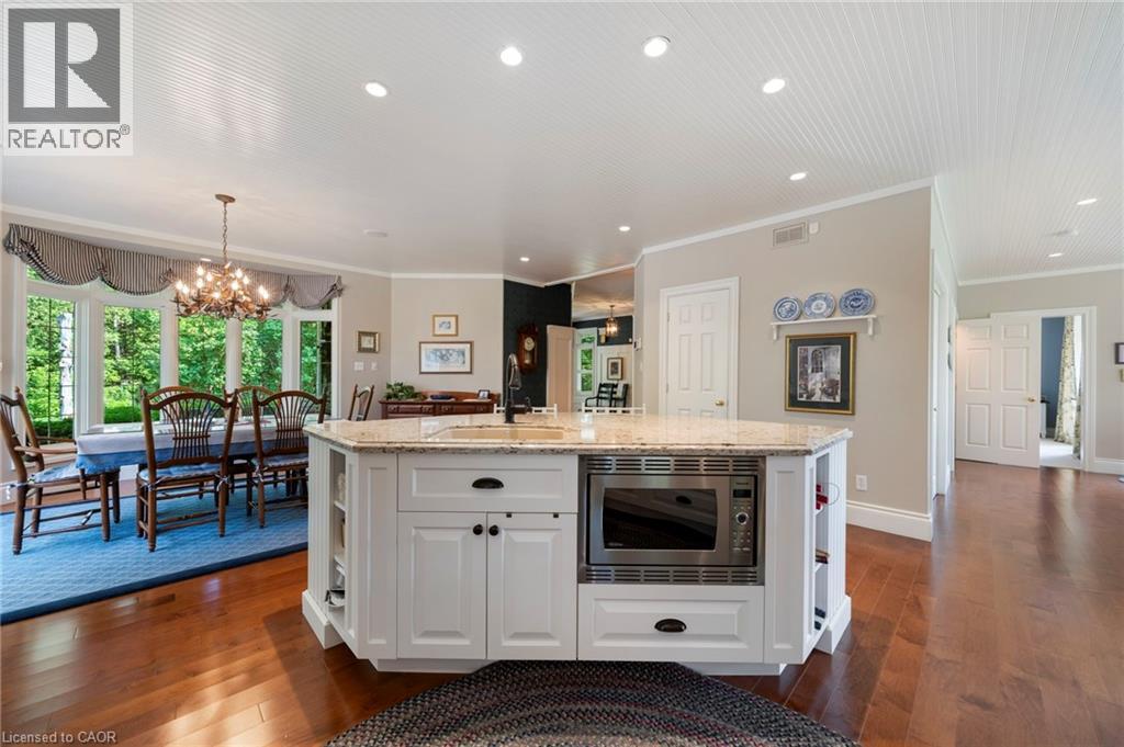 Welcome to your private country retreat on nearly 4 acres in the heart of Carlisle. From the moment you arrive, this property leaves a lasting impression with its winding driveway, lush natural surroundings, and timeless centre-hall design. Nestled on a quiet hill and surrounded by mature trees, this custom-built home offers an exceptional blend of craftsmanship, quality, and classic charm. The inviting front and covered side porches provide peaceful spaces to relax and take in the views. Inside, the home showcases maple hardwood flooring and a bright, open-concept layout designed for modern living. The kitchen is equipped with high-end stainless steel appliances, quartz countertops, and a large central island that flows seamlessly into the dining and living areas, perfect for both entertaining and everyday comfort. Just off the kitchen, a sunroom offers a serene spot to enjoy morning coffee while overlooking the greenery. The family room exudes warmth with its inviting fireplace and direct walkout to the backyard. Upstairs, the primary suite is a true retreat. Designed with spa-like comfort in mind, this space features a spacious layout, walk-in closets, and a luxurious en-suite bathroom complete with a glass shower, soaker tub, double vanity, and heated floors. The fully finished basement offers generous additional living space and ample storage, making it perfectly suited for a variety of needs. A standout feature of this property is the workshop, ideal for storage, projects, or equipment. Another highlight is the spacious, fully finished apartment above the double garage with a separate entrance, offering incredible potential for guests, in-laws, or rental income. This is a rare opportunity to own a truly versatile property in one of Carlisle’s most picturesque locations. With premium finishes, thoughtful design, and expansive indoor and outdoor living spaces, this home delivers a lifestyle that’s increasingly hard to come by. (id:64974)