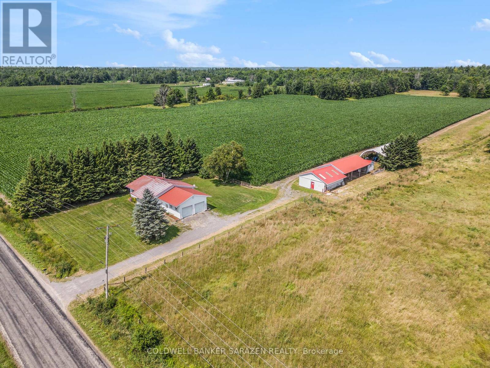 60 Acre farm property within 35 Minutes of Ottawa. Private location yet just minutes to Arnprior. This property has it all. Approx. 30-35 Acres Tillable Crop. Land currently planted in corn and some hay. Pasture and bush area as well. Property has frontage on two roads. 2 - Large Open Loafing Barns. Property could be ideally suited for Livestock, Horses or storage for contractor etc. 3 Bed Room Bungalow. Good Sized Eat In Kitchen with plenty of counter and cupboard space. Large Living Room with wood burning fireplace gives access to nice private back yard deck. Hardwood floors throughout. Full Basement has some interior framing but remains ready for your finishing touches. Heating is with Wood/Electric Combo Furnace, Large parking area. (id:64974)