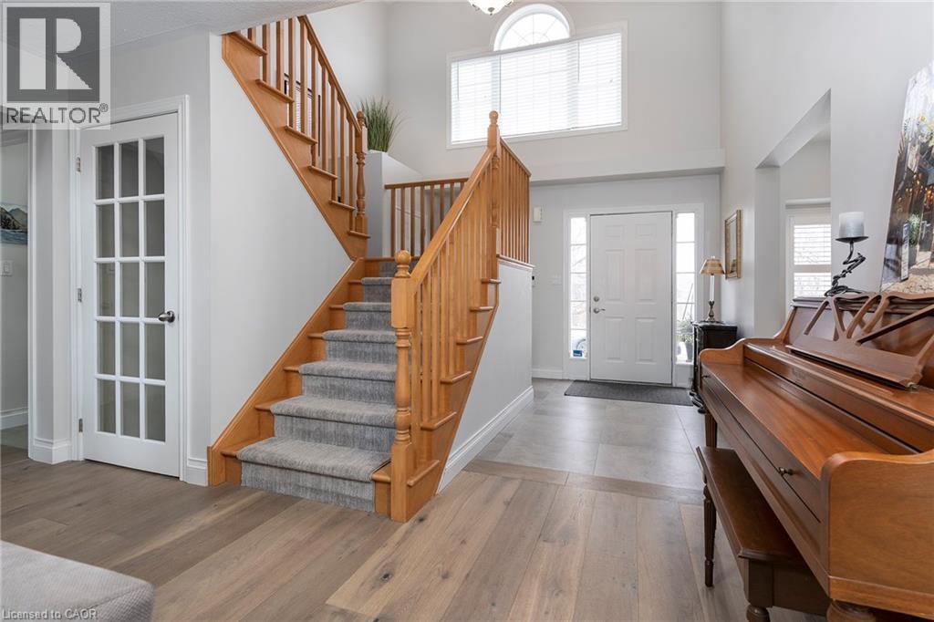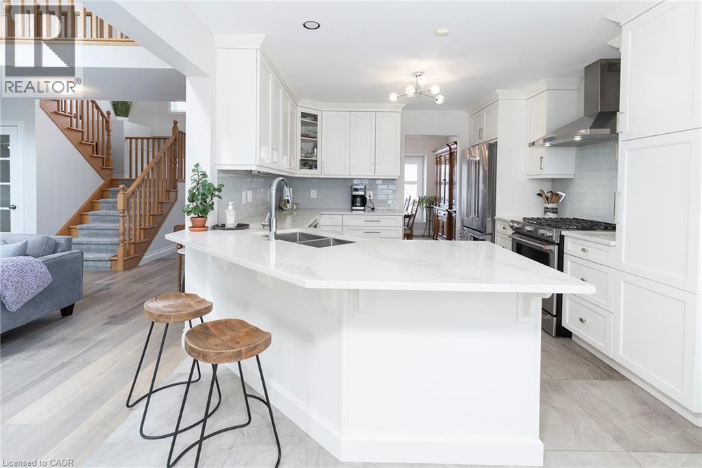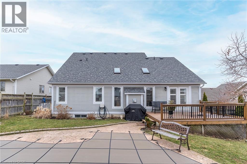 ONE OF A KIND!!! CUSTOM QUALITY BUILT Bungaloft with double garage in a 10+ location in the heart of Beamsville. This is the ONE from the moment you drive up with mature trees, large concrete drive with plenty of parking & concrete path to the covered porch perfect for morning coffee or evening wine. You will be WOWED as soon as you step into the spacious foyer with large tiles giving a grand feel. The bright & spacious main floor offers a FANTASTIC floor plan with open concept living room & eat-in kitchen that opens to the backyard perfect for gatherings. The EAT-IN kitchen is a chefs dream with high end stainless appliances, stone counters, modern yet classic tiled backsplash, plenty of white modern cabinets including a large pantry cupboard and peninsula island seating. The GREAT room with soaring 16 foot vaulted ceilings offers plenty of natural light with 2 large windows and skylight, however, still offers a cozy feel with the gas fireplace perfect for family nights or entertaining. Bonus formal dining room for larger dinners. Complete this floor with a generous sized master retreat with walk in closet and with 5 piece spa like bath and convenient 2 piece bath by the entrance. Upstairs offers a fantastic set up with 2 spacious bedrooms and a 4 piece bath making it perfect for older children or guests. It doesn't stop there the basement is also fully finished and well thought out with family room for family movie or game nights and separate game area, 4th bedroom and a modern updated 2 piece bath for your convenience. All this and plenty of storage and a laundry room that will make you want to do laundry. The fully fenced backyard is the epitome of relaxation or entertaining. There is a spacious deck with plenty of room for meals and gathering, breathtaking in-ground pool and still greenspace for the kids, grand kids or dogs. Looking for YOUR DREAM HOME, this is IT!!!! PEACE OF MIND BONUS: A/C & Pool Pump (2023) Roof (2019) & Pool Liner (2025) (id:64974)