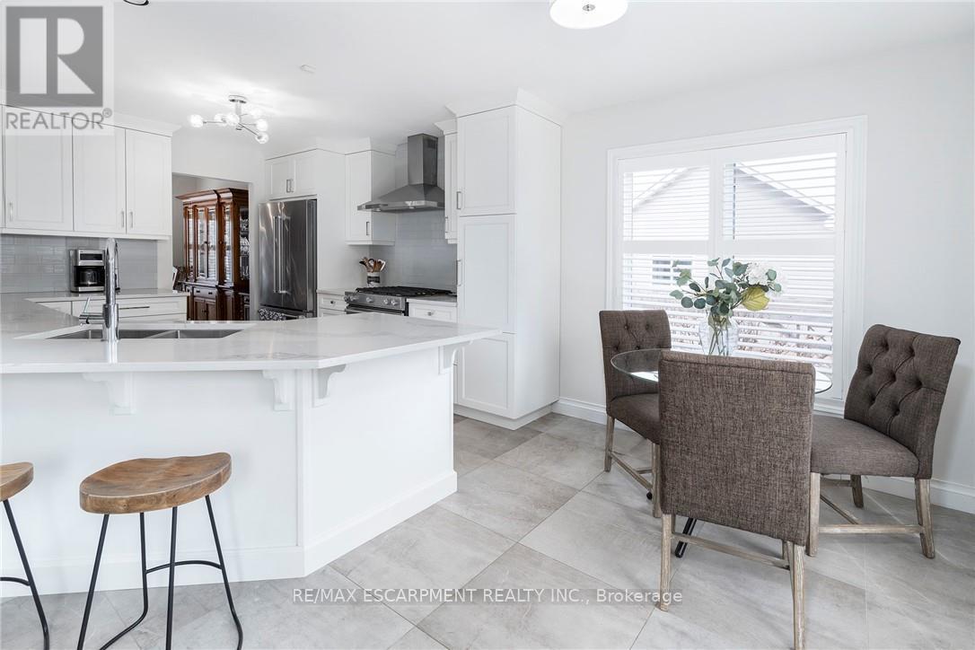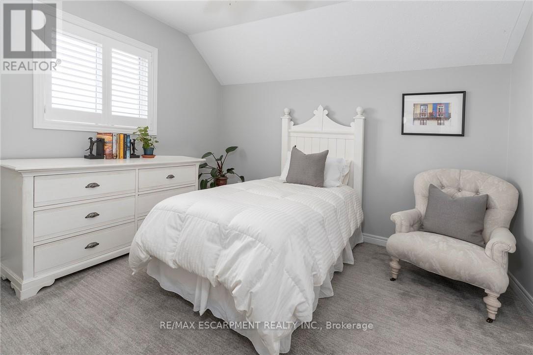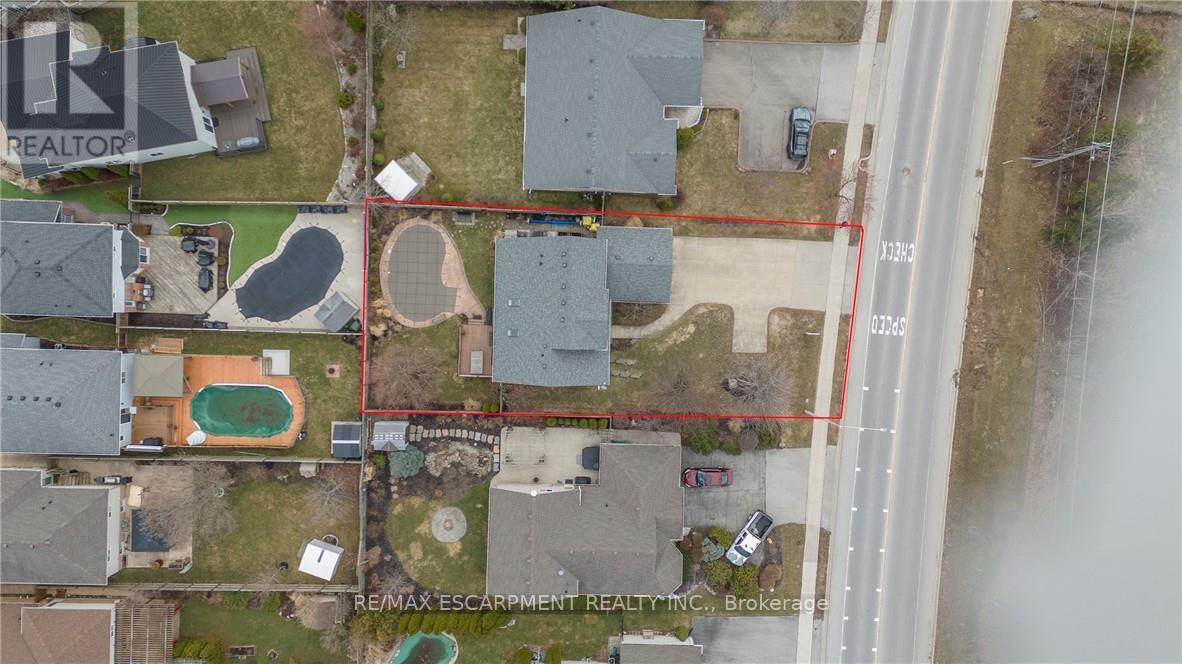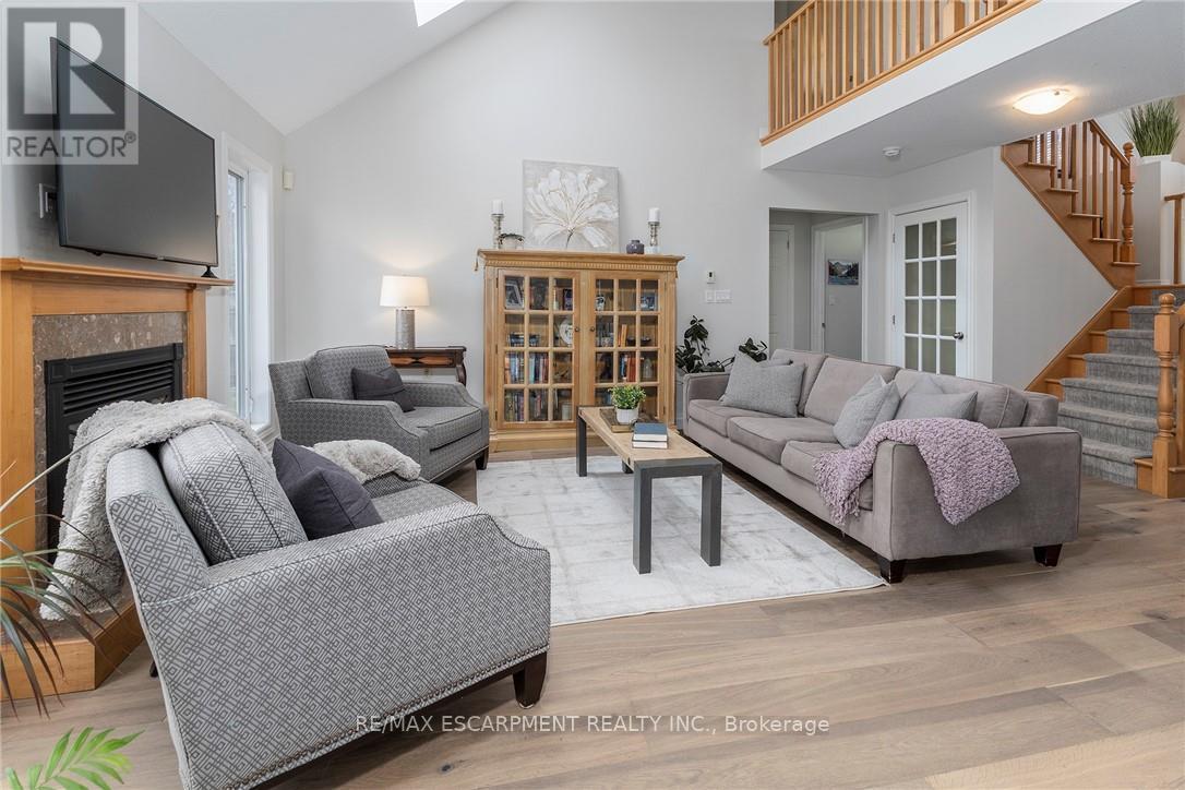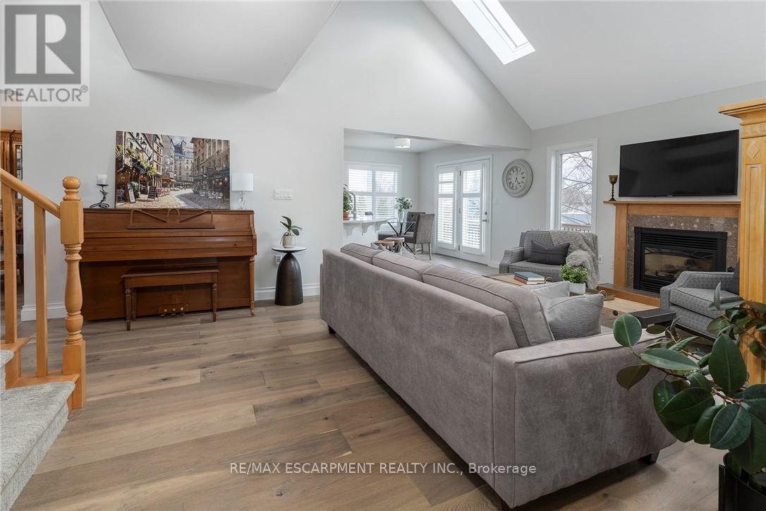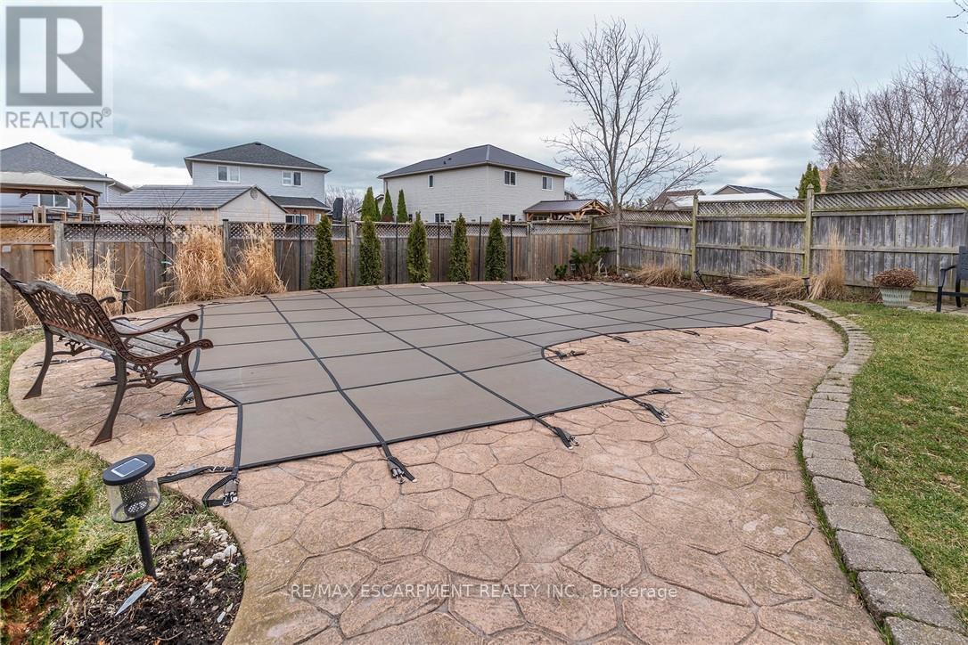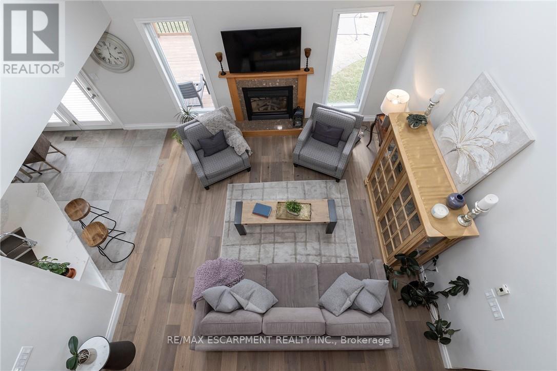 ONE OF A KIND!!! CUSTOM QUALITY BUILT Bungaloft with double garage in a 10+ location in the heart of Beamsville. This is the ONE from the moment you drive up with mature trees, large concrete drive with plenty of parking & concrete path to the covered porch perfect for morning coffee or evening wine. You will be WOWED as soon as you step into the spacious foyer with large tiles giving a grand feel. The bright & spacious main floor offers a FANTASTIC floor plan with open concept living room & eat-in kitchen that opens to the backyard perfect for gatherings. The EAT-IN kitchen is a chefs dream with high end stainless appliances, stone counters, modern yet classic tiled backsplash, plenty of white modern cabinets including a large pantry cupboard and peninsula island seating. The GREAT room with soaring 16 foot vaulted ceilings offers plenty of natural light with 2 large windows and skylight, however, still offers a cozy feel with the gas fireplace perfect for family nights or entertaining. Bonus formal dining room for larger dinners. Complete this floor with a generous sized master retreat with walk in closet and with 5 piece spa like bath and convenient 2 piece bath by the entrance. Upstairs offers a fantastic set up with 2 spacious bedrooms and a 4 piece bath making it perfect for older children or guests. It doesn't stop there the basement is also fully finished and well thought out with family room for family movie or game nights and separate game area, 4th bedroom and a modern updated 2 piece bath for your convenience. All this and plenty of storage and a laundry room that will make you want to do laundry. The fully fenced backyard is the epitome of relaxation or entertaining. There is a spacious deck with plenty of room for meals and gathering, breathtaking in-ground pool and still greenspace for the kids, grand kids or dogs. Looking for YOUR DREAM HOME, this is IT!!!! PEACE OF MIND BONUS: A/C & Pool Pump (2023) Roof (2019) & Pool Liner (2025) (id:64974)