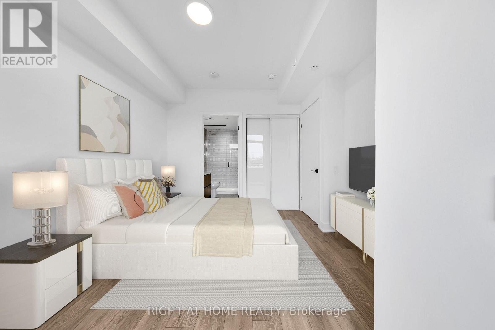 Experience modern boutique living at The Poet, a sought-after 6-storey residence in the heart of Leslieville. This virtually staged, upgraded 2-bedroom, 2-bathroom suite features a highly functional split-bedroom layout, offering exceptional privacy and everyday comfort. The bright open-concept living and dining area is framed by floor-to-ceiling windows and flows seamlessly to a large private balcony, ideal for relaxing or entertaining with city views. The chef-inspired kitchen is equipped with premium built-in appliances, a paneled fridge and dishwasher, and sleek contemporary cabinetry. The spacious primary bedroom includes a spa-inspired ensuite, ample closet space, and direct balcony access. The second bedroom is perfect for guests, a home office, or family use. Additional highlights include engineered European oak flooring, upgraded shower finishes, a welcoming foyer with built-in storage, in-suite laundry, and same-floor locker access. Parking and locker included. Residents enjoy premium amenities including a fitness centre, party/meeting room, pet spa, bike storage, visitor parking, and a stunning rooftop garden terrace with gas BBQs and sweeping city skyline views. Ideally located steps to Queen Street East, transit, parks, shops, cafés, and restaurants, with The Beach minutes away. A refined urban home offering lifestyle, convenience, and long-term value. (id:64974)