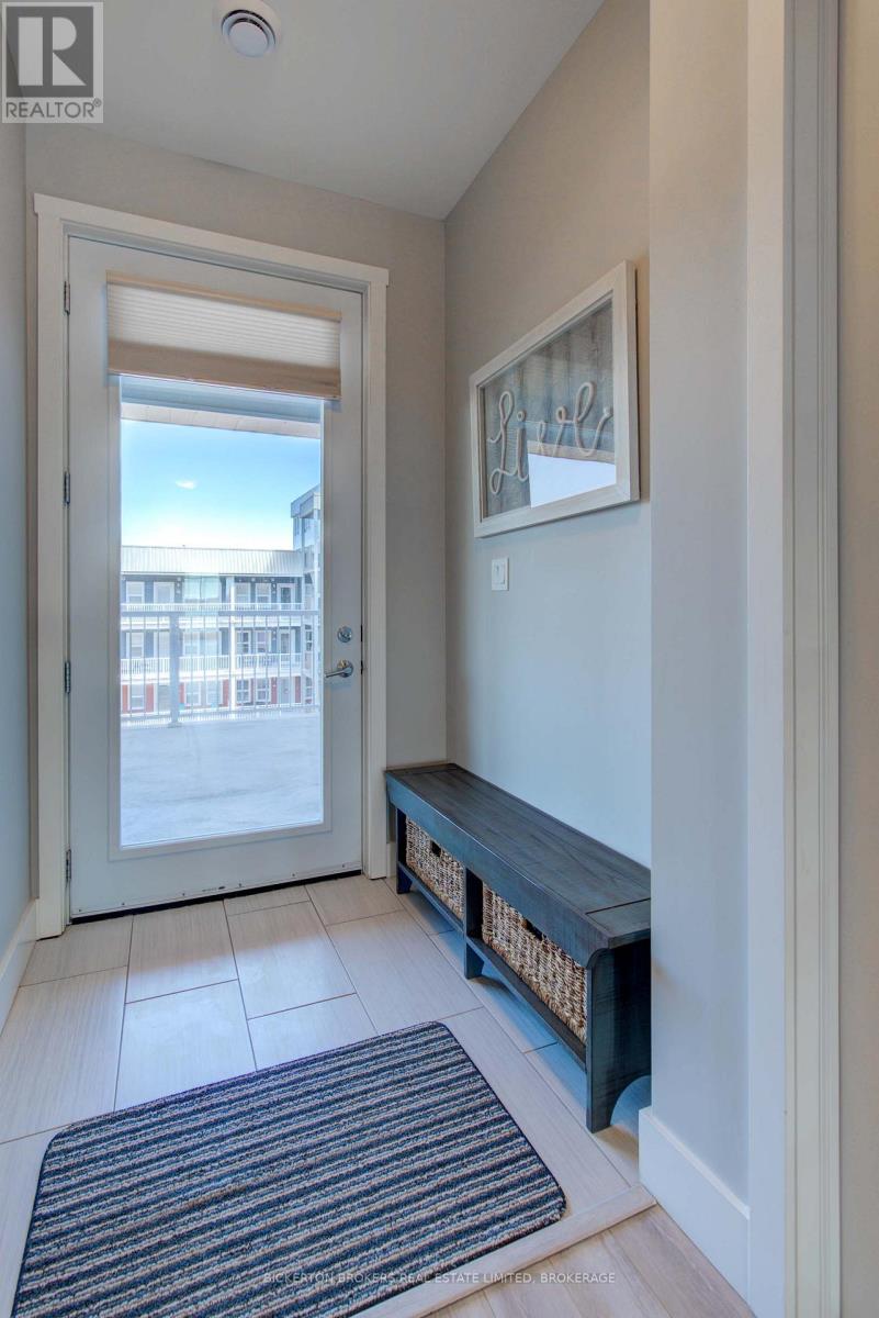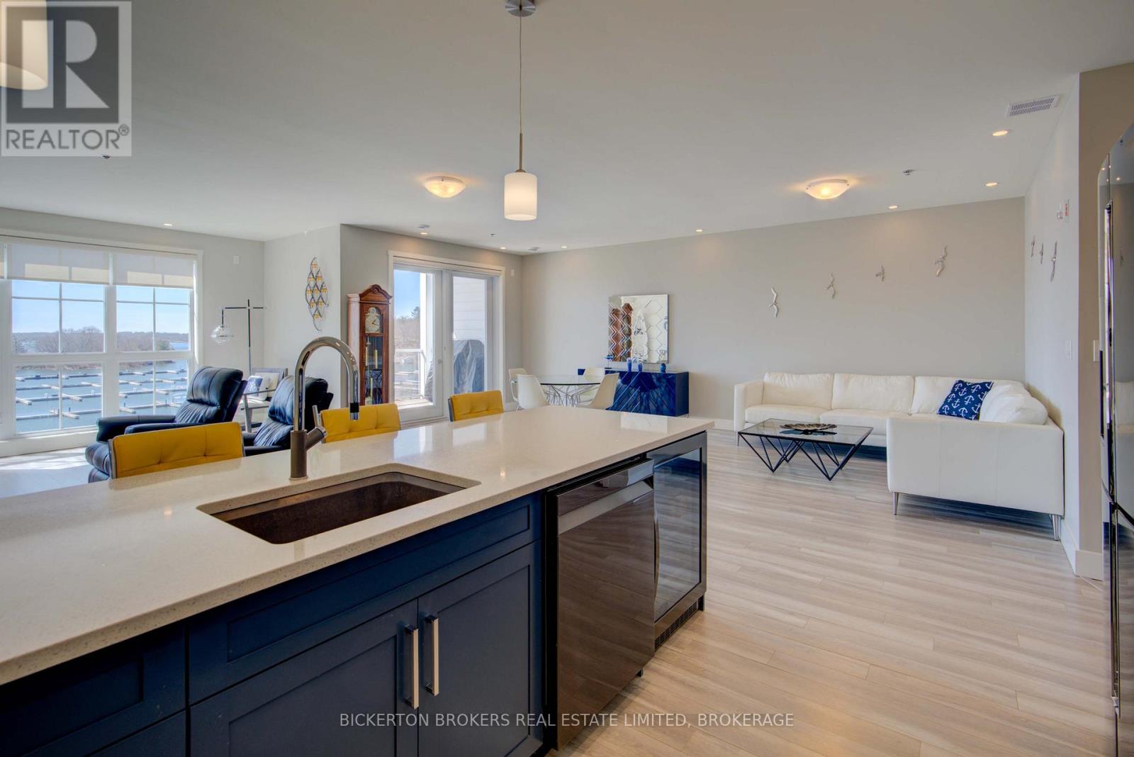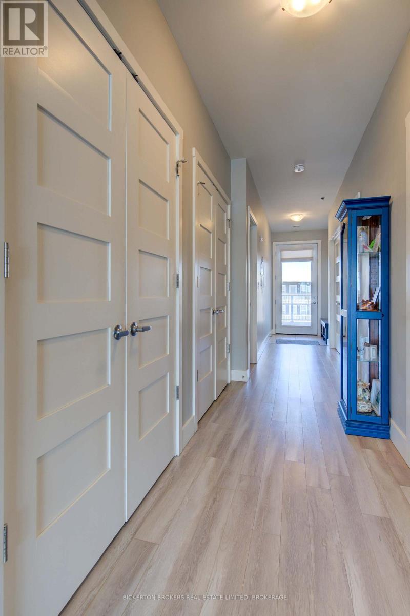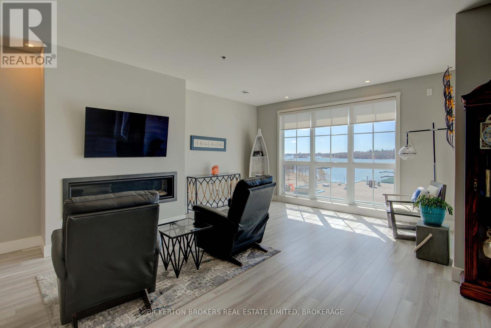Gorgeous river views and sunsets await you in this magnificent top floor Condo situated at the pet friendly Island Harbour Club on the shores of the St Lawrence River in beautiful GANANOQUE. This bright and spacious Condo unit has many extras and features 2 bedrooms, 2 bathrooms and all the modern finishes and features you would expect in a new Condo including open concept living, quartz countertops, in-floor heating and gas fireplace. You will love the indoor parking space (EV) and close proximity to local shopping, pubs, marinas , walking trails and entertainment. Call today to book your personal showing. (id:64974)