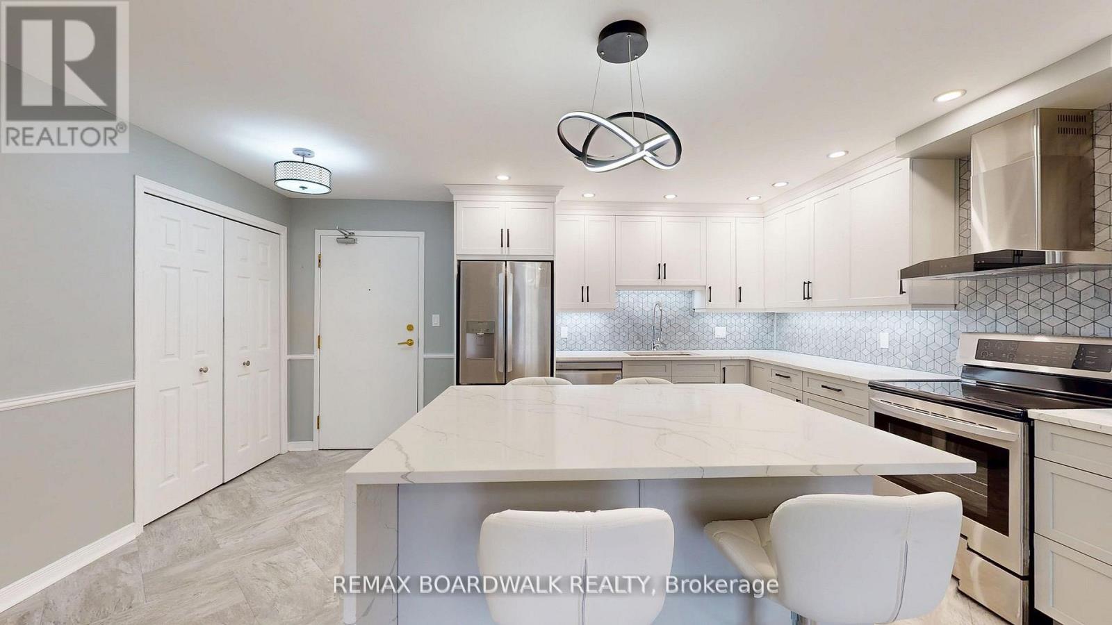 Welcome to The Camelot, a well-maintained condominium offering comfortable, carefree living in a convenient location. This bright and spacious unit features a well-designed layout with an inviting living and dining area, seamlessly open to a beautifully updated kitchen complete with modern white cabinetry, Quartz countertops, stainless steel appliances, and a generous centre island-perfect for everyday living and entertaining. Step out onto your private balcony off the living room, an ideal spot to relax with your morning coffee or unwind with a good book. The unit offers two large, sun-filled bedrooms with double closets, a modern three-piece bathroom with a walk-in shower, and a convenient in-unit storage room to complete the space. Ideally situated close to shopping, restaurants & public transit, everything you need is just minutes away. Perfect for down-sizers, first-time buyers, or investors, this move-in-ready home offers effortless condo living in one of Brockville's well-established condominium communities. (id:64974)
