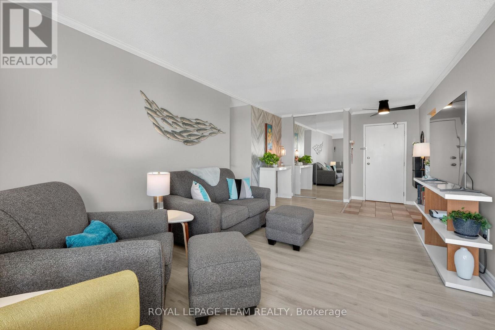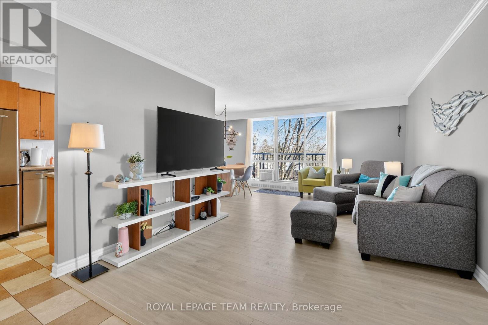 Welcome to the Renaissance! A fantastic apartment condominium located in the desirable community of Guildwood Estates. This enviable corner unit on the 4th floor enjoys space and sunlight throughout. Your large balcony enjoys an unobstructed eastern view. This home has been meticulously maintained. Two bedrooms, two bathrooms, large living room/dining room with a well laid out galley kitchen. Kitchen is tastefully updated, with additional cupboards, cabinets and drawers, offering ample storage and counterspace. Primary bedroom benefits from the southern exposure, has walk-in closet & a 2-pce ensuite. Second bedroom, and a full bathroom. (Bathroom reno 2024). High end laminate flooring throughout in recent years. Professionally painted Nov 2025. There is nothing to do - simply move in, unpack and enjoy! Included is 1 underground parking space (#51) and 1 storage locker (#403). INCLUDED in the condo fees are the heat, hydro and water costs for convenient and predictable budgeting. This building is pet friendly. Additional storage in lower level, and easy underground parking. Fabulous amenities include: Guest Suite, Party Room with Kitchen, Men and Women's Fitness Rooms (with bathrooms, showers + saunas), Games Room/Library, Bike Storage. Conveniently located near transit, parks, schools, restaurants, shops, and synagogue. Easy access to General Hospital. Don't miss out on this great apartment and view it today! (id:64974)