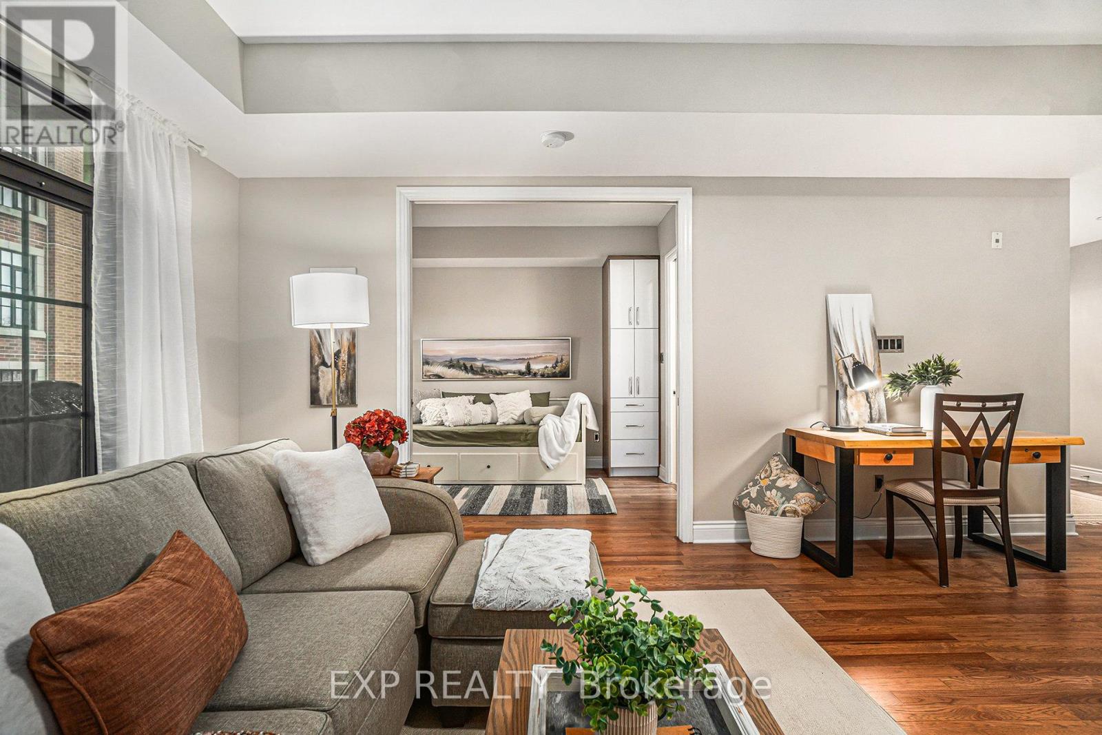 QUICK CLOSING POSSIBLE! Discover stylish urban living in this upgraded turnkey 2 bedroom condo with each their own ensuite bathrooms just moments from the Civic Hospital (both existing and new locations!), Little Italy, Dow's Lake, O-Train and so much more! Located in the exclusive Radcliffe building by award winning DOMICILE developer, this unit blends modern comfort with an unbeatable walkable lifestyle. A spacious foyer with double closets brings you into a versatile den, perfect for a home office or study. The bright, open-concept living and dining area extends to a private covered balcony with a gas BBQ hookup (BBQ included!). The well appointed kitchen offers granite countertops, a breakfast bar, stainless steel appliances (including gas stove), ample cabinetry and upgraded flooring. The primary suite features double closets and a luxurious 4 pc ensuite, while the second bedroom also has its own ensuite bathroom. Additional perks include recently refinished flooring, recent repainting, in-unit laundry, underground parking and TWO storage lockers (1 being on the same floor as the unit). Condo fees include heat and water, plus access to excellent amenities: a gym, party room, bike storage and underground parking. Set in one of Ottawa's most desirable and walkable neighbourhoods, you're steps from cafes, restaurants, parks and the LRT station...making commuting effortless, whether downtown or to the airport (just a 20 minute direct transit ride). Just 5 minutes drive to the Civic Hospital! Ideal for urban professionals seeking low maintenance living without compromising on location or lifestyle. Easy to view! (id:64974)