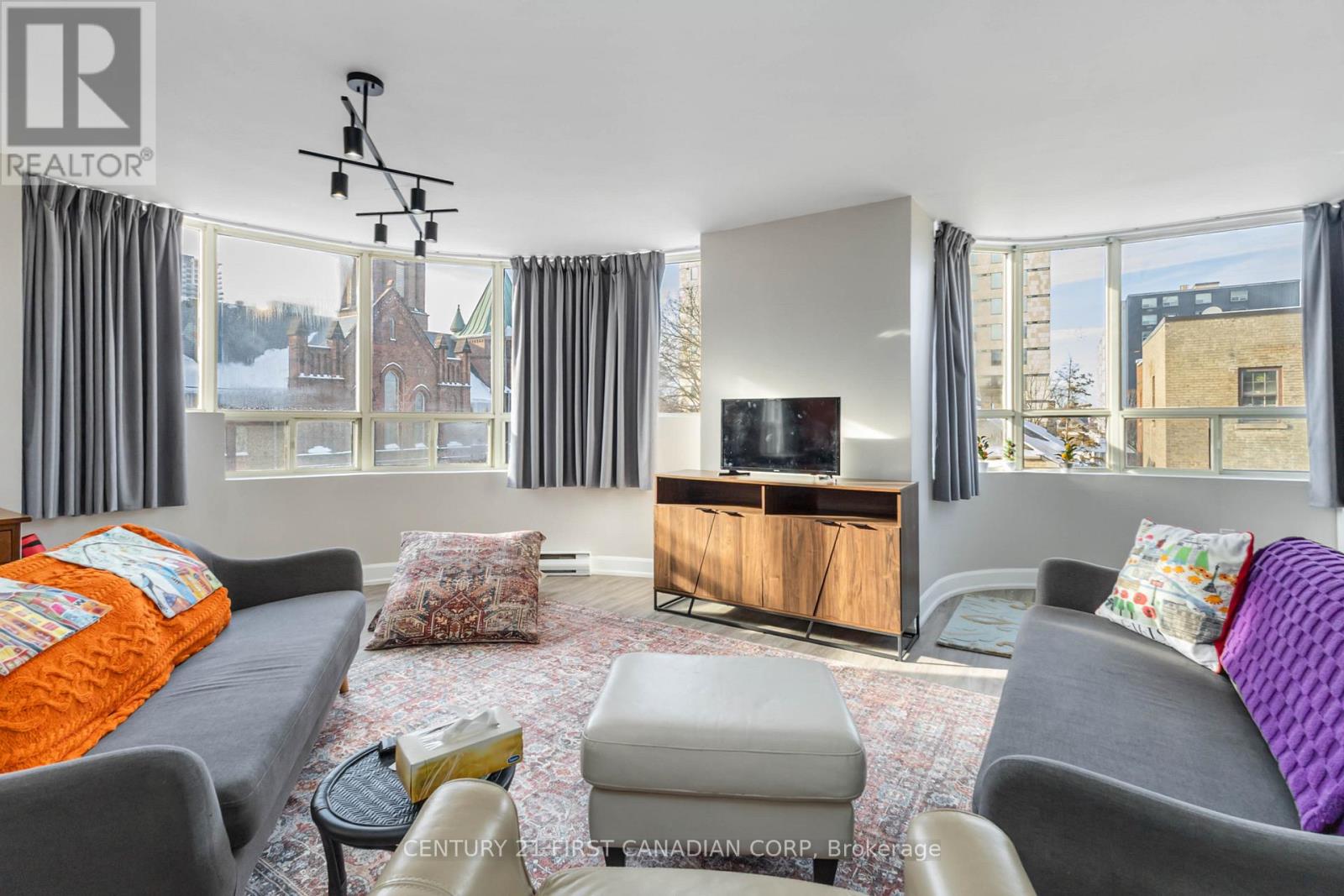 Experience downtown living at its finest in this beautifully renovated fourth-floor apartment that perfectly blends modern finishes with urban charm. This bright and spacious unit features two generous bedrooms and two full bathrooms, recently updated with new flooring, fresh paint, and a sleek modern kitchen complete with granite countertops. Large windows flood the space with natural light and offer impressive views of downtown London and the historic church next door. Located just steps from Victoria Park, shopping, dining, public transit, and all the conveniences of city living, this secure and well-maintained building also offers exceptional amenities, including a stunning indoor pool, a rooftop patio ideal for relaxing or entertaining, and a private entertainment room available for gatherings or overnight guests. Whether you're downsizing or searching for your next downtown home, this unit delivers comfort, style, and unbeatable convenience in the heart of the city. (id:64974)