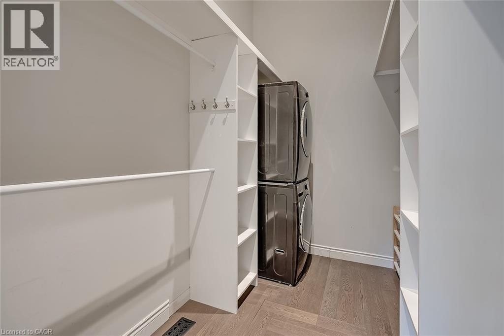This tastefully renovated century farmhouse sits on one of the most sought after streets in downtown Burlington, offering a truly unique opportunity on a premium park like 60 x 181 ft lot adjacent to the waterfront trail and bike path. This 3 bedroom, 3.5 bathroom home features hardwood floors, exposed brick, skylights and pot lighting that add warmth and character throughout. The main level features a beautiful primary bedroom with a spa inspired 5 piece ensuite and a large walk in closet with stacked washer and dryer. The open concept kitchen includes stainless steel appliances, marble counters, tile backsplash and under cabinet lighting. Enjoy the formal dining room with exposed brick, vaulted ceiling and a rough in wet bar, perfect for entertaining. Along the back is an inviting family room with custom built ins, a charming office or reading nook, and a powder room overlooking the expansive fully fenced backyard. The upper level offers 2 bedrooms and a full bathroom, ideal for kids or guests. The finished lower level provides even more flexibility, featuring a comfortable rec room or home office along with a 3 piece bathroom. There is inside access to the spacious 1.5 car garage with a bonus fully finished kids retreat above, complete with electric fireplace and AC. The driveway provides parking for 4 cars. Steps to schools, parks, Lake Ontario, Spencer Smith Park, the YMCA, performing arts centre, library, shops and restaurants, this home offers an unmatched walk-able lifestyle in downtown Burlington. (id:64974)