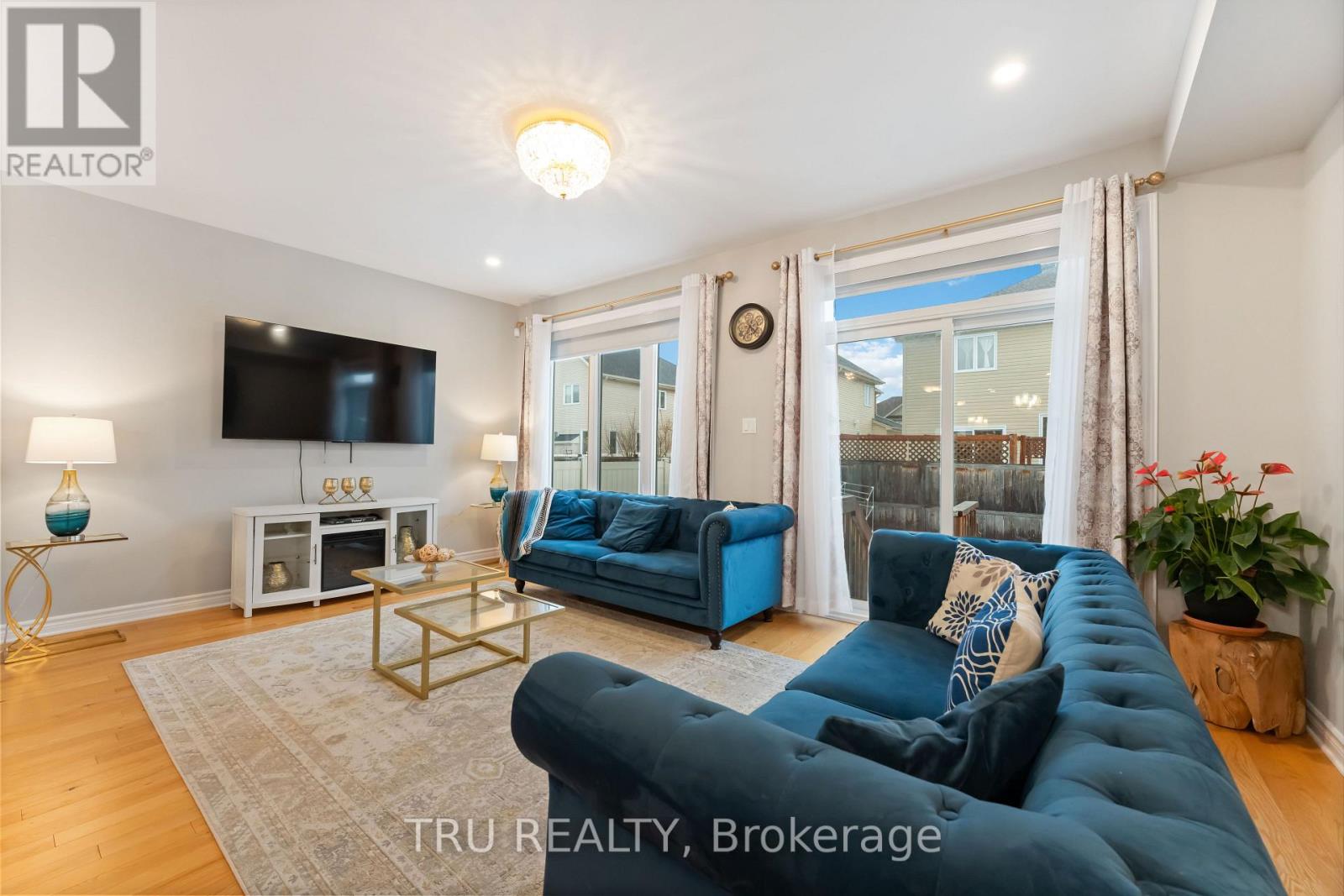 Welcome to 4031 Kelly Farm Drive, Ottawa - a beautiful end-unit Gala model by Tartan Homes offering over 2,500 sq ft of well-designed livingspace across three levels, located in the highly desirable Findlay Creek community. This home is perfectly positioned facing a park, with NO neighbours in front, providing open views and added privacy.The bright main floor features a modern chef's kitchen with quartz countertops,stainless steel appliances, and a large island that opens seamlessly to the spacious dining and living areas - perfect for everyday living andentertaining. 9-foot ceilings and pot lights add a bright and elegant touch throughout the space.Upstairs you'll find FOUR generous bedrooms,including a private primary suite with a walk-in closet and a modern ensuite bathroom. A convenient second-floor laundry room and anadditional full bathroom make family living both easy and practical.The fully finished lower level provides over 550 sq ft of additional livingspace, complete with a 3-piece bathroom, making it ideal for a guest suite, home office, or recreation room.Step outside to enjoy a fully fencedbackyard, perfect for relaxing or entertaining. The yard also includes a garden storage shed and an extended interlock driveway thataccommodates an additional vehicle. The home is Energy Star certified, offering improved efficiency and comfort year-round.Located in theheart of Findlay Creek, you are just minutes from parks, community pools, shopping, and excellent schools, including the newly built FindlayCreek Catholic Elementary School and Vimy Ridge Academy. The nearby Leitrim Park-and-Ride O-Train station provides quick and convenientaccess to downtown Ottawa.End units like this are rarely available - a fantastic opportunity to own in one of Ottawa's most popularneighbourhoods. (id:64974)