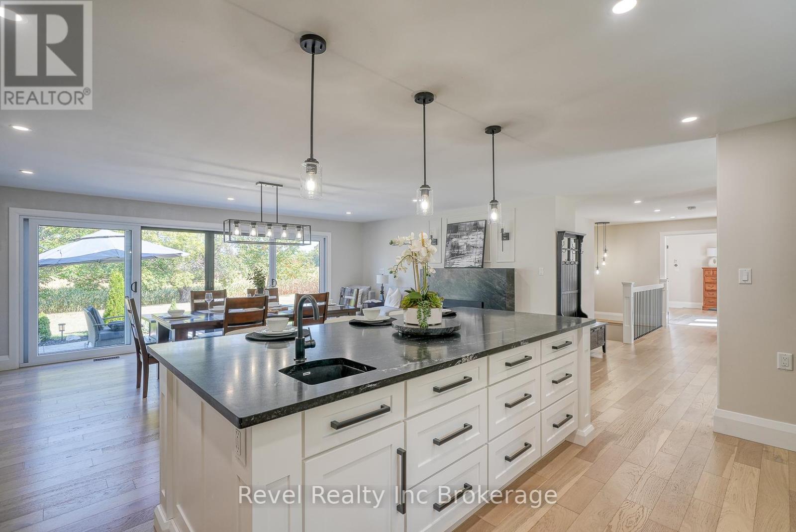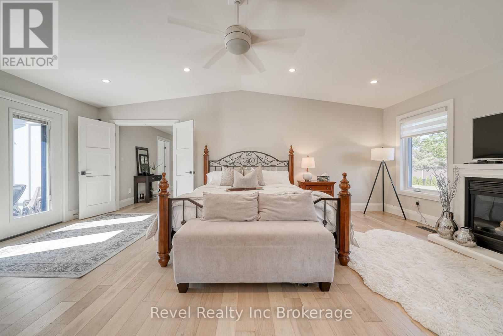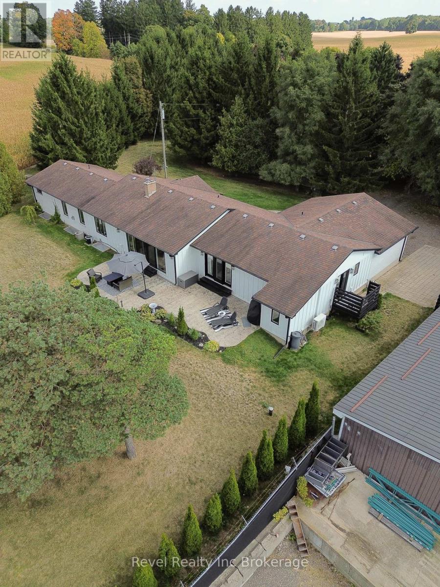 Welcome to a private ranch-style retreat, set on 37.85-42 acres and designed for those who value elegance, comfort, and space. A tree-lined laneway leads to this stunning residence, where contemporary stone and brickwork, a paved entry, and multiple garages (9 in total, including a heated and air-conditioned 2-car attached) set the tone for sophistication. Inside, the open-concept layout pairs luxury with functionality. The chefs kitchen features custom cabinetry, granite counters, and premium stainless appliances, seamlessly flowing to the dining area and stamped concrete patio, perfect for entertaining. A granite fireplace with WETT-certified insert offers warmth and style.The primary suite is a sanctuary with vaulted ceilings, a gas fireplace, two walk-in closets, a private terrace, and a spa-inspired ensuite with dual vanities, freestanding tub, walk-in shower, and separate bidet room. A spacious in-law suite with its own deck and ensuite offers comfort for extended family or guests.The light-filled lower level features oversized windows, a full bath, and versatile space for a gym, office, or rec room. Solid wood oversized doors and vaulted ceilings add timeless character throughout. Beyond the home, income opportunities abound with rental shop/office space, farmland, solar panels, and a fenced compound. Modern upgrades include on-demand hot water, water treatment system, and a 15kw roof-mounted solar system with off-grid potential.This estate blends luxury living with country serenity, offering space, privacy, income potential and lifestyle all in one just outside of town. (id:64974)