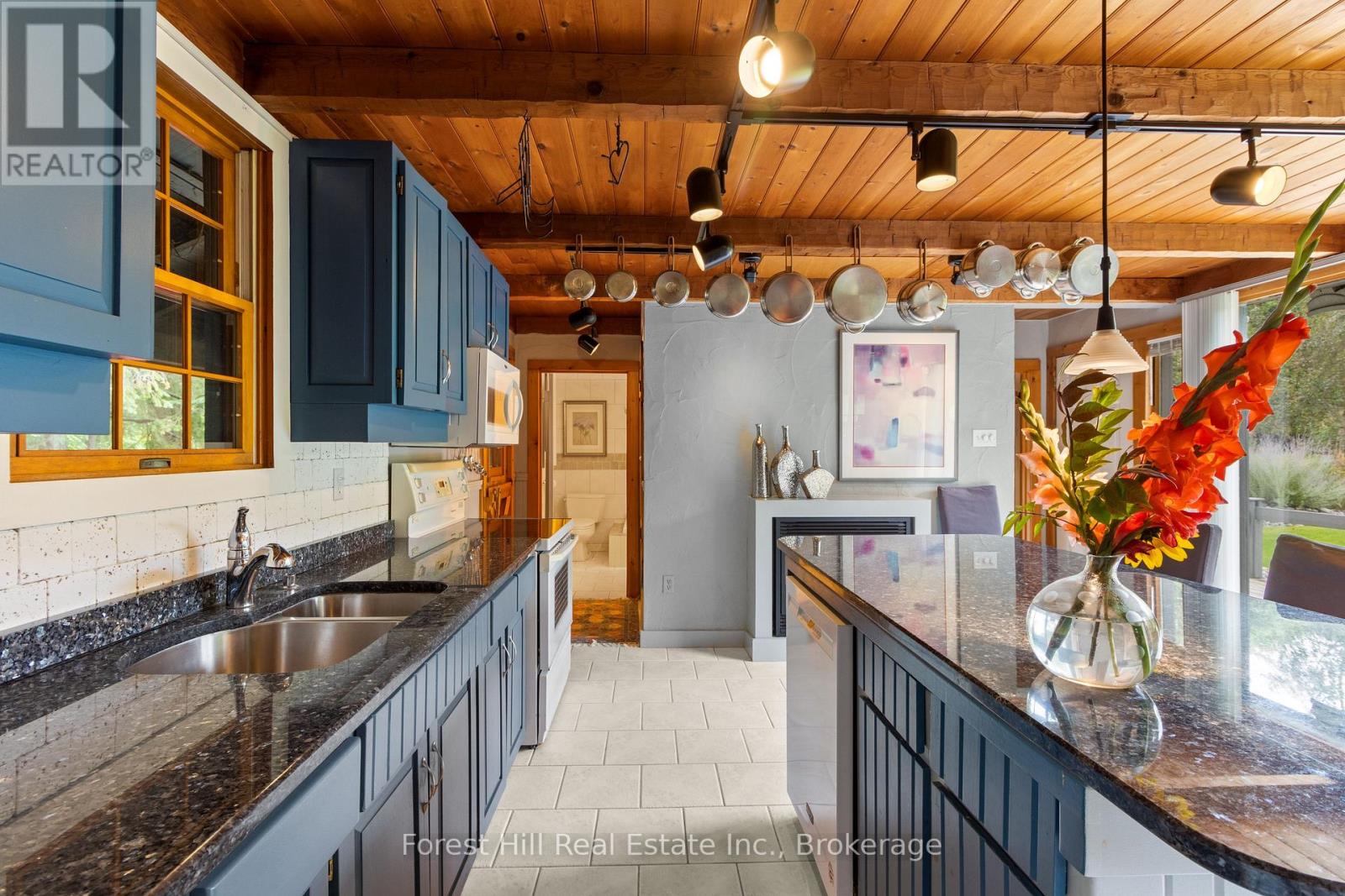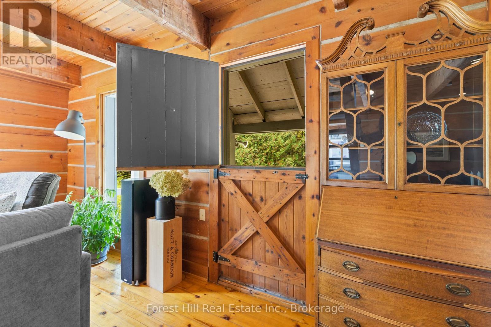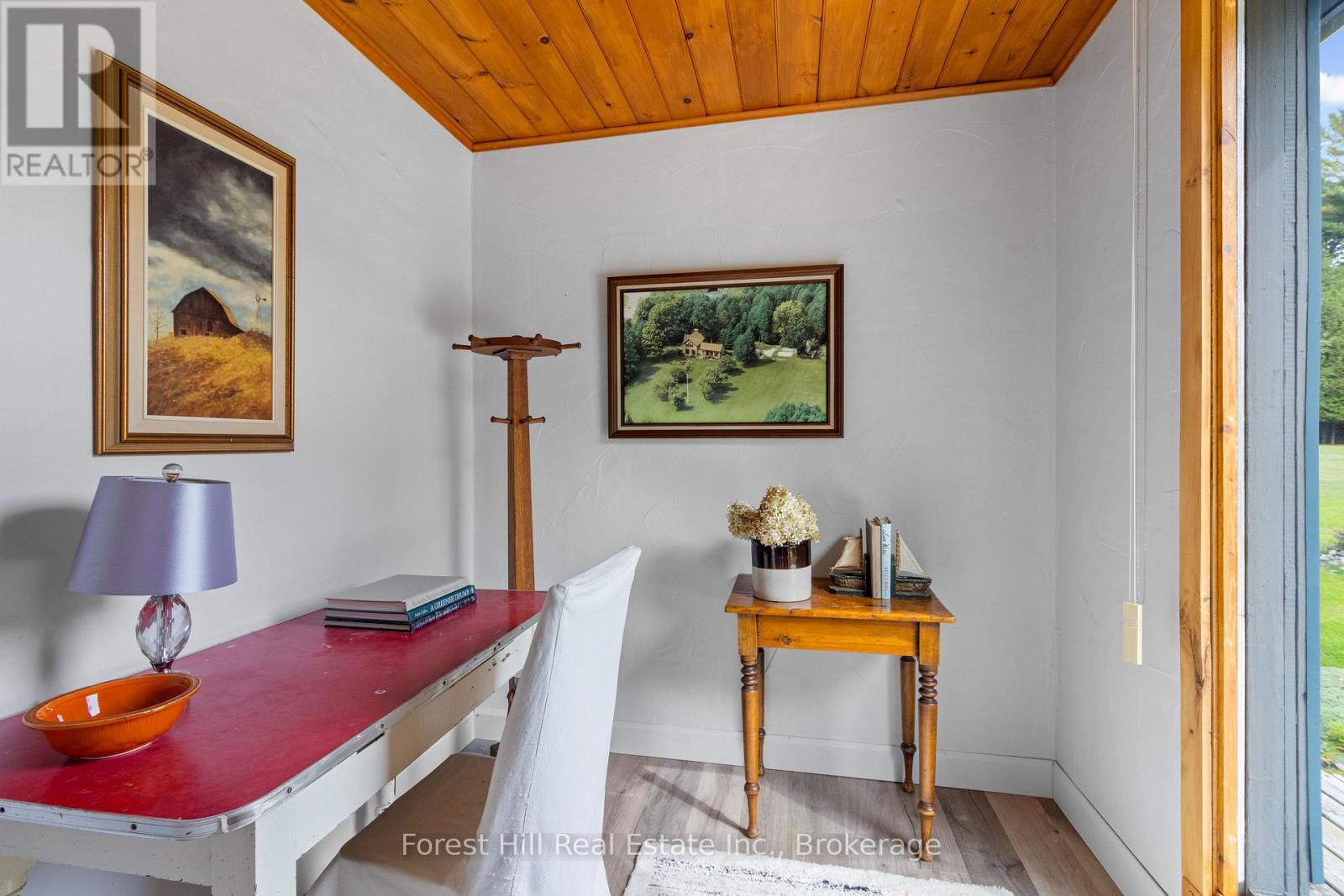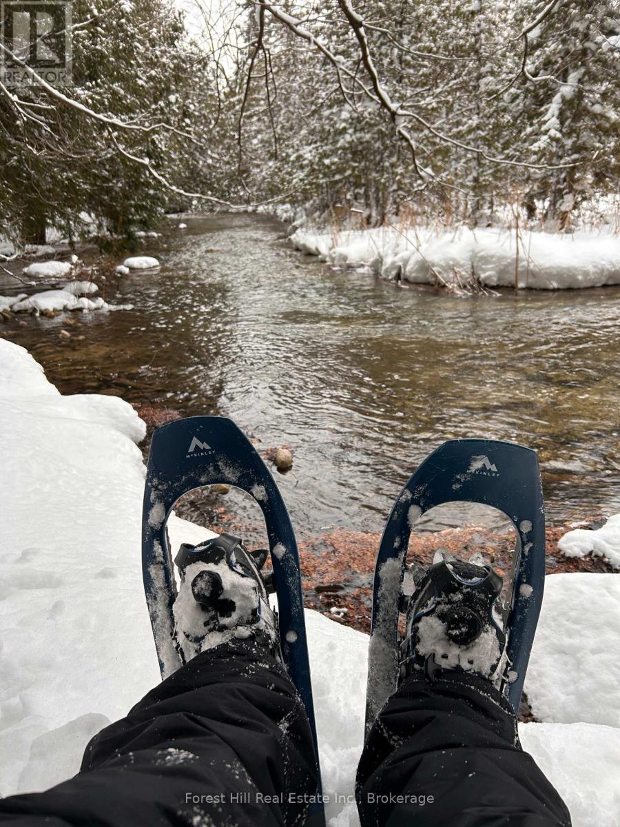 This 1890 century home sits on 23.1 acres with Bell Creek running through the property, offering a rare combination of heritage charm, privacy, and modern updates. Lovingly maintained over the years, its ready for those seeking a well-balanced country lifestyle just minutes from town. The property includes approx. 2 acres of lawn and gardens with raised flower beds, mature trees, and walking trails. Two decks overlook the gardens and woodland, providing a quiet place to relax with the sound of the creek in the background. Inside, the bright, eat-in country kitchen features an oversized island, generous windows, a fireplace and a walkout to the deck. A cozy living room and a compact office area complete the main floor. Upstairs you'll find two well-proportioned bedrooms and the lower level is clean and dry, offering a laundry area, utility room, and workbench. The detached two-car garage provides ample storage and workspace, including a heated area suitable for hobbies or small animals. Practicality extends beyond the home itself. This private setting includes acres of low maintenance woods with cleared trails and sits on a paved road and just 3 km from Durham, where you'll find shopping, schools, medical care, and recreation facilities. Four-season activities are all nearby - swimming, paddling, fishing, skiing, snowmobiling, and golf - making this an excellent base for both work and leisure. With creek frontage, usable acreage, and proximity to essential amenities, this property offers the convenience of small-town living paired with the space and privacy of a country retreat. (id:64974)