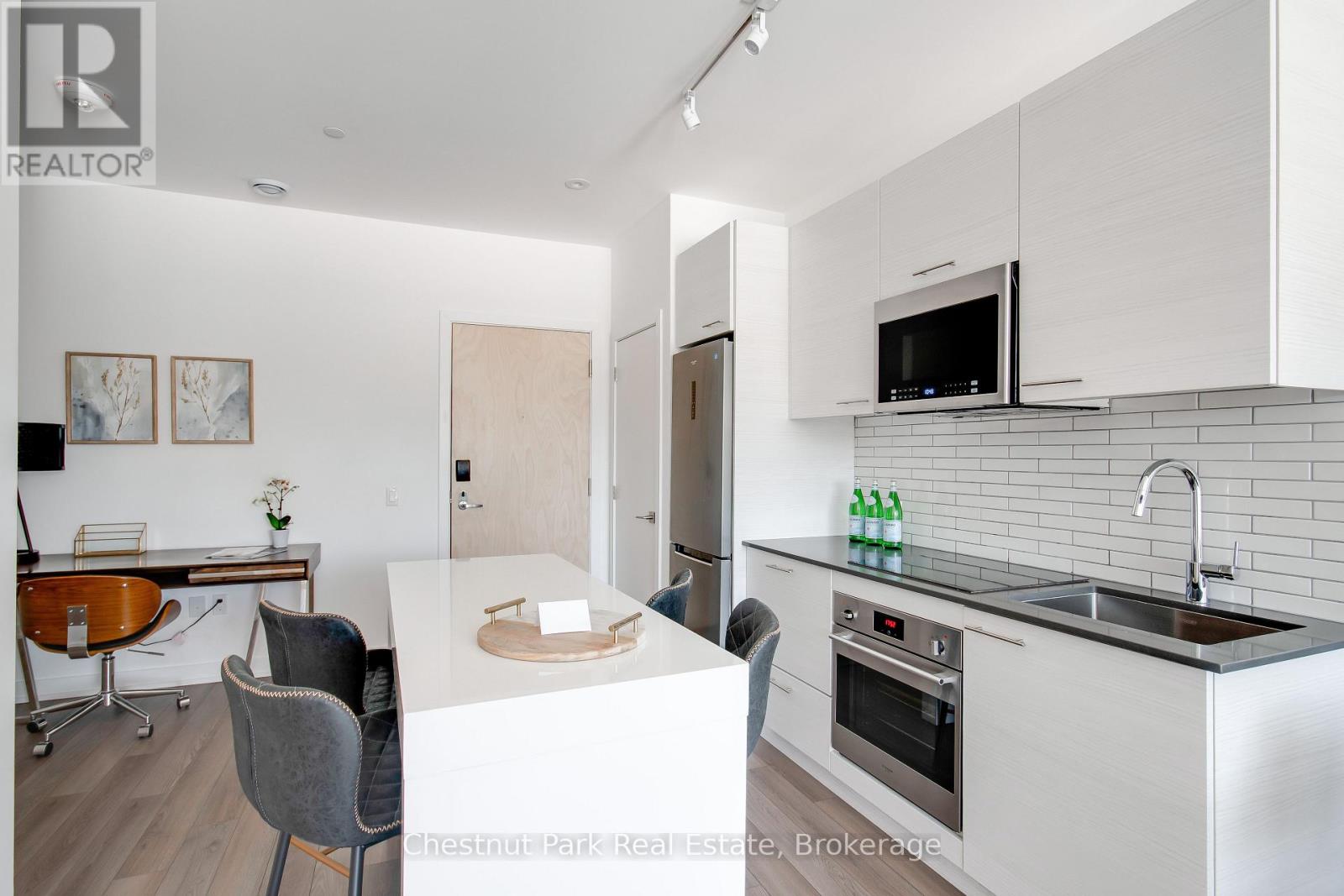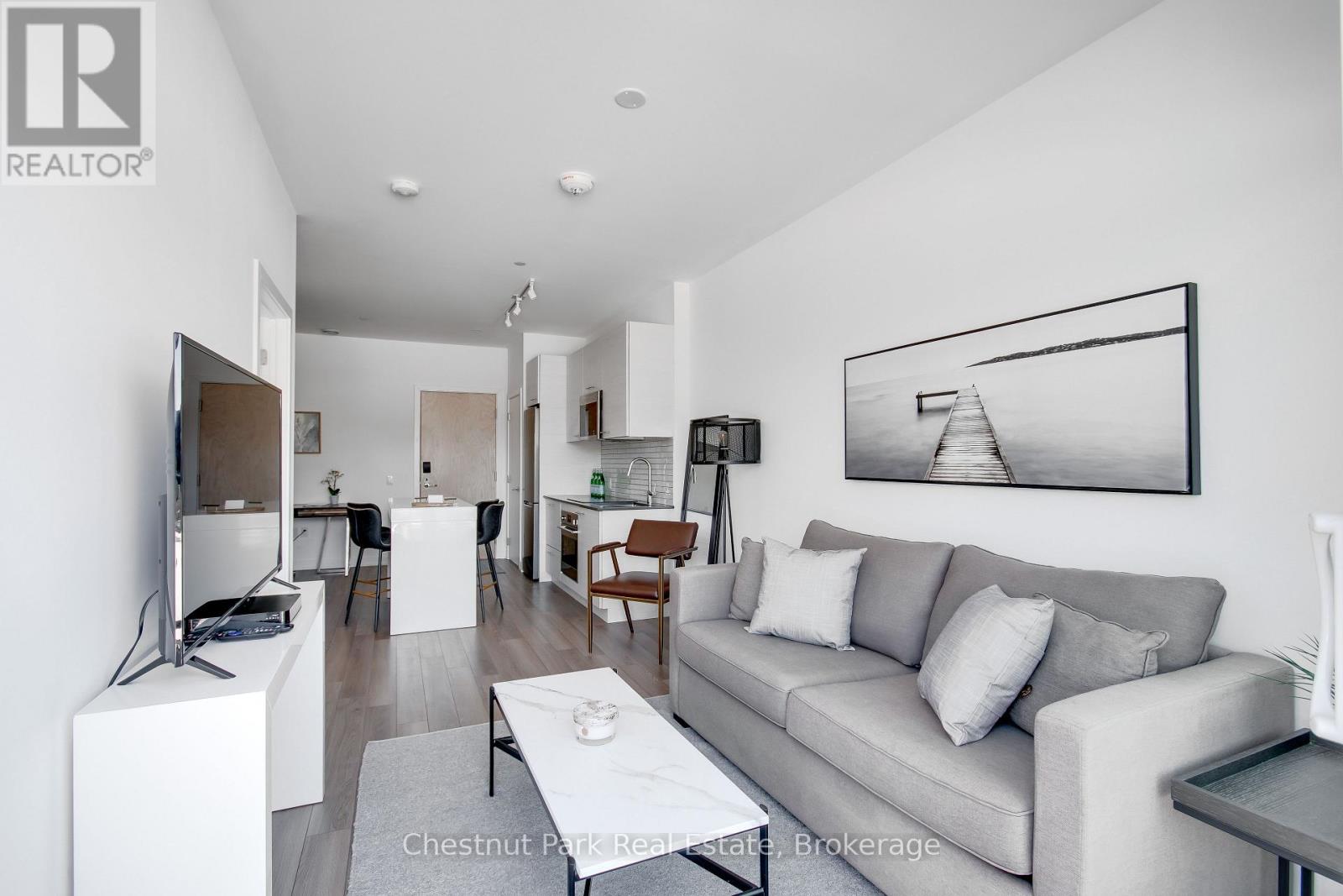 Welcome to effortless elegance at Muskoka Bay Resort, where contemporary comfort meets breathtaking natural beauty. This fully furnished 1-bedroom plus den suite is more than a condo, it's your gateway to a four-season Muskoka lifestyle with five-star amenities and exceptional investment potential. Perched on the fourth floor with unobstructed panoramic views of the 18th hole, this sun-filled, turn-key suite is designed to impress. Floor-to-ceiling windows flood the open-concept layout with natural light, while the private balcony offers a front-row seat to stunning sunsets and peaceful woodland vistas. Inside, the thoughtfully curated interior blends modern finishes with warm, inviting touches-ideal for weekend escapes or full-time living. The versatile den adds valuable flexibility as a home office, guest space, or cozy reading nook. Owners enjoy access to Muskoka Bay's award-winning amenities, including two (soon-to-be three) outdoor pools, a state-of-the-art fitness studio, Cliffside Restaurant, championship golf, winter skating, cross-country skiing, fat biking, and seasonal programming. Located just two minutes from downtown Gravenhurst, you're close to shopping, cafés, Lake Muskoka, and year-round events like the popular Wednesday Farmers' Market. Whether you're seeking a personal retreat or a high-performing income property, this condo offers both, enhanced by Muskoka Bay Resort's professionally managed rental program.BONUS: Golf or Social Membership entrance fee included with purchase. Escape. Earn. Enjoy. Live the Muskoka lifestyle seamlessly. (id:64974)