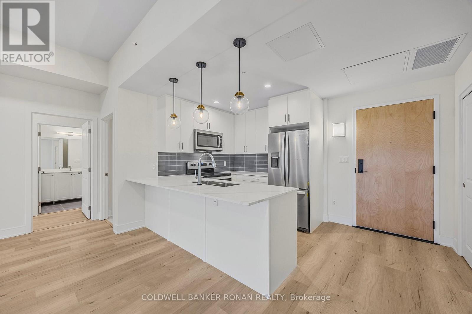 Move in ready! Welcome to Suite 404! Discover this newly built spacious condominium in the charming Village of Creemore. Experience luxury living with high end quality finishes in this stunning 1,010 sq/ft, 2 bedroom, 2 bathroom condominium. Enjoy the bright open concept layout, perfect for daily living and entertaining. This condo features a gourmet kitchen with quartz countertops, a neat in breakfast island, custom tiling throughout and 9.8 ft ceilings. The spacious master bedroom features a walk in closet and a luxurious 3 piece ensuite with a glass walk in shower. This move in ready unit offers brand new stainless steel appliances including a fridge, stove, built in dishwasher, over the range built in microwave, washer and dryer. The unit offers a walk out to your own private balcony offering spectacular scenic views of mountains and sunsets. The amenities within the building include a party/meeting room for entertaining and a fully equipped gym for all your enjoyment. The price includes one secure indoor underground heated parking space and one storage locker for your convenience. Enjoy Creemore for all that it has to offer including the stunning downtown artisan shops, restaurants, weekly farmers markets during the summer months, parks, daycares/schools, nature trails, festivals and more! Enjoy the stunning views with just a short drive to Blue Mountain and Wasaga Beach! Conveniently located just minutes west of Airport Road and only 20 minutes from Highway 89 providing easy access for commuting to the GTA. This is the perfect location minutes from Mad River Golf Club, the Bruce Trail, Devils Glen Ski Club and many more outdoor activities! This is the perfect place to explore, relax and enjoy life to it's fullest! (id:64974)