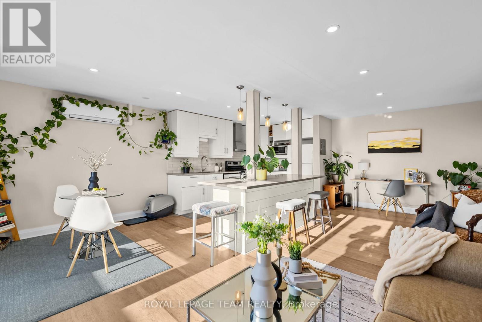 Welcome to 1505 Baseline Unit #404! This thoughtfully refreshed 2-bedroom, 1-bathroom condo offers modern finishes, functional space, and EXCEPTIONAL VALUE in one of Ottawa's most amenity-rich and well-managed buildings. The kitchen is a true highlight - featuring crisp cabinetry, a stylish backsplash, stainless steel stove and dishwasher, and sleek lighting that gives the space a clean, contemporary feel. It flows seamlessly into the open-concept living and dining area, where large windows fill the home with natural light and lead to your private balcony - with south west exposure its the perfect place to unwind and take in evening sunsets! Both bedrooms are generously sized and finished with engineered hardwood flooring, offering comfort and practicality. The updated 3-piece bathroom complements the home's modern aesthetic, while the smart layout makes everyday living effortless. Condo fees INCLUDE heat, hydro, water, building insurance, underground parking, and a storage locker - a rare all-inclusive package that simplifies your monthly expenses. Residents enjoy RESORT-STYLE AMENITIES including an indoor pool, outdoor pool, sauna, fitness centre, party room, library, workshop, car wash bay, and beautifully maintained grounds! Shared laundry facilities located in the basement. Ideally located close to transit, shopping, restaurants, parks, and just minutes to Algonquin College and Highway 417. Upgrades completed in March 2022 include: new flooring throughout the main living areas, engineered hardwood in both bedrooms, new kitchen cabinetry, new backsplash, new shower tile, new pot lights, and updated light fixtures. Upgraded wall-mounted ductless heating & cooling system (mini-split). Electrical panel also upgraded to 100 amps. Move-in ready and perfectly positioned to enjoy both convenience and comfort! (id:64974)