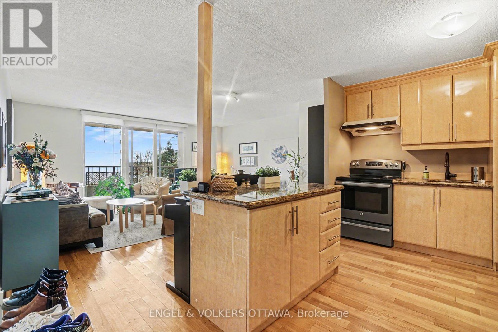 Welcome to this renovated, southwest facing, and ALL INCLUSIVE 1 bedroom unit available for July 1st! The open concept kitchen offers tons of cabinetry and a large island with granite countertops. Hardwood floors throughout the living and bedroom. The full bathroom is renovated with ceramic tiles, jack and jill vanity and an updated bath. The foyer and spacious bedroom have wall-to-wall cabinets to maximize storage space. The buildings list of amenities includes an indoor pool, sauna, gym, billiard/games room, bike storage, party room, fenced dog run, outdoor BBQ area with picnic tables, workshop, library, tennis courts, convenience store & a guest suite. Your underground parking spot & storage locker are conveniently near the elevators. Located close to CHEO, Riverside and General Hospital, across the street from Smyth transit station and a 5 minute walk to the Rideau River Pathway! (id:64974)