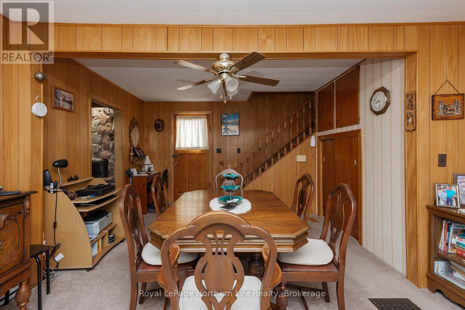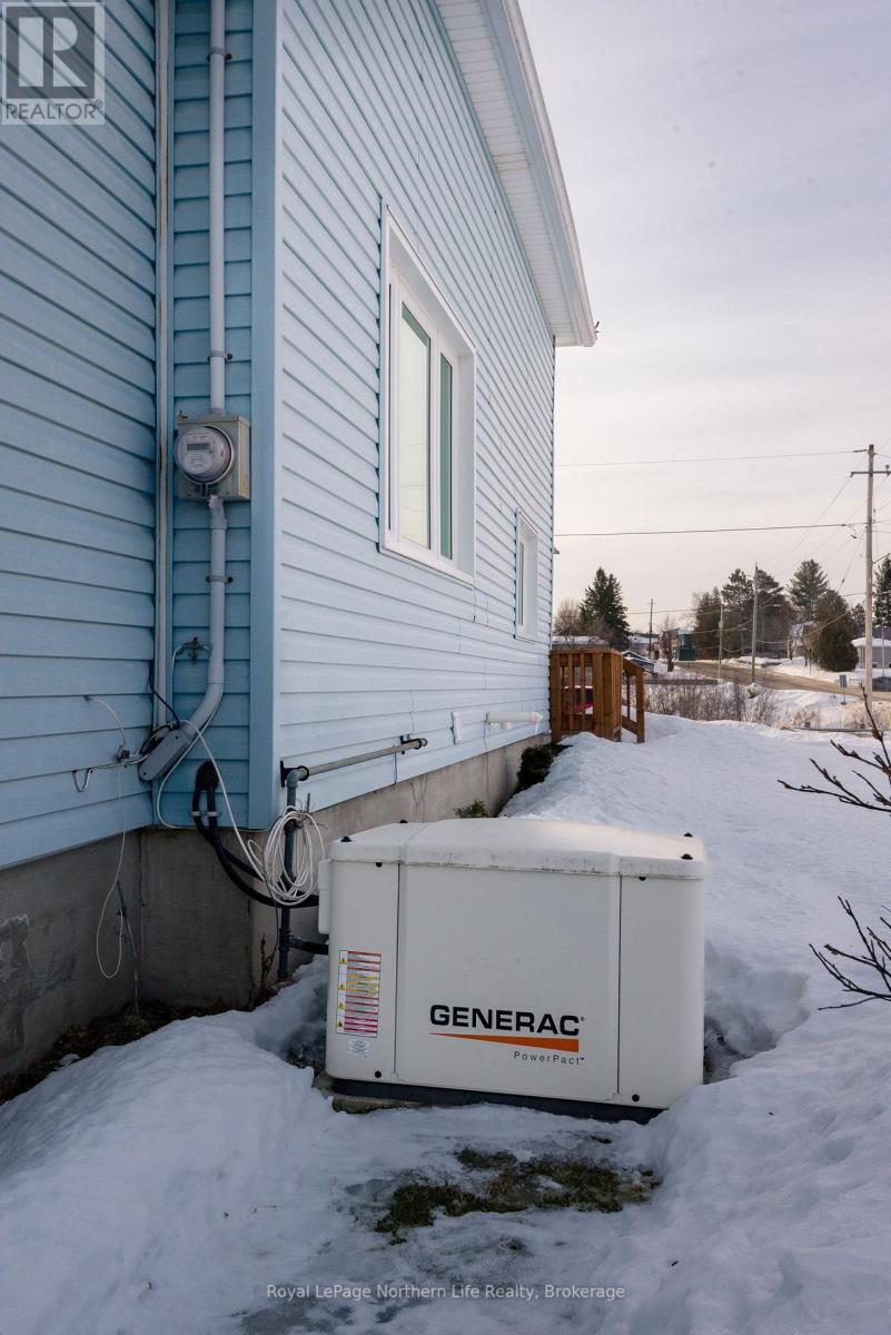 404 Main Street, Powassan, walking distance to town you will find a well-appointed 1497 sq ft three-bedroom, two-bathroom home situated on a generous corner lot and includes a detached double car garage. The front entrance leads to the primary bedroom, which features a three-piece bathroom with a walk-in shower. The home offers a large eat-in kitchen with direct access to the backyard patio, a step-up to a sizable dining area, and a separate family room highlighted by a striking stone wall and an updated gas fireplace. Upstairs comprises two additional bedrooms and a four-piece bathroom. The lower level includes a substantial furnace/laundry room, another expansive family room with a stone fireplace as well as a crawl space providing ample storage. Notable updates include a metal roof (2016), owned hot water tank (2020), furnace (2009), air conditioning unit (2014), windows (2007), and Generac generator (2025). This property offers an excellent opportunity for customization and personalisation. (id:64974)