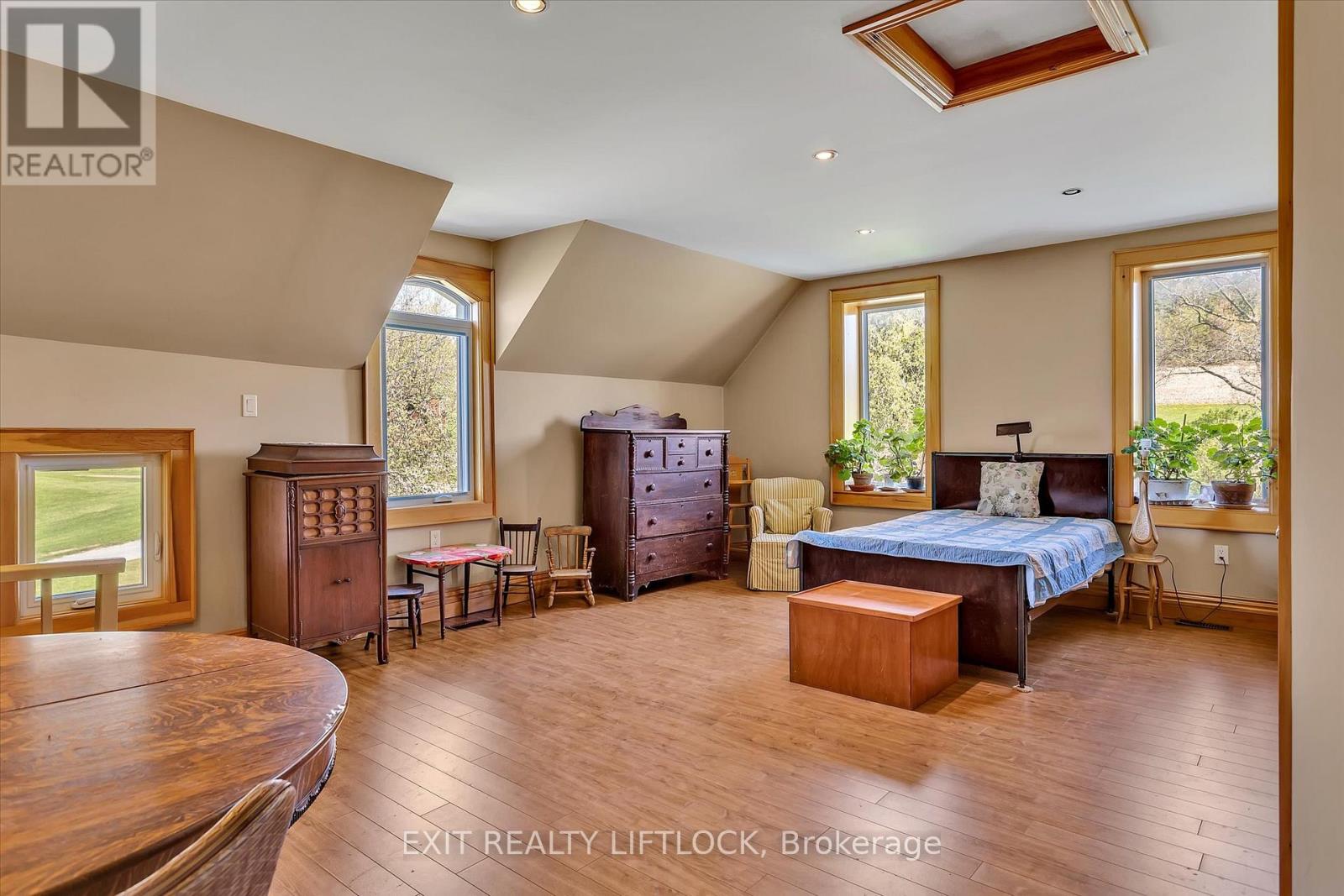 "Own Your Own Private Estate" Cavan area 209+ Acre estate type property nestled on sheltered hillside. Property consists of fertile farmland, maple bush and wetlands. Spectacular setting and views, private driveway. Outbuildings are in very good condition and lend themselves well to livestock or storage. Home is 1 3/4 storey brick, built in the 1900s, upgrades over the years include; steel roof, newer windows, doors and walkways. Impressive front entrance foyer has extra height and circular staircase in incredible condition. Original trim and floors throughout the house, from its bay windows in the living room and original dining room to the 2nd staircase off the kitchen, which leads to an upper bedroom. Well designed for country living, attached woodshed and covered walkway to garage, as well as plenty of storage and deck on which to BBQ, enjoy the birds and wildlife. Good schools, easy access to #115 or #7 Hwy. Truly a hidden treasure in the rolling picturesque Cavan hills! (id:64974)