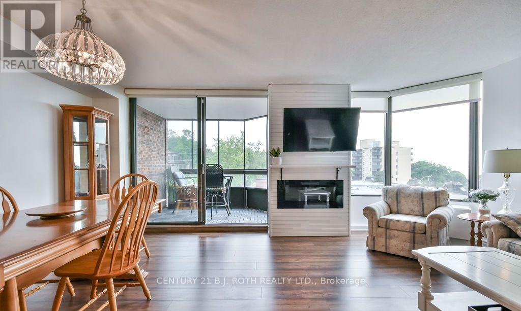 Welcome to one of Barrie's best kept secrets! This 2-bedroom, 2-bath condo is a true gem, offering a bright, modern space with 1200 sq ft of beautifully updated living area. Enjoy tranquil views of Kempenfelt Bay from your private covered balcony!. The Bay Club is perfect for those looking for a serene and active lifestyle all in one place. The building offers fantastic amenities including a swimming pool, hot tub, saunas, fitness center, tennis and pickleball courts, billiards, a library, table tennis, work shop and more. There's something for everyone! The open-concept living and dining area flows seamlessly into the screened-in balcony, creating the perfect space for entertaining. Newly updated floors, stylish ship-lap wall with built-in electric fireplace, and a 2025 refresh make this condo feel brand new. Modern cabinetry, a chic tile backsplash, built-in microwave, and sleek finishes make cooking a pleasure. Plus, in-suite laundry for added convenience. Spacious primary bedroom with a private 3-piece ensuite featuring a walk-in shower and contemporary updates. Plus, the main bathroom is equally impressive with its fresh, modern vanity. Enjoy the convenience of all-inclusive fees covering water, Rogers cable, internet, and more, so you can focus on enjoying your lifestyle. This unit includes a designated parking space (R2/Space #59) and a storage locker (#6), ensuring your belongings are well-organized and easily accessible. Just steps from the beach, scenic walking trails, vibrant downtown shops, and the marina, this condo is ideal for those who enjoy an active, lakeside lifestyle. The building is well-maintained, peaceful, and pet-friendly (with restrictions). The friendly social committee organizes regular events and activities, creating a strong sense of community. Move in before the snow fly's! (id:64974)