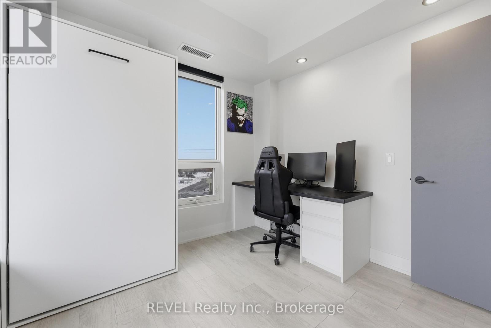 Welcome to The Branch Condos at 2450 Old Bronte Road in desirable Oakville. This sophisticated & modern condo building exudes luxury, featuring stunning amenities and the latest keyless entry/access technology. Make yourself at home in this elevated 2 bedroom + 2 bathroom unit, boasting an upgraded kitchen with island and additional storage, primary bedroom with built-in storage and 3 piece ensuite bathroom, a spacious second bedroom with built-in Murphy bed, and custom window coverings throughout. Ideally situated just south of Dundas St W east of Bronte Rd, it is conveniently located near highways, restaurants, schools and parks. The state of the art building amenities include a fitness centre, indoor pool with steam room, yoga studio, pet grooming station, indoor/outdoor kitchen/partyroom, outdoor bbq's, mezzanine lounging area with pool table, and guest suites. This unit expertly blends stylish living with modern, user-friendly technology and convenience, perfect for todays young professionals. 1 underground parking and 1 locker included. (id:64974)