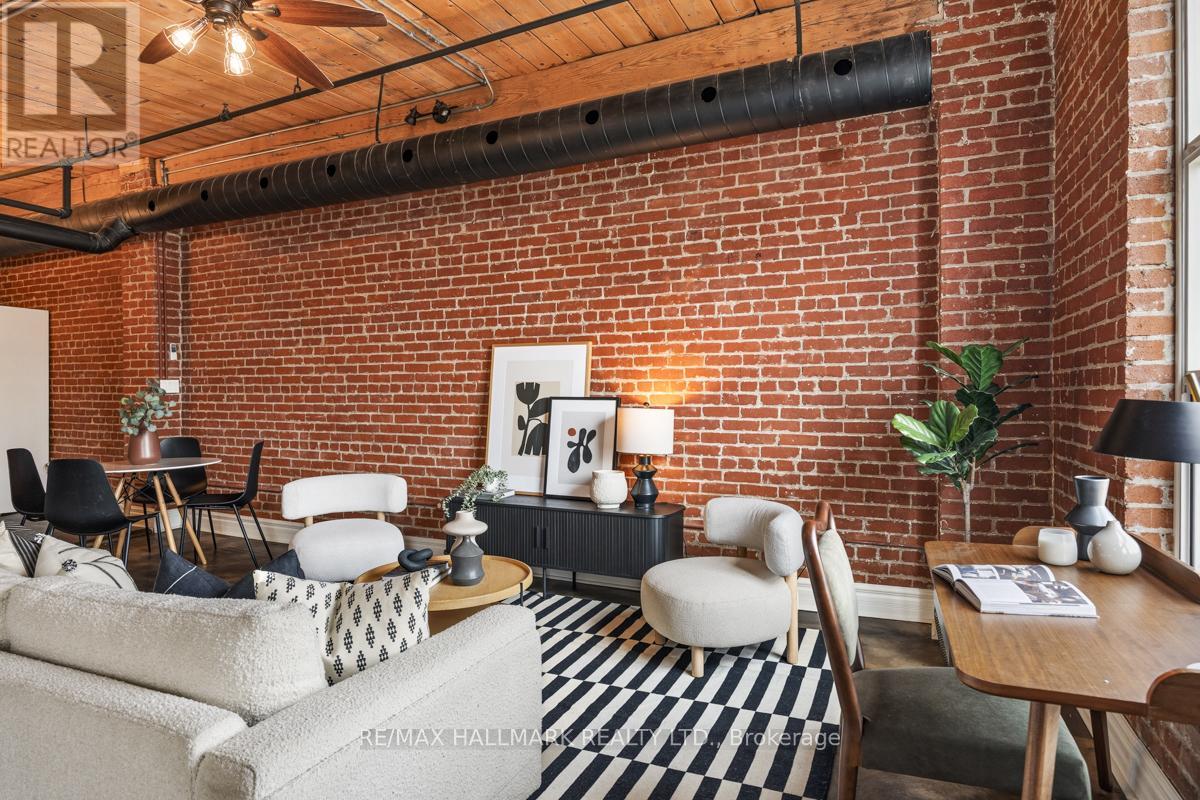 Step into a true Urban Masterpiece that delivers the kind of Character, Volume & Atmosphere rarely found. This is not your ordinary; this a statement Loft! Every inch of this space celebrates Industrial Artistry. Polished concrete floors are like art in themselves, exposed Brick brings texture & history and the open Ductwork & soaring Wood Ceilings amplify the lofts dramatic scale and architectural authenticity. Open area Entertainment space to accommodate furniture pieces & uses of all shapes & sizes. With generous square footage, volume & an open space this loft adapts to your lifestyle- Kitchen with Large Island for the Kitchen parties, not just One but Two Bedrooms or more than two ways to use those rooms, tons of storage and closet space. This loft is located in one of Toronto's most dynamic & walkable pockets. Stroll to: The Financial District, Corktown's Cafes & Restos, over the bridge to Riverside District & Leslieville, Renowned Art & Cultural Hubs, Shopping & Boutiques, Parks, Dog Parks & Rec Centres along with lots of other 'greenspaces'. It is hard to describe the real feeling: not just that the space in square footage is large, but that it gives you air & loft to breathe bigger, think wider & taller and provides that sense that you have arrived! (id:64974)