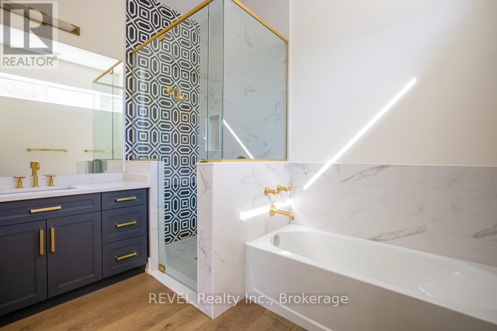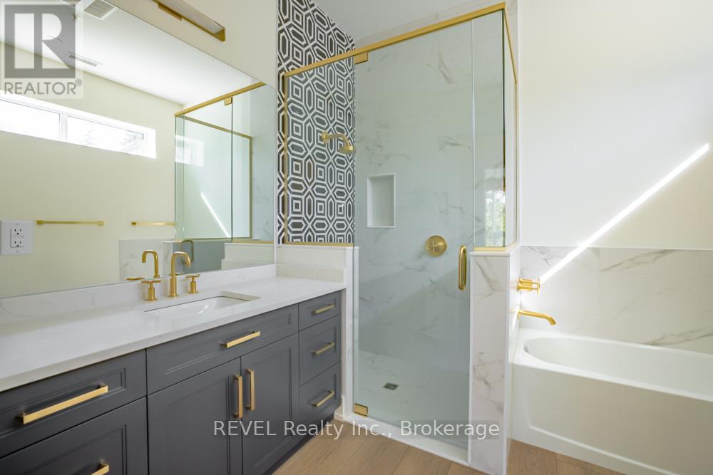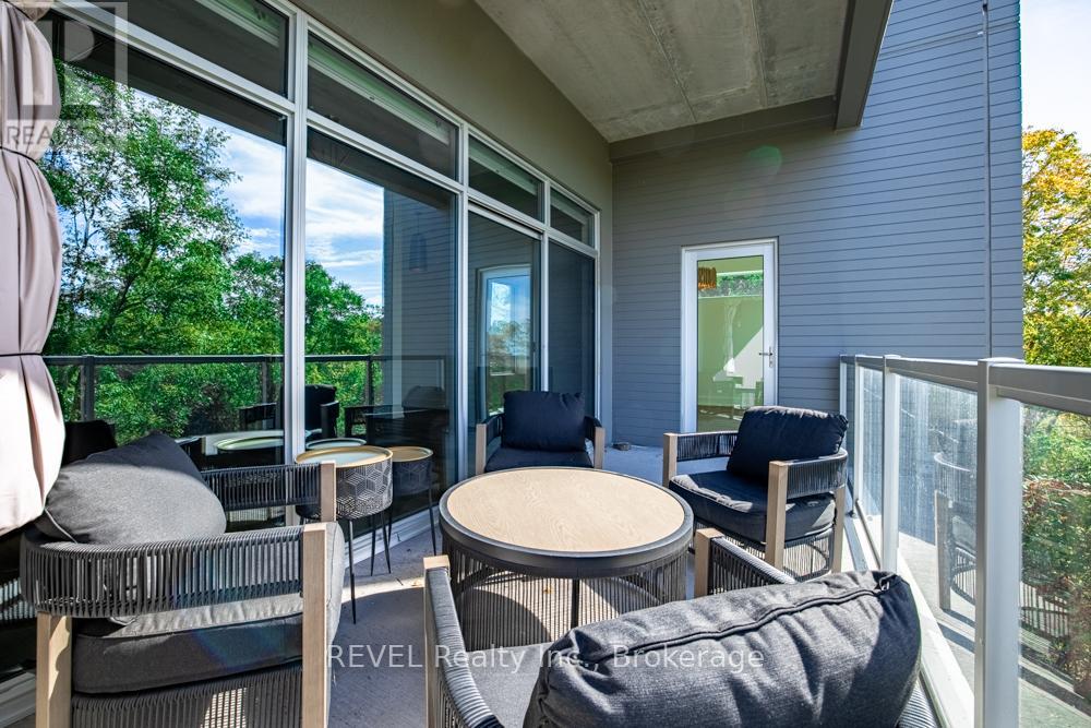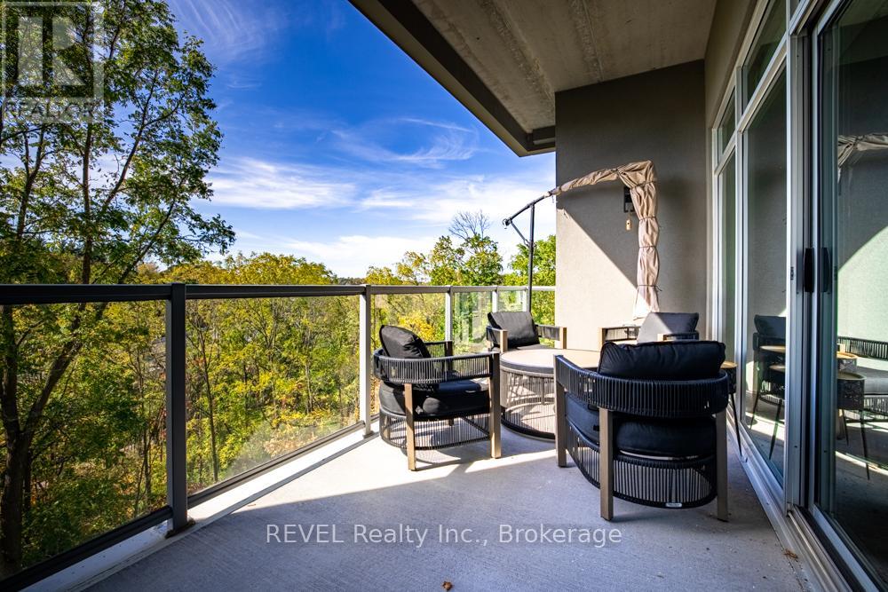 Welcome to 77 Yates-Niagara's boutique address where sleek, contemporary design meets the charm & character of historic Yates Street. This limited-collection, 37-residence building rises just six storeys atop the 12-Mile Creek valley, offering a rare combination of privacy, nature and walkable downtown living. From here you're minutes to the FirstOntario Performing Arts Centre, the Meridian Centre, Ridley College, Montebello Park and the Farmers' Market - plus theatres, cafés, restaurants. Also, just a short drive to world-class wineries, golfing, shopping centres, around the corner from the Hospital, and not far from the US border...etc. Suite 405 is a spacious and undeniably stylish 2 bedroom & 3 bathroom luxury suite providing exceptionally airy ceiling heights and wall-to-wall windows that draw in natural light and frame tranquil treetop/valley neighbourhood vistas. The chef's kitchen anchors the home with refined cabinetry and an entertainer's island flowing into open living/dining-ideal for intimate dinners or weekend gatherings. A peaceful primary retreat features a spa-style ensuite, walk in closet, treetop views, and private access to the spacious outdoor terrace. A versatile second bedroom/den with another private ensuite and walk in closet supports enviable work-from-home set ups, family living, or overnight guests. A full in-suite laundry room with ample storage space keeps life simple and organized. Life at "Club 77" includes thoughtfully curated amenities-fitness studio, party/meeting lounge, rooftop/garden and community BBQs-plus elevator access, visitor parking and on-site storage. Your new home includes a parking space & large storage locker. The convenience of location is further amplified with effortless connection to the QEW/406 for commuting or weekend escapes. (id:64974)