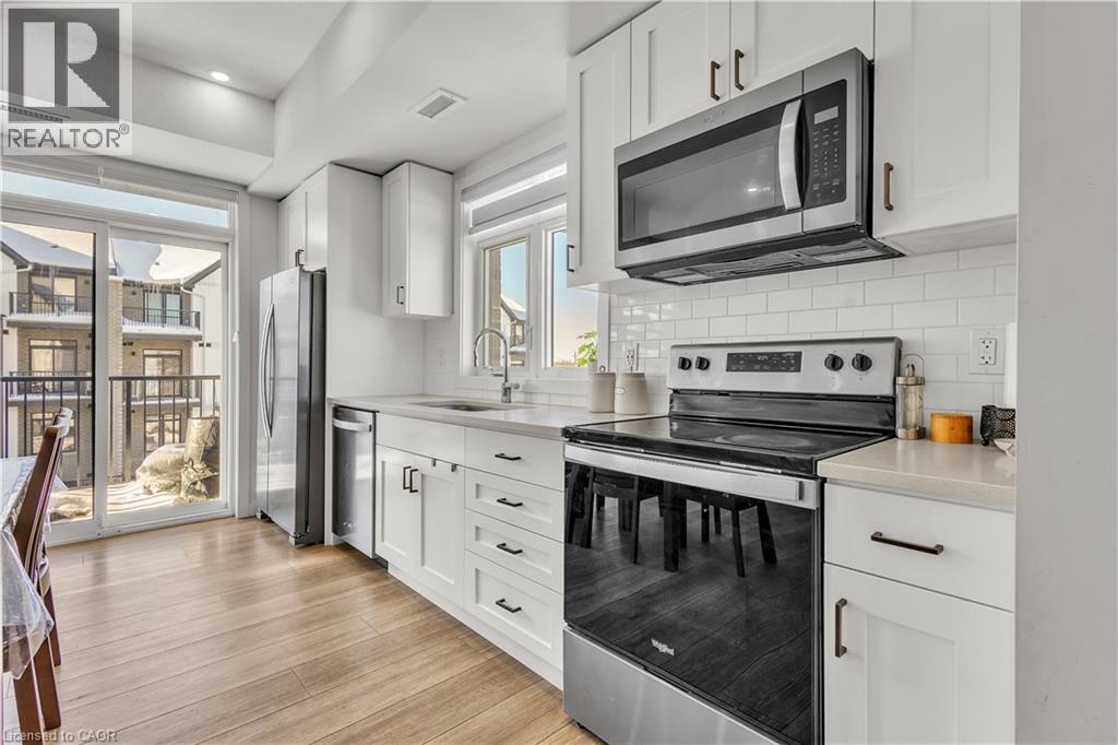 Welcome to The Birches in East Galt, a modern community by Granite Homes. This front two-storey, stackable townhome features 9-foot ceilings that enhance natural light and create a bright, comfortable living environment. The inviting layout offers a stylish kitchen with combined living/dining space, 2 bedrooms, 2 bathrooms, and 2 private balconies, blending contemporary design with everyday convenience. Ideally located in Cambridge’s rapidly growing south end, this home is located close to existing schools, shopping and the exciting new community hub, upcoming in 2026 Cambridge's Recreation Complex will include a 10-lane, 25m swimming pool, warm-water leisure pool, three FIBA gymnasiums, a running/walking track, fitness area, multi-purpose rooms, concession, and a new Cambridge Public Library branch surrounded by park amenities. A new collaborative public/catholic elementary school with childcare facilities A future joint-use campus will provide educational, recreational, and cultural opportunities for all ages, This is a unique opportunity to live in a vibrant neighbourhood where modern living meets exceptional amenities. (id:64974)