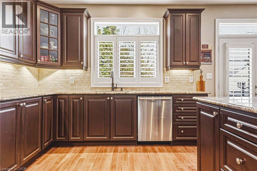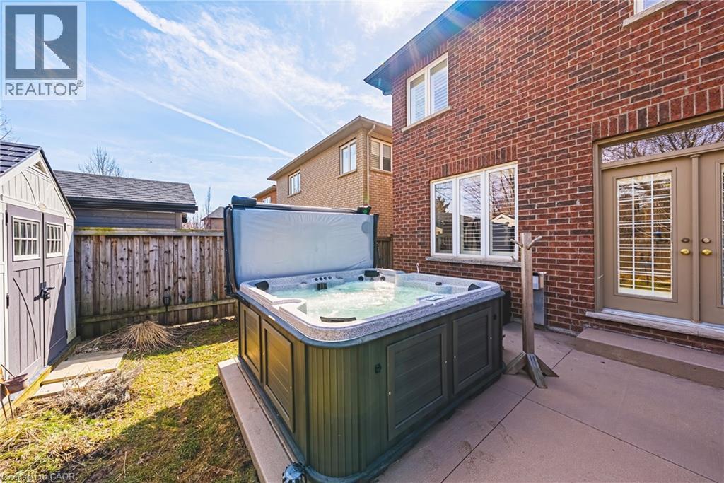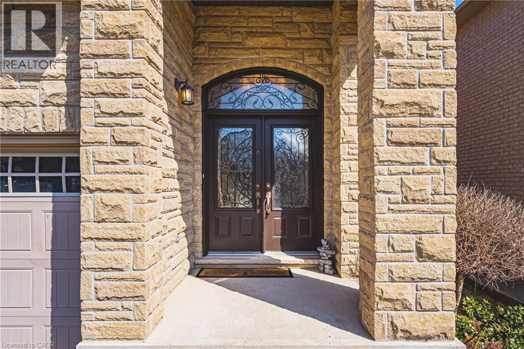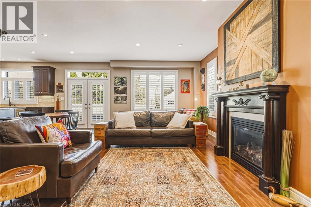 This stunning 4+1 bedroom executive home in the highly sought-after Parkview Heights community is sure to impress. Built by DeSantis Homes, this unique, customized floor plan offers over 4000 sq ft of living space designed for family living. The spacious Great Room features a gas fireplace with a beautiful antique mantle and has been expanded to create a warm, inviting space. A main floor office adds convenience, while upgraded rear windows and French doors lead to a landscaped backyard with gas BBQ hookup and an Arctic Spa saltwater hot tub. The gourmet kitchen is a chef’s dream with upgraded cabinetry, granite countertops, and a large island. Premium appliances include a 6-burner Wolf gas cooktop, built-in oven and microwave, French door fridge with water line and ice maker, and built-in dishwasher. Entertain in the formal dining room with coffered ceiling. The home features tasteful décor, a custom staircase, ceramic tile in foyer and mudroom with garage access, and dark engineered hardwood on the main level and upper hall. Bedrooms feature new carpeting. California shutters throughout add elegance. Upstairs, the primary suite boasts a luxurious 5-piece ensuite and walk-in closet. There are 3 additional bedrooms, a 4-piece bath, and a second-floor laundry room. The finished basement offers extra living space with a 4-piece bath, gas fireplace, and an additional bedroom or office. Upgrades include pot lights, foundation wrap, and a backflow valve. Situated on a premium lot backing onto a scenic walking path, this home offers privacy and tranquility. Beautiful curb appeal. Professionally landscaped. New furnace ’21. Easy highway access. Close to amenities, schools, parks, and trails. Room sizes approx. (id:64974)