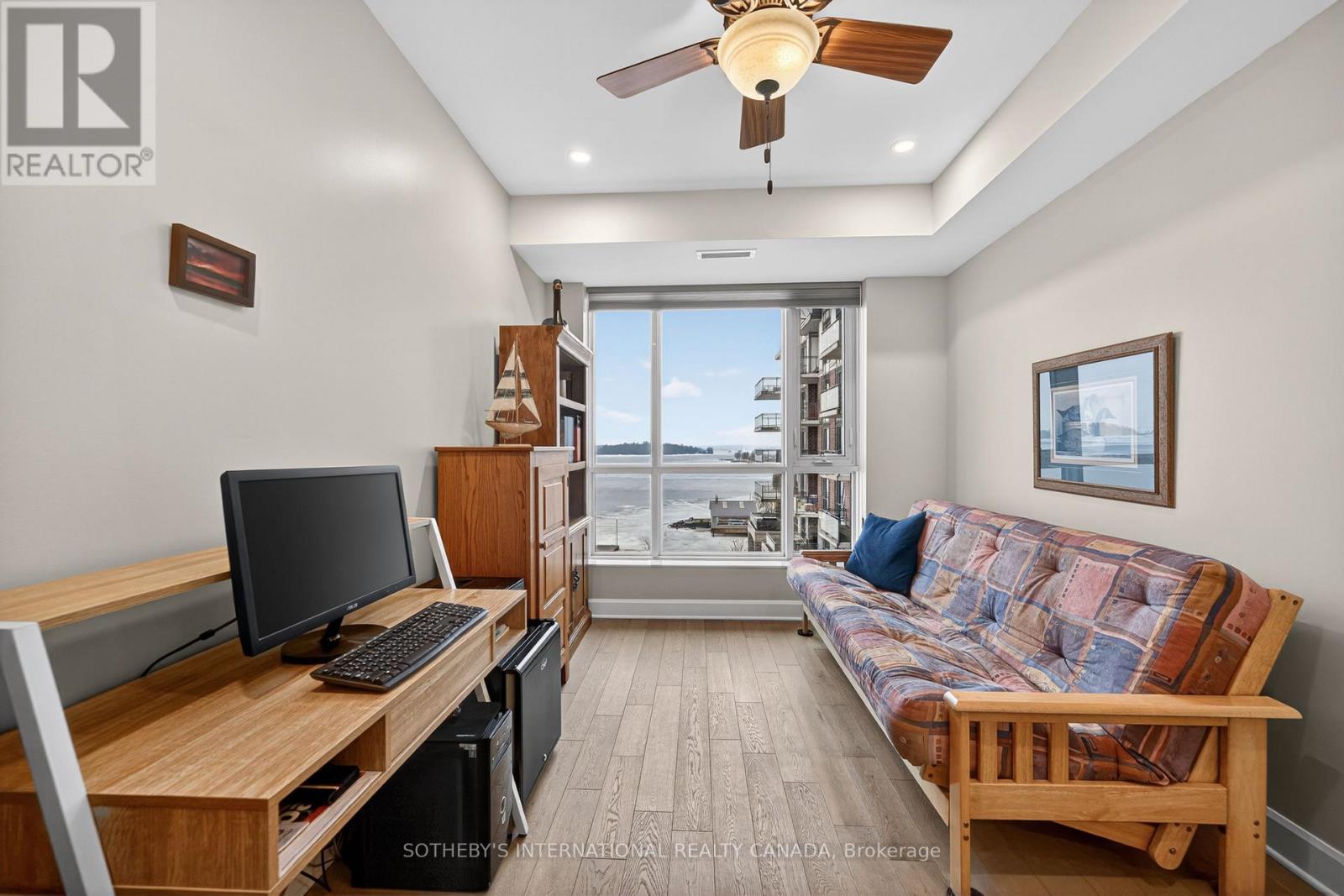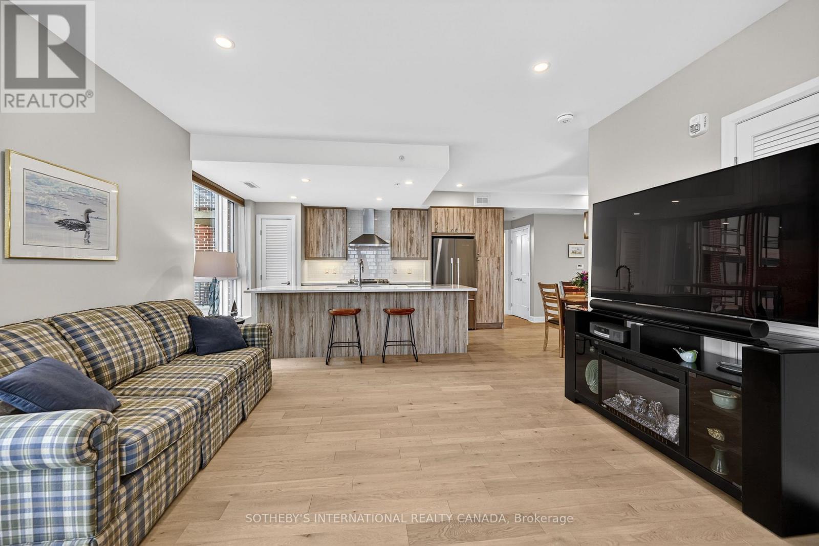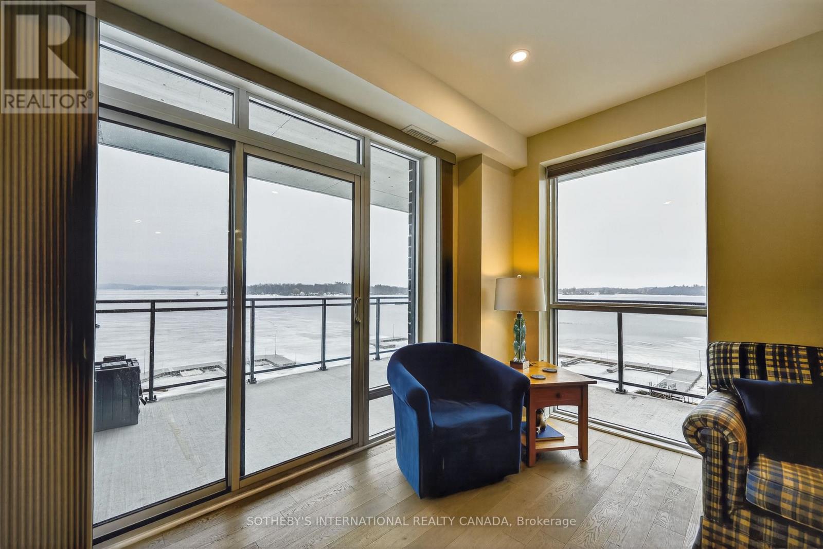 Take note of this luxury Thousand Islands Waterfront 2 bedroom 2 bathroom Condominium available with flexible possession. Imagine spending the summer by the river with marina access and within walking distance of everything you need to enjoy the beauty and charm of this unique area. Your condo features hardwood and ceramic floors, a chef's dream kitchen with an extended island and added cupboard space, in-suite laundry, an ensuite bathroom with heated floors and most importantly, a panoramic view of the St. Lawrence River with a wraparound balcony to fully enjoy it. Click through the photos or take the tour to see how the outdoors pours into all the bright, airy spaces. Temporary rain keeping you indoors? Slip downstairs to the common room for a game of pool or some social interaction, hit the high-end gym/workout space or simply watch the clouds roll by from your floor to ceiling windows. Walk to the Thousand Islands Playhouse, restaurants and all the cultural panache Gananoque has to offer. Your storage locker is just down the hall for easy access. The perfect setup for years of enjoyment is waiting for you. Book a showing today. (id:64974)