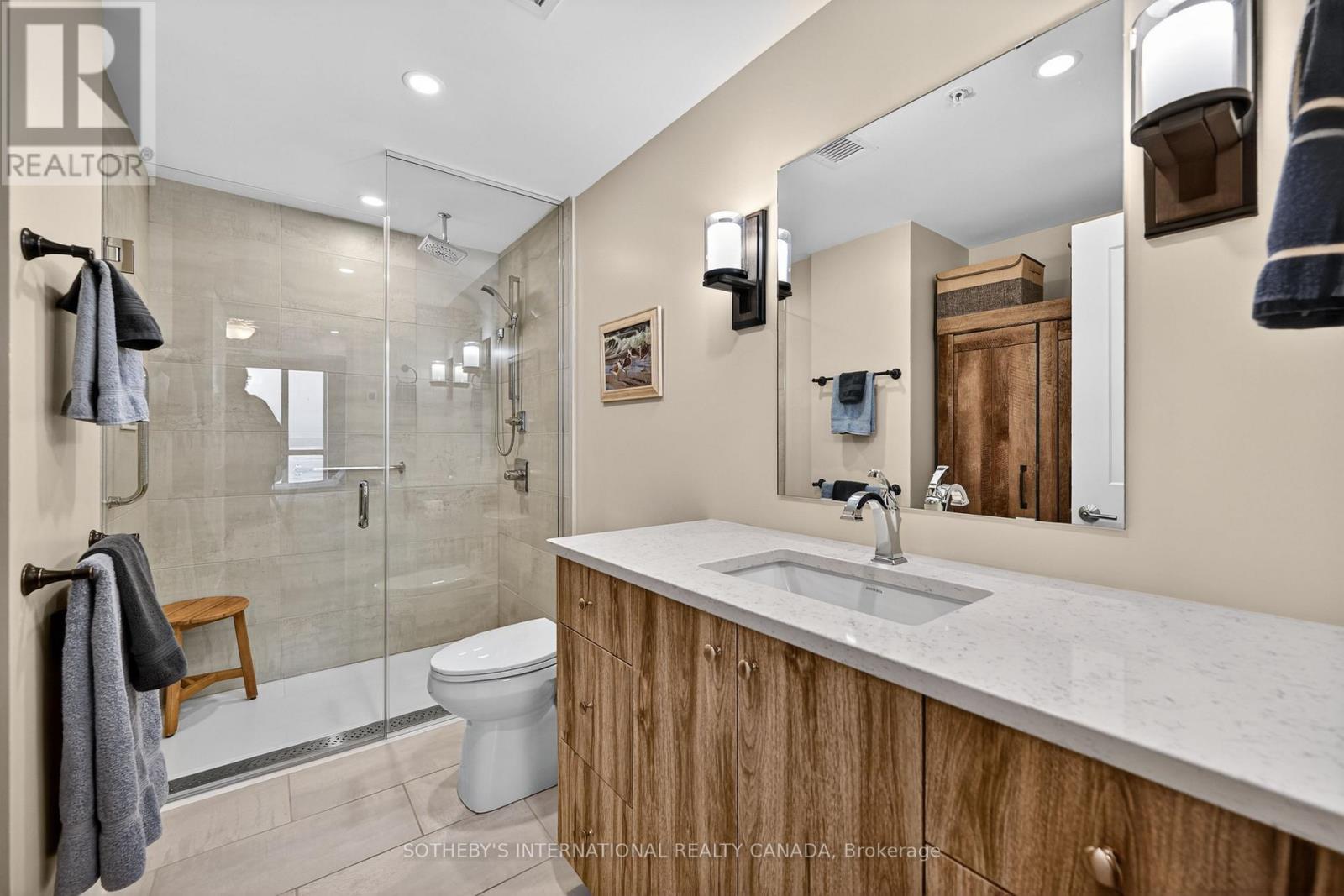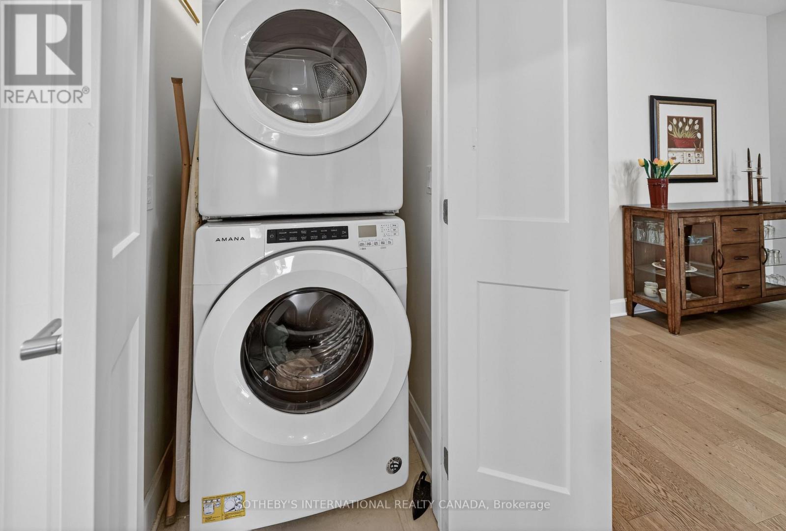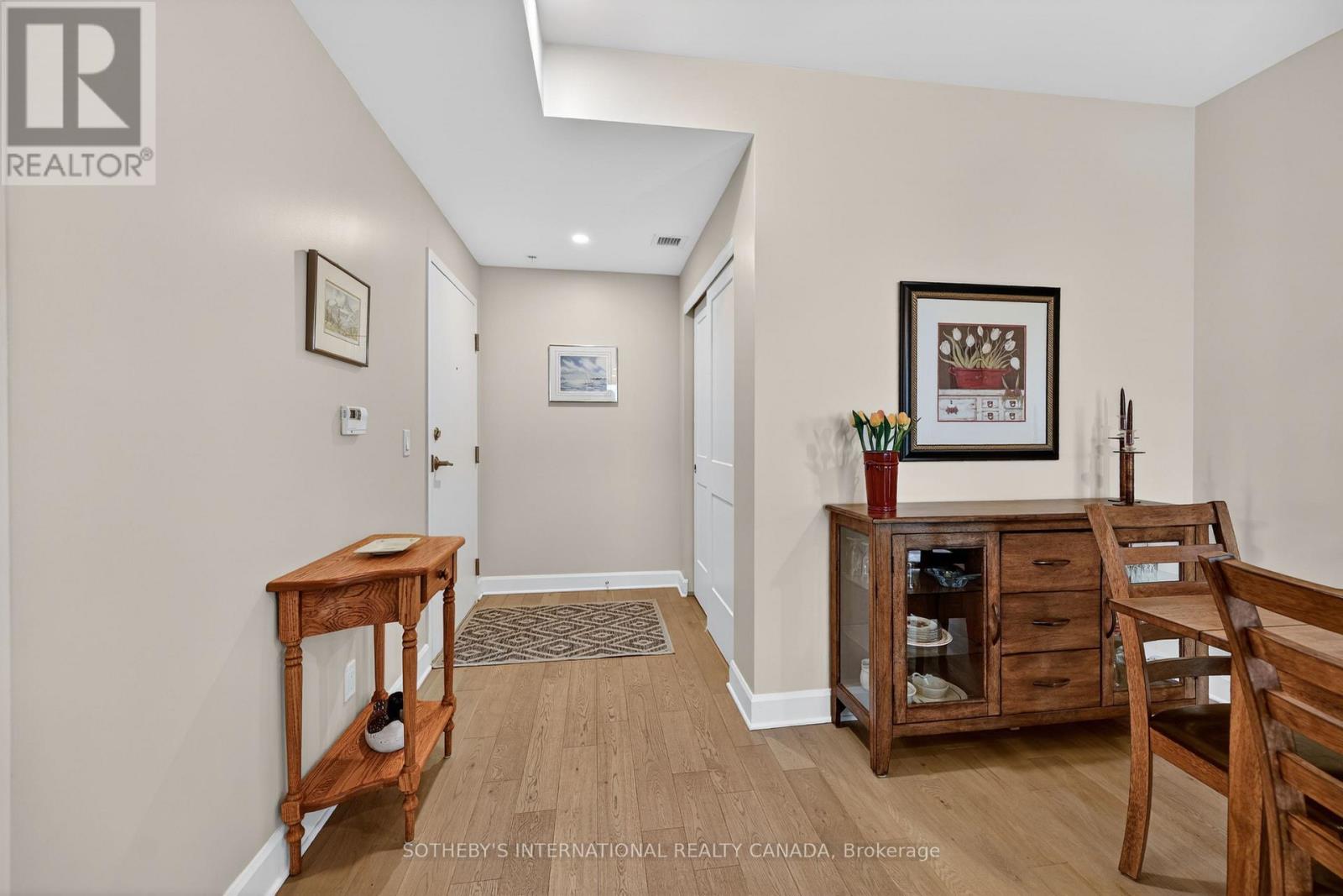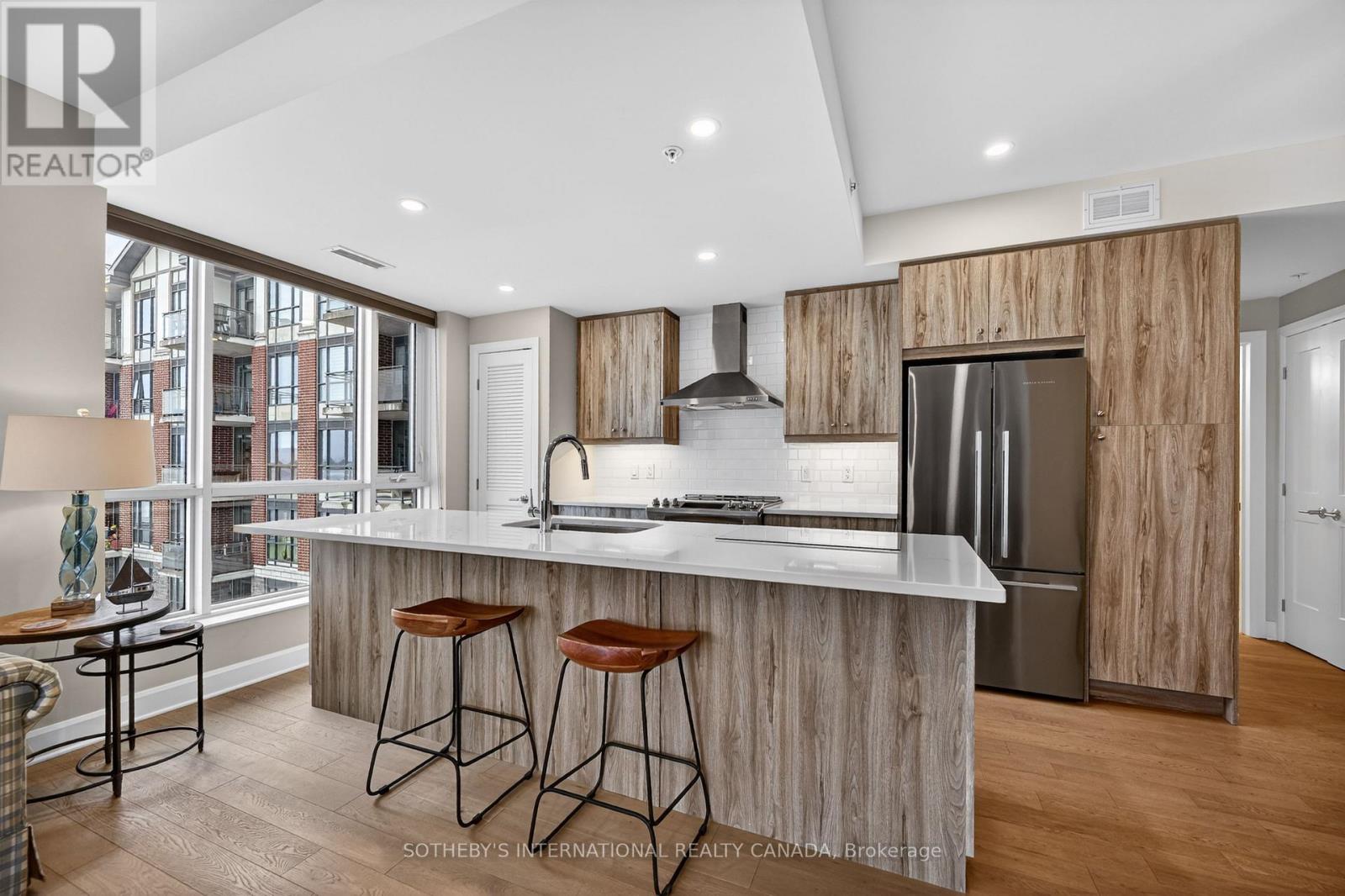 Take note of this luxury Thousand Islands Waterfront 2 bedroom 2 bathroom Condominium available with flexible possession. Imagine spending the summer by the river with marina access and within walking distance of everything you need to enjoy the beauty and charm of this unique area. Your condo features hardwood and ceramic floors, a chef's dream kitchen with an extended island and added cupboard space, in-suite laundry, an ensuite bathroom with heated floors and most importantly, a panoramic view of the St. Lawrence River with a wraparound balcony to fully enjoy it. Click through the photos or take the tour to see how the outdoors pours into all the bright, airy spaces. Temporary rain keeping you indoors? Slip downstairs to the common room for a game of pool or some social interaction, hit the high-end gym/workout space or simply watch the clouds roll by from your floor to ceiling windows. Walk to the Thousand Islands Playhouse, restaurants and all the cultural panache Gananoque has to offer. Your storage locker is just down the hall for easy access. The perfect setup for years of enjoyment is waiting for you. Book a showing today. (id:64974)