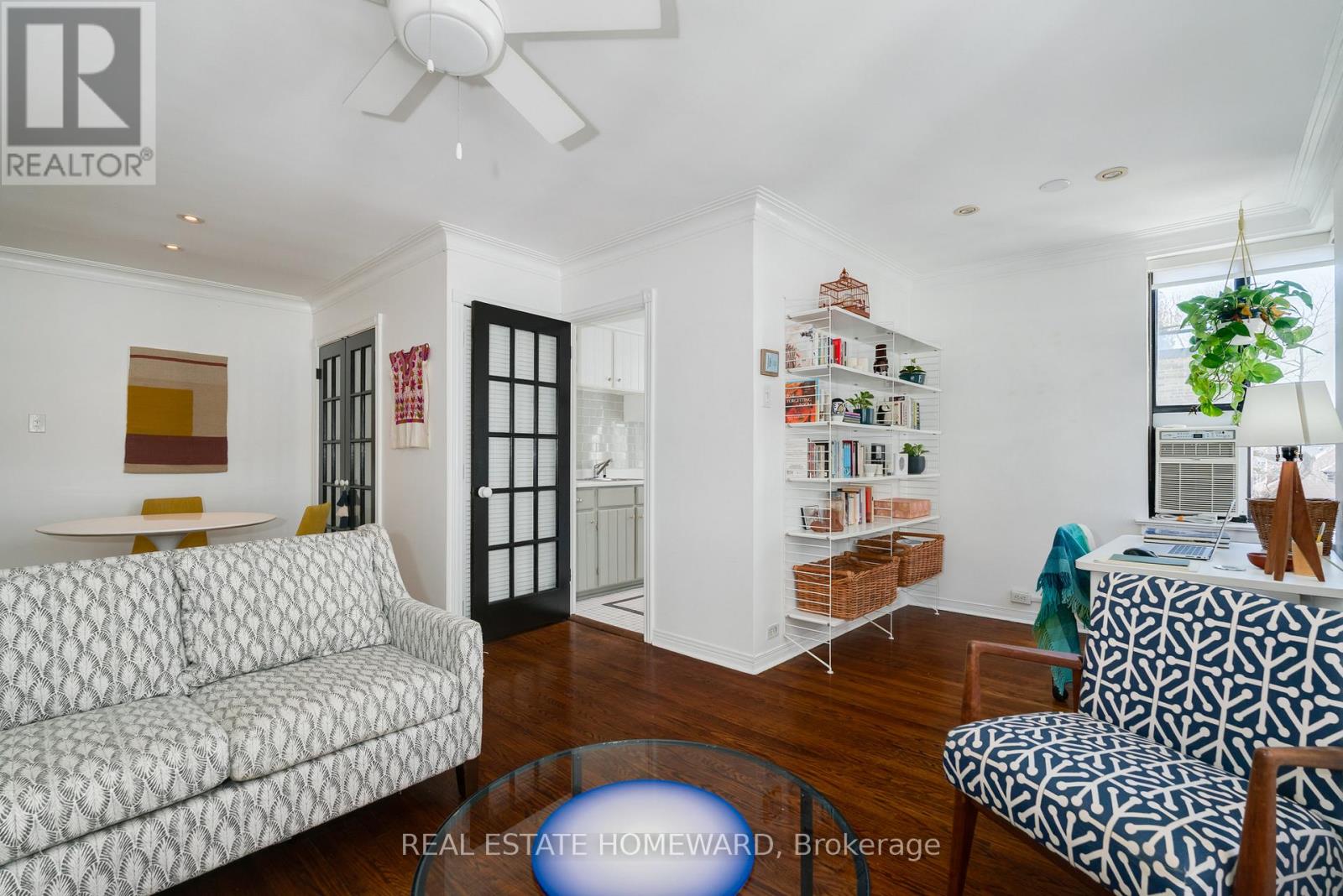 Welcome to The Dorchester, a rare opportunity to own a true piece of Toronto architectural history. This classic 1940 Art Deco building is quietly tucked into the prestigious Deer Park neighbourhood and offers a refreshing alternative to today's cookie-cutter condos. Surrounded by stately homes and tree-lined streets, this is elegant city living with real old world character. This spacious corner suite is full of original charm: rich hardwood floors, French and sliding doors, wainscotting, arched doorways, crown moulding, and striking black-framed casement windows that flood the space with natural light. The oversized bedroom includes a double closet and a full ensuite bath. The open-concept living and dining area features a versatile den or office nook, ideal for working from home, with possible space for a future Murphy bed.The kitchen is compact but bright, with ceramic tile floors, subway tile backsplash, a large window, and just the right amount of retro flair. Pot lights add a modern touch throughout, and the unit offers excellent in-suite storage plus a separate locker downstairs. It's just a ten minute walk to the St. Clair subway, Yonge Street shops and restaurants, and beautiful parks. If you're looking for space, character, and location, rather than gyms you'll never use, this is the one. It's an address and space you'll be proud to show your friends. (id:64974)