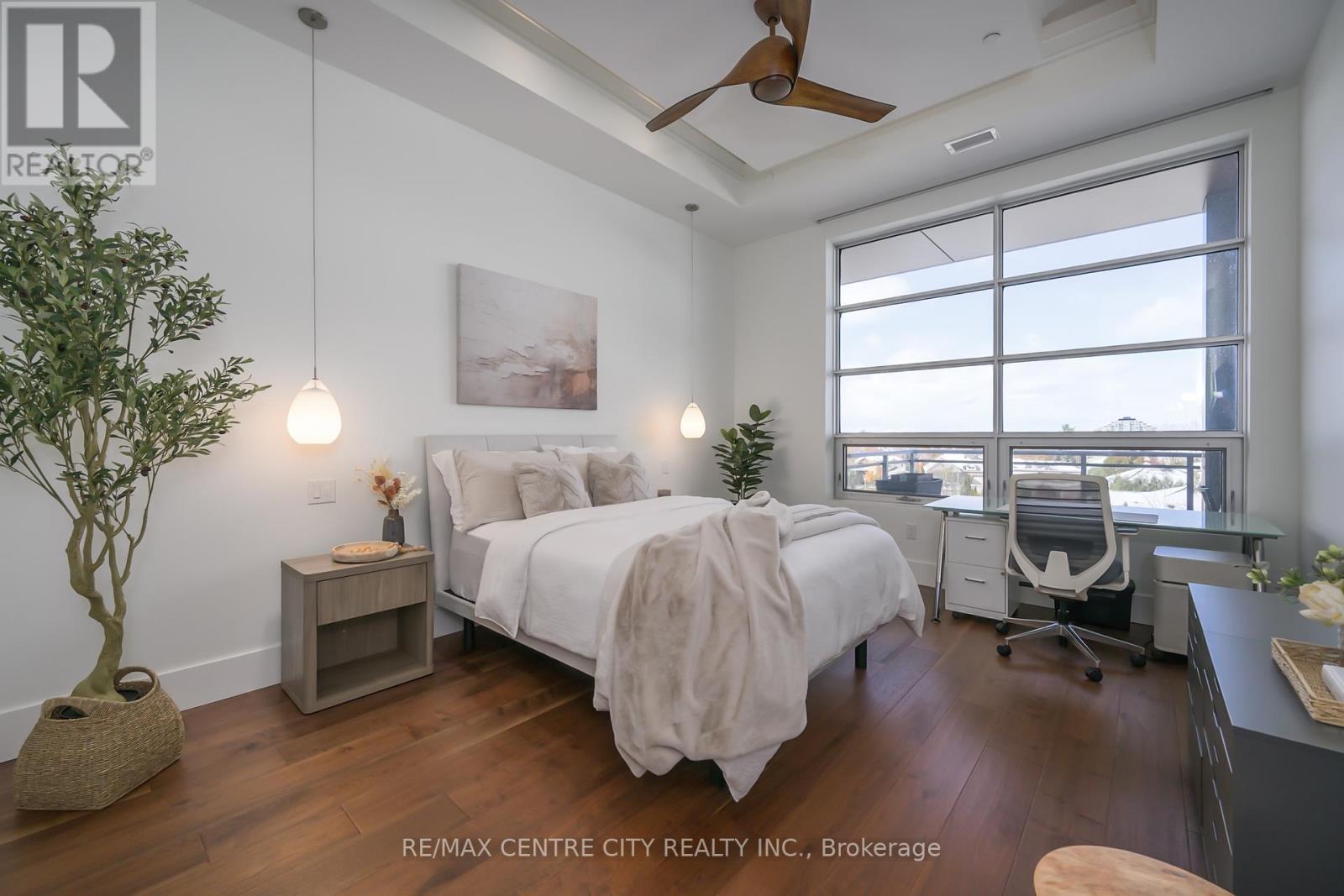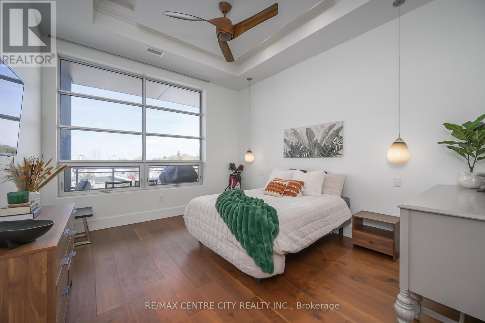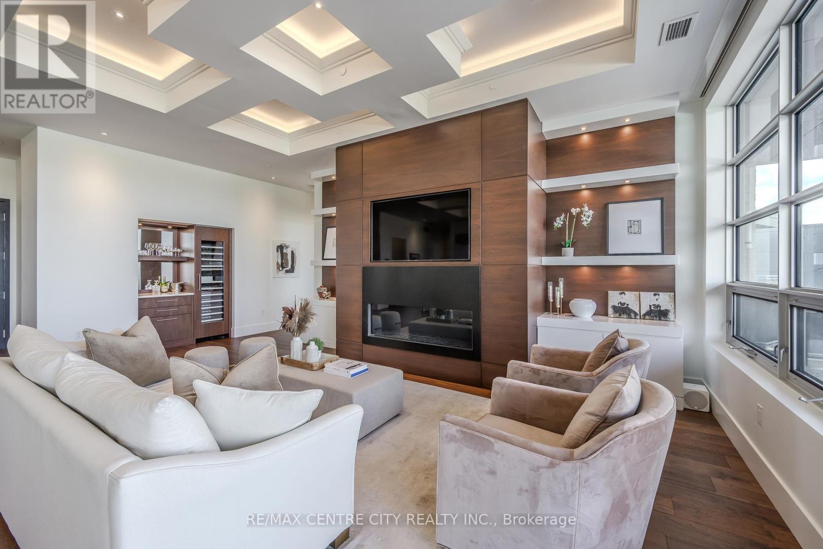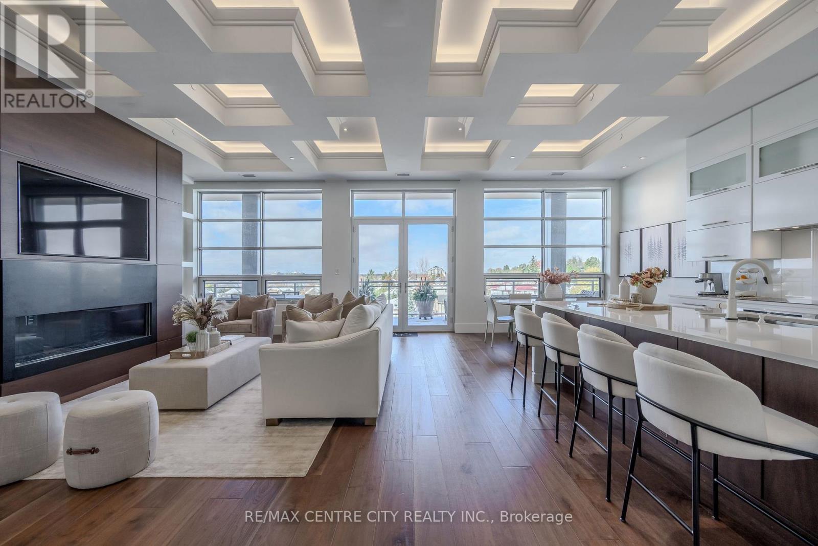 Welcome home to this decidedly upscale Premiere Penthouse condominium at NorthPoint, ideally located in northwest London and offering easy access to the world class shopping at CFMasonville Place, the institutions of Western University and University Hospital. You are going to LOVE the Million Dollar four season views from the covered balcony, the perfect outdoor oasis for entertaining or just enjoying a glass of wine at the end of the day and marveling at some of the prettiest sunsets in London. This unique penthouse offers an open concept Greatroom featuring a 12' high custom designed ceiling with built in lighting, a modern linear gas fireplace surrounded by custom built cabinetry along with a butlers pantry and wine bar, and floor to ceiling windows to admire the beautiful view. This terrific condominium features a Savant Smart Home System that controls the lighting, blinds and built in speaker system. The Chef in your family is going to be impressed by the oversized kitchen island, along with high end Thermador appliances, custom cabinetry and quartz countertops. The primary bedroom is the perfect place to end a long day and has a spa inspired ensuite bathroom with heated flooring, a glass shower enclosure and a designer walk in closet. The guest suite is equally impressive and also features a full ensuite bathroom and dedicated walk in closet. There is also an in-suite laundry room along with convenient storage. New LifeBreath HEPA filtration system in stalled in2023. There are two dedicated exclusive underground parking spots included along with two exclusive storage units. Don't delay, you are going to LOVE living here! (id:64974)