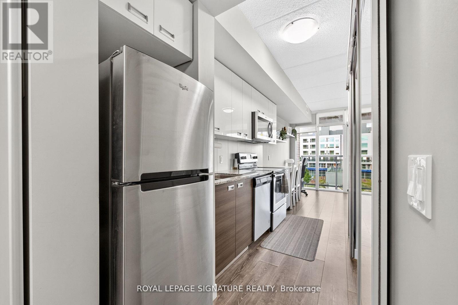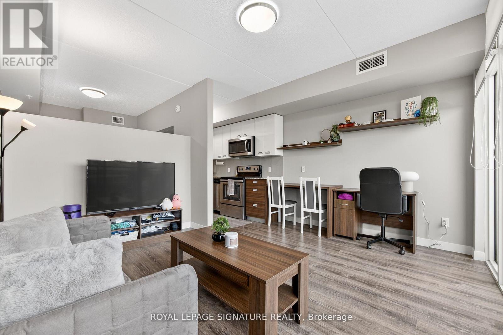 Turn-key investment or the perfect starter condo in the heart of Waterloo's University District! Unit 406 is 465sqft and offers a bright 1 bedroom, 1 bathroom layout. Upgraded finishes are ready for it's next owner, with a modern kitchen that has granite countertops, stainless steel appliances , in suite laundry, carpet free flooring and a private balcony. The building is a quick walk to University of Waterloo and Laurier, which shows consistently strong rental demand, the LRT, restaurants and everyday amenities. Low-maintenance living in a professionally managed building makes for the perfect hands-off ownership. Maintenance fees currently include high-speed internet. (id:64974)