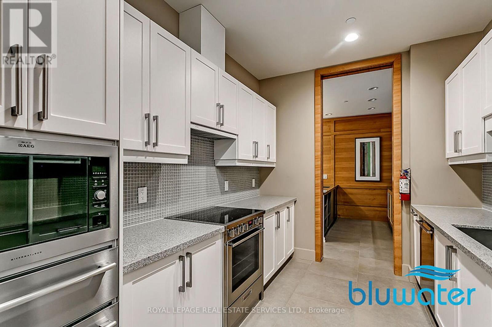 Welcome to Bluwater Condominiums, known for its exceptional standard of lakeside living, outstanding lifestyle amenities, and beautifully designed surroundings. This stunning 2-bedroom plus den, 2-bathroom suite offers approximately 1,150 square feet of refined living space, with breathtaking views of Lake Ontario and manicured gardens from every window and the private balcony. The home showcases tasteful designer finishes throughout, featuring 9-foot ceilings, hardwood flooring, tray ceilings, pot lights, elegant light fixtures, and custom Hunter Douglas blinds. The gourmet kitchen is thoughtfully designed with custom cabinetry, extended upper cabinets, high-end appliances, granite countertops, under-cabinet lighting, and a convenient breakfast bar. The open-concept living and dining area is perfect for entertaining, complete with a Dimplex electric fireplace, floor-to-ceiling windows, and a walkout to an oversized balcony. The spacious primary bedroom includes a large walk-in closet, an additional closet, and direct balcony access. The spa-inspired 5-piece ensuite features a glass walk-in shower, soaker tub, and double vanity. A well-sized second bedroom with a double-door closet and a versatile open-concept den provide additional comfort and flexibility. Additional highlights include a stylish 3-piece main bathroom, a double-door hallway closet, and a large laundry/storage room. The unit also comes with two side-by-side underground parking spaces, a storage locker, and a gas line for a BBQ. Residents enjoy resort-style amenities, including 24/7 concierge service, an outdoor pool, indoor hot tub and sauna, fitness centre, yoga studio, party room, guest suite, social activities, outdoor dining and lounge areas, and underground visitor parking. Experience luxurious lakeside living at its finest. (id:64974)