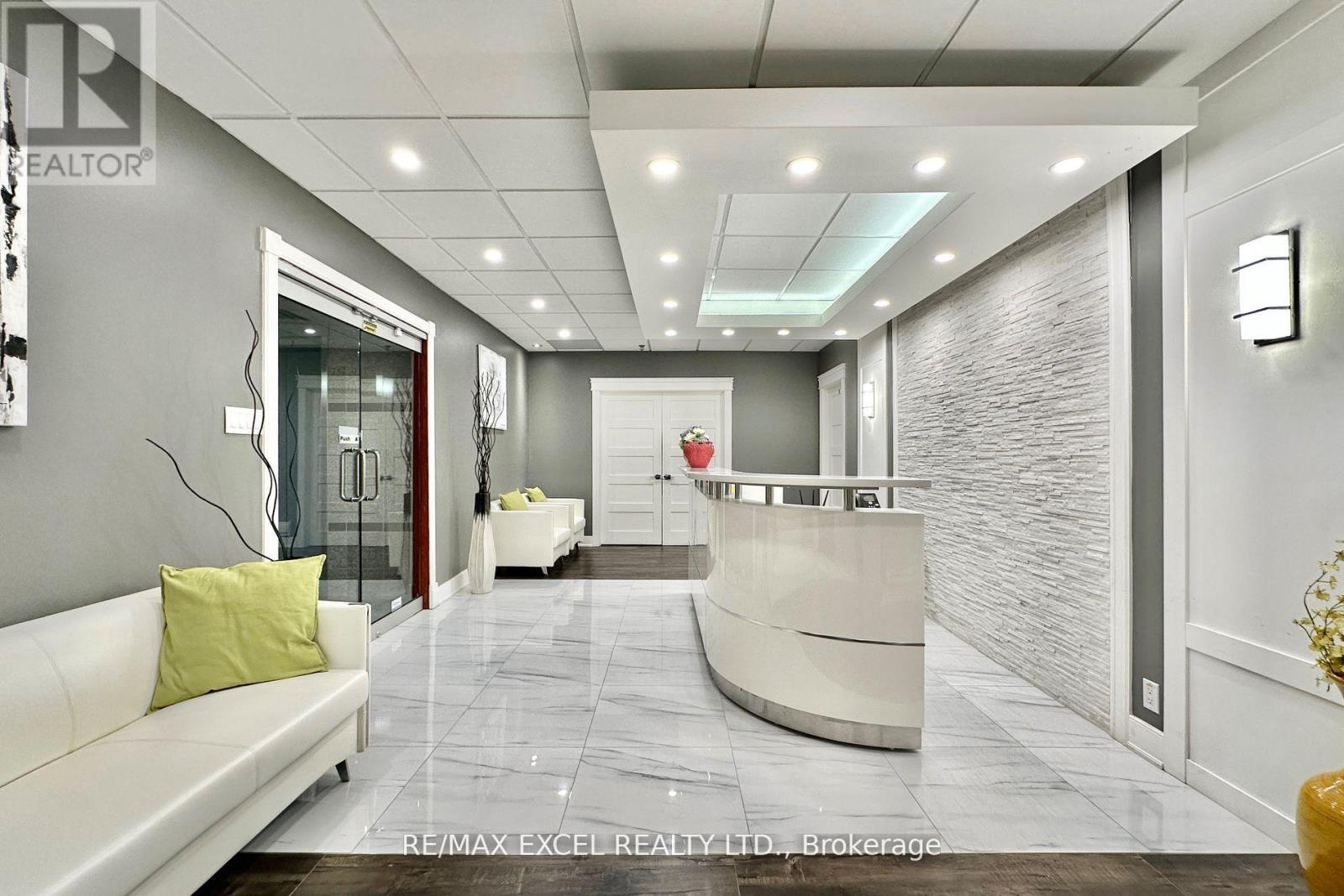 **Prime Professional Office Space in the Heart of Markham**. ~2,200 SQFT Available For Flexible Term of Lease. This unit features double glass door entry and professional renovations, showcasing a stylish reception area with pot lights, an executive office, four private office rooms, a common area, and a fully equipped kitchen/pantry. This prime location is ideal for a head office, retail business, accounting firm, law office, real estate agency, tutoring school, and more. Conveniently located just minutes from Highway 404/407, with YRT and TTC access for easy employee commuting. Ample above-ground parking available for employees and visitors. Surround yourself with popular restaurants, banks, coffee shops, and retail establishments to meet and impress future clients. **EXTRAS** T.M.I Includes heating, a/c, hydro, water, janitorial garbage pick up in common area, shared open surface parking, landscaping & building ins. (id:64974)