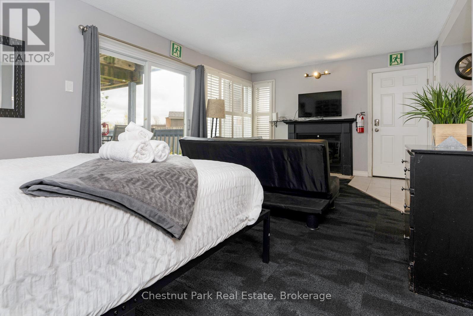North Creek Resort at Blue ~ income plus enjoyment! Great studio unit steps from the ski gate to Blue Mountain ski hill. Currently short term accommodation (STA) licence approved and renting on Airbnb, buyer to apply and meet criteria with the Town of The Blue Mountains if you wish to continue renting the unit out. Fully furnished and equipped, with a queen bed, pull out couch, in total the unit sleeps 4. Options available for combination of personal use, nightly/weekend/extended rentals. Enjoy the community amenities such as the year round outdoor hot tub, summer heated swimming pool, tennis/pickleball courts, community BBQ, lounge in Gatehouse, overnight security, snow removal to right to the door, Rogers Ignite TV and unlimited Internet, all included in Condo Maintenance. Conveniently dine onsite at the Indian Restaurant, or you can walk, bike, or take the shuttle to Village at Blue Mountain to dine and shop. HST and BMVA fees apply, and in addition to sale price. North Creek Resort at Blue is a member of the Blue Mountain Village Association, fees and corresponding benefits apply. Special assessment until 2027. North Creek Resort at Blue was previously known as Mountain Springs Resort. This is your chance to enjoy your weekend getaways & ski vacations, and supplement the costs with rental possibilities. (id:64974)
