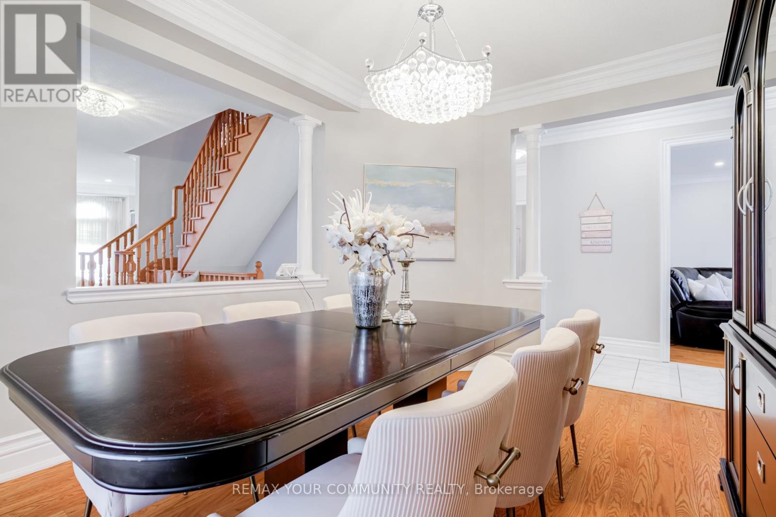 Spectacular 4-Bed, 5-Bath family home on a premium corner lot next to golf and green space! Welcome to 406Staines Rd, a beautifully updated and meticulously maintained residence by the original owners, showcasingexceptional designer finishes and thoughtful upgrades throughout. Enjoy 9-ft ceilings on the main level, elegantcrown moulding and trims, hardwood floors on the main and second levels, upgraded light fixtures, a carpet-freeinterior, and bright, flowing living spaces ideal for everyday living and entertaining. The heart of the home features agourmet kitchen with quartz countertops, custom cabinetry with glass showcase cabinets, stainless steel appliances,centre island, and an eat-in area open to the family room, highlighted by a gas fireplace with custom millwork featurewall. Separate formal living and dining rooms, each with bay windows, offer timeless elegance and abundant naturallight. Upstairs, 4 generous bedrooms and 3 fully upgraded bathrooms await, including a luxurious custom dressingroom(converted from the original 5th bedroom) with built-in cabinetry. The finished basement is perfect forentertaining, offering an open-concept recreation area, additional living space, wet bar, and a 3-pc bathroom.Perfectly situated on a sidewalk-free, landscaped corner lot with a 2-car garage, large deck, enclosed porch, gardenshed, water softener. Numerous premium upgrades include a newer roof, upgraded security system, doors, lighting,and more. Steps to Cedar Brae Golf Club, with easy access to nearby parks, transit, shopping, schools, andcommunity amenities. A rare opportunity combining style, space, and an unbeatable location-an impressive home ita vibrant community. (id:64974)